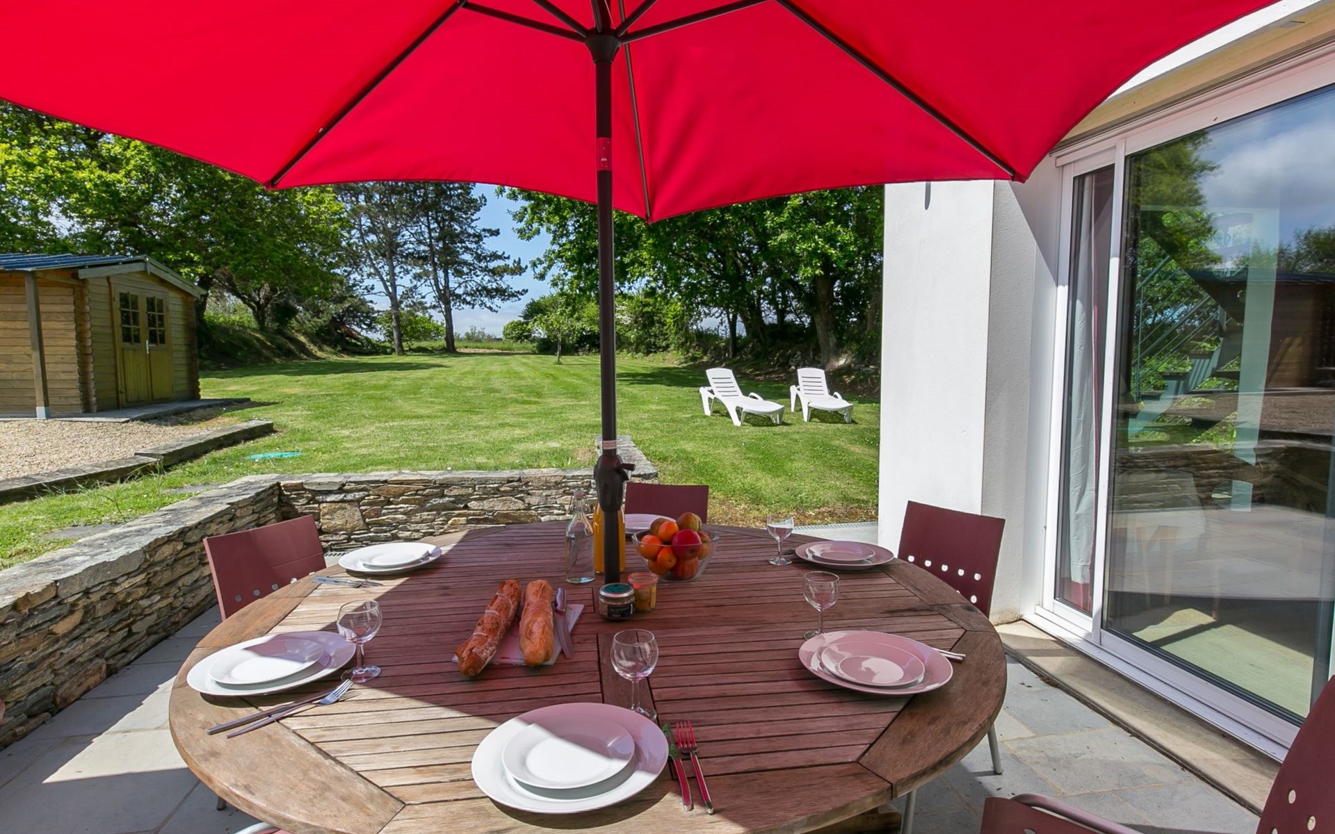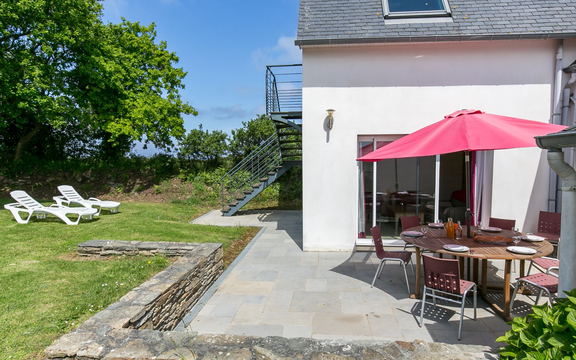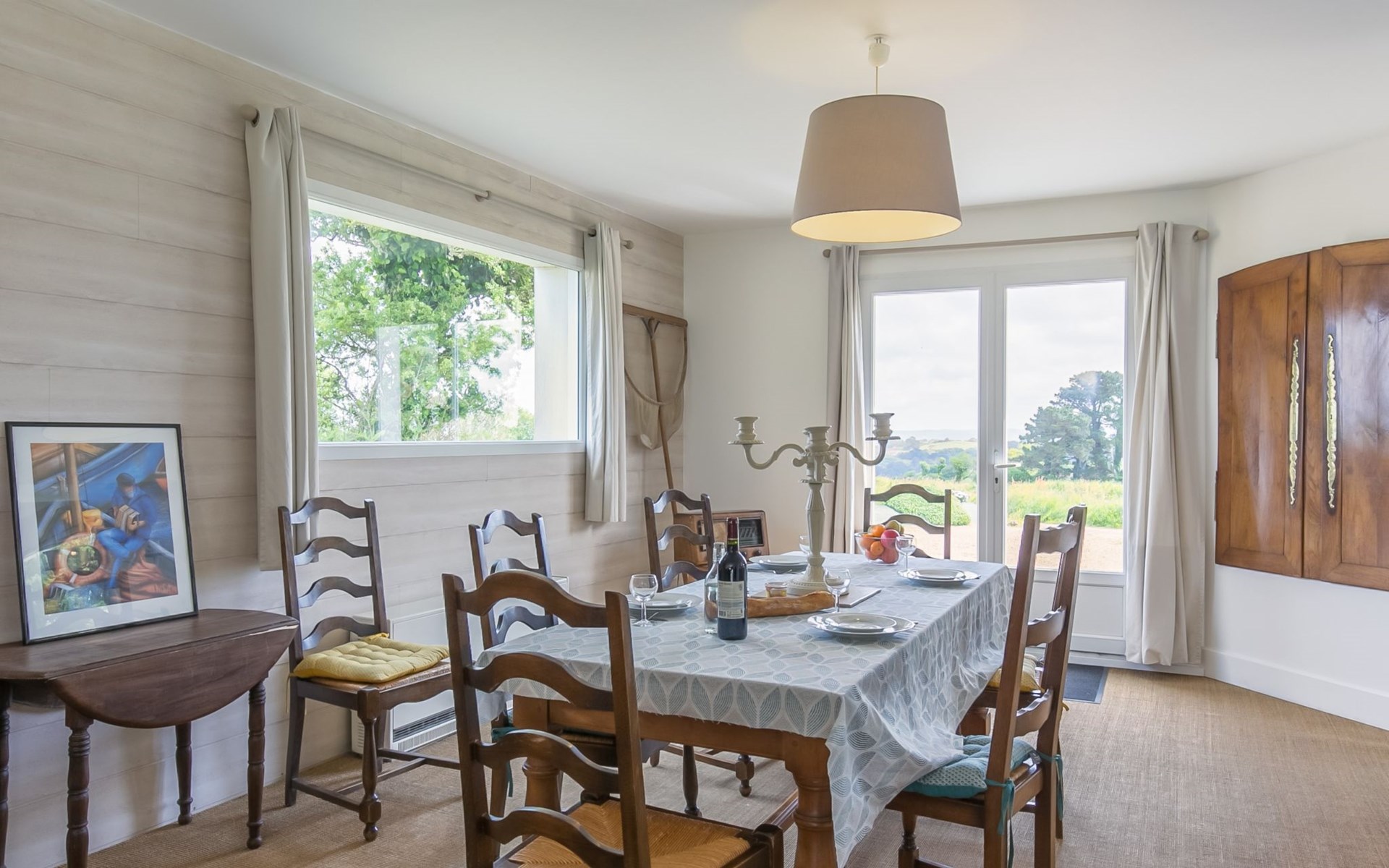 Grosses, gemütliches Einfamilienhaus "La Belle Vue", umgeben von Wiesen und Feldern. 4 km vom Zentrum von Locquirec, 7 km vom Zentrum von Lanmeur, 20 km vom Zentrum von Morlaix, alleinstehende Lage, 900 m vom Meer, 1.3 km vom Strand. Zur Alleinbenutzung: Grundstück 1'500 m2 mit Rasen und Bäumen, Wiese, Parkplatz (für 2 Autos) auf dem Grundstück. Einkaufsgeschäft 2.7 km, Supermarkt 2.7 km, Restaurant 2.7 km, Bäckerei 2.7 km, Bushaltestelle "Moulin de la Rive" 1.2 km, Sandstrand "Plage Moulin de la Rive" 900 m, Hallenbad 20 km. Jacht-Hafen 4 km, Golfplatz (18 Loch) 30 km, Segelschule 4 km, Tennis 2.3 km, Wanderwege ab Haus 20 m. Nahe gelegene Sehenswürdigkeiten: Morlaix 18 km, Roscoff et Jardin Exotique 44 km, Ploumanac'h Côte du Granit Rose 36 km, Oceanopolis Brest 74 km. Wandergebiete: GR34, sentier des douaniers 600 m.