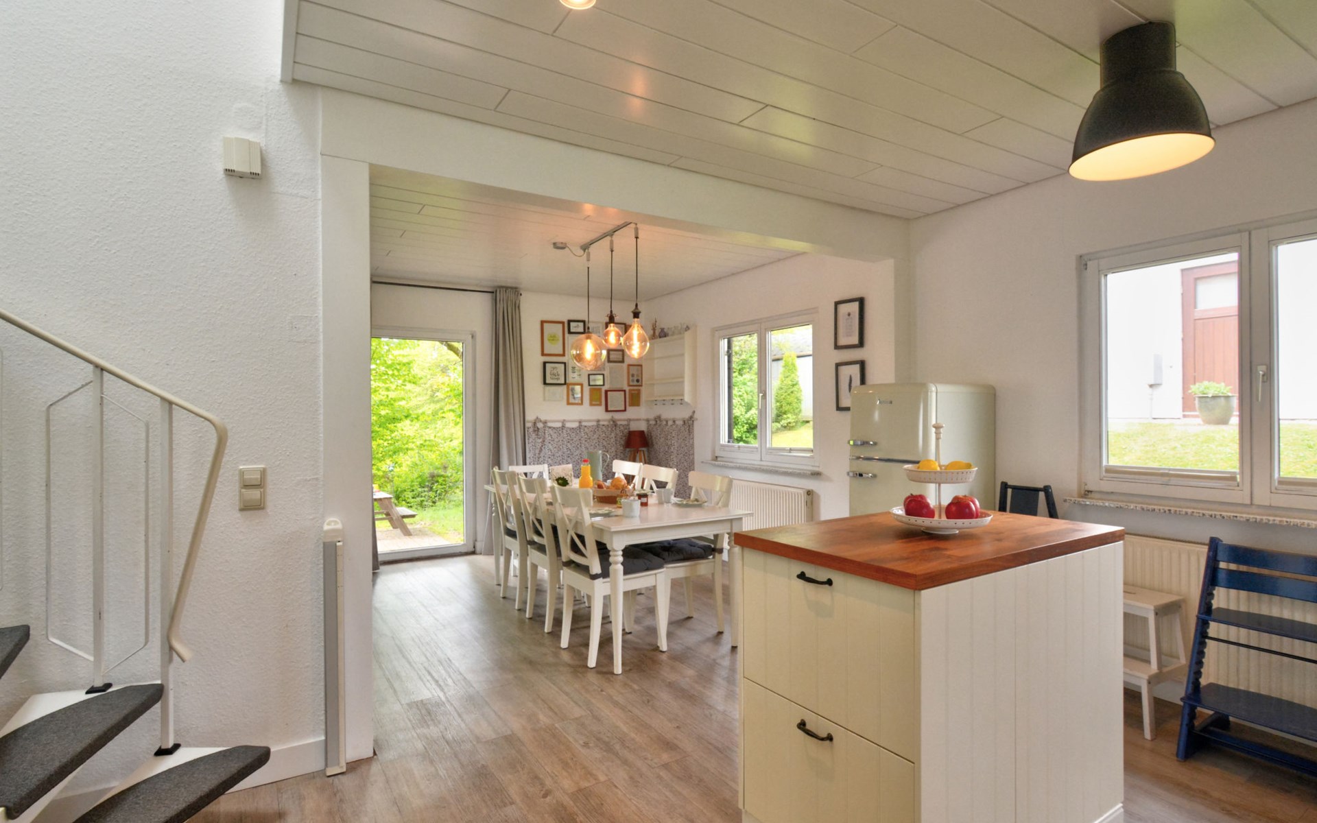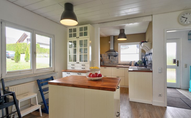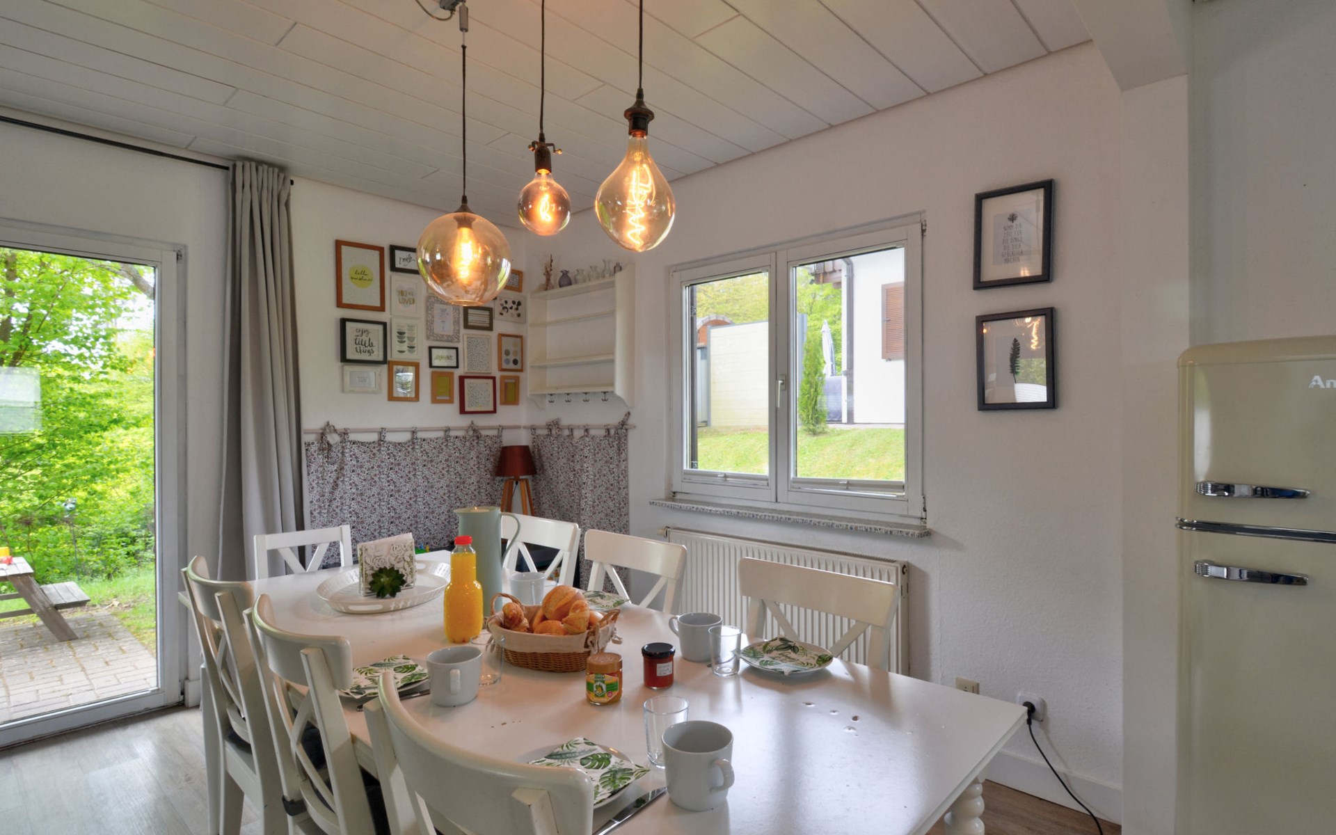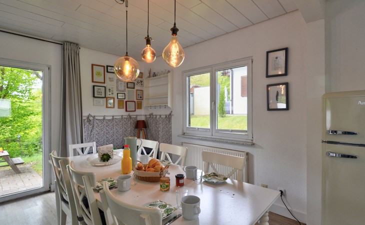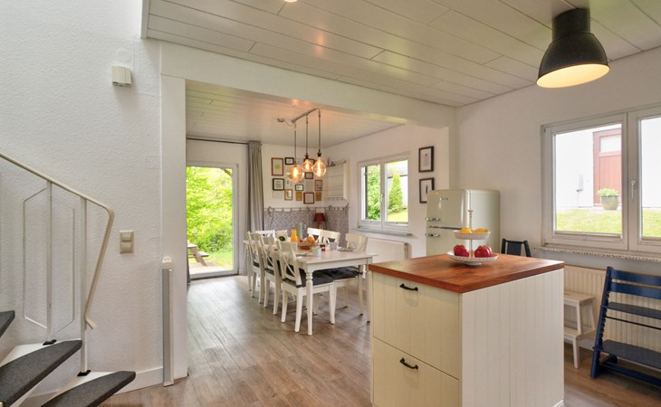 Feriendorf "Seepark Kirchheim". Ausserhalb des Ortes, 4 km vom Zentrum von Kirchheim, ruhige, sonnige Lage am Hang, direkt am See, im Grünen. Öffentliche Parkplätze auf der Strasse. Einkaufsgeschäft 4 km, Supermarkt 4 km, Einkaufszentrum 4 km, Bäckerei 4 km, Café 400 m, Bushaltestelle 400 m, Bahnstation "Bad Hersfeld" 15 km, Freibad 4 km, Thermalbad 15 km. Golfplatz (18 Loch) 4 km, Tennis 10 km, Minigolf 15 km, Wanderwege ab Haus 300 m. Bekannte Seen in der Umgebung sind gut erreichbar: Stausee 500 m. Bitte beachten: Fahrzeug empfohlen. Der Besitzer akzeptiert keine Jugendgruppen. Der Seepark ist in vier "Dörfer" mit insgesamt 139 Ferienhäusern gegliedert, die sich um den Stausee (10 Hektar Wasserfläche, Badestelle, Wasserskianlage, Liegewiese) gruppieren. Rundweg um den See zum Spazieren und Joggen.