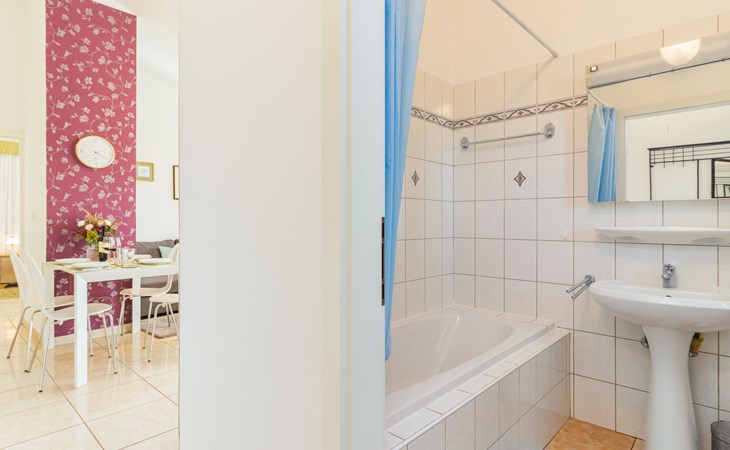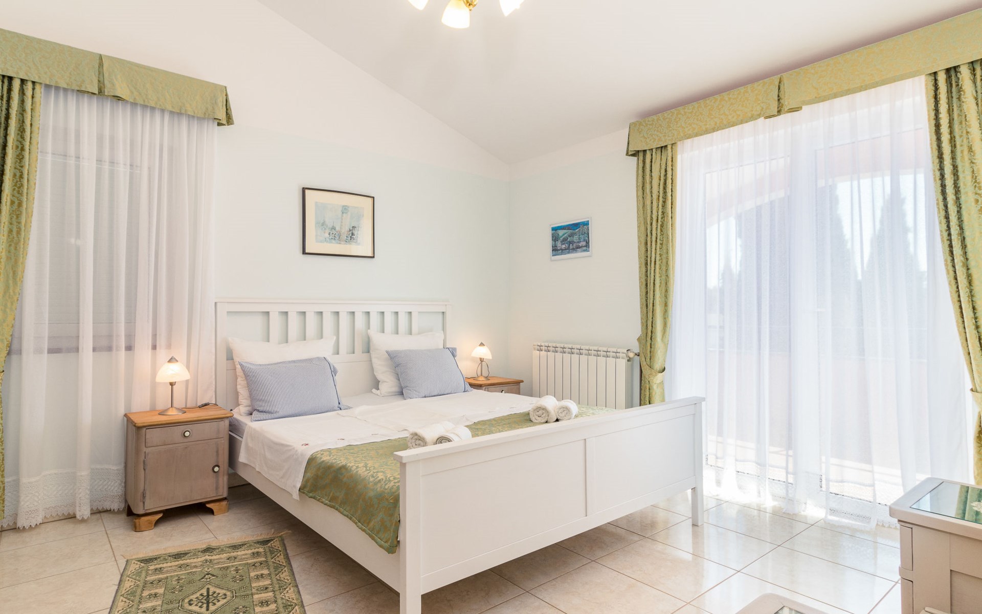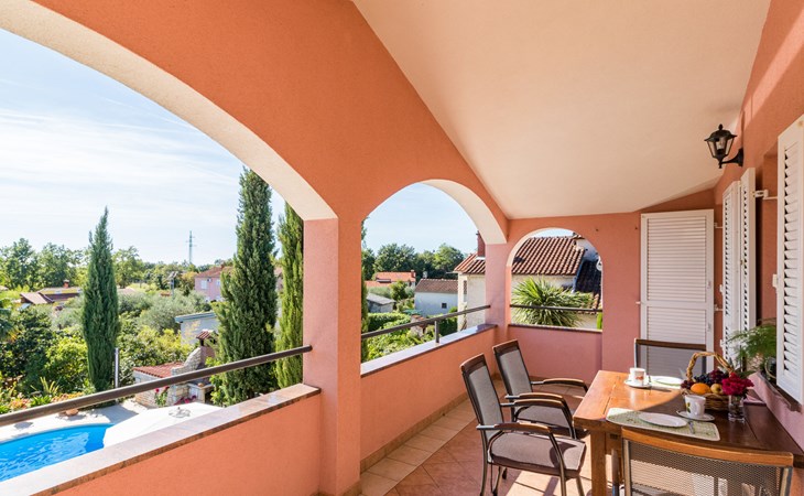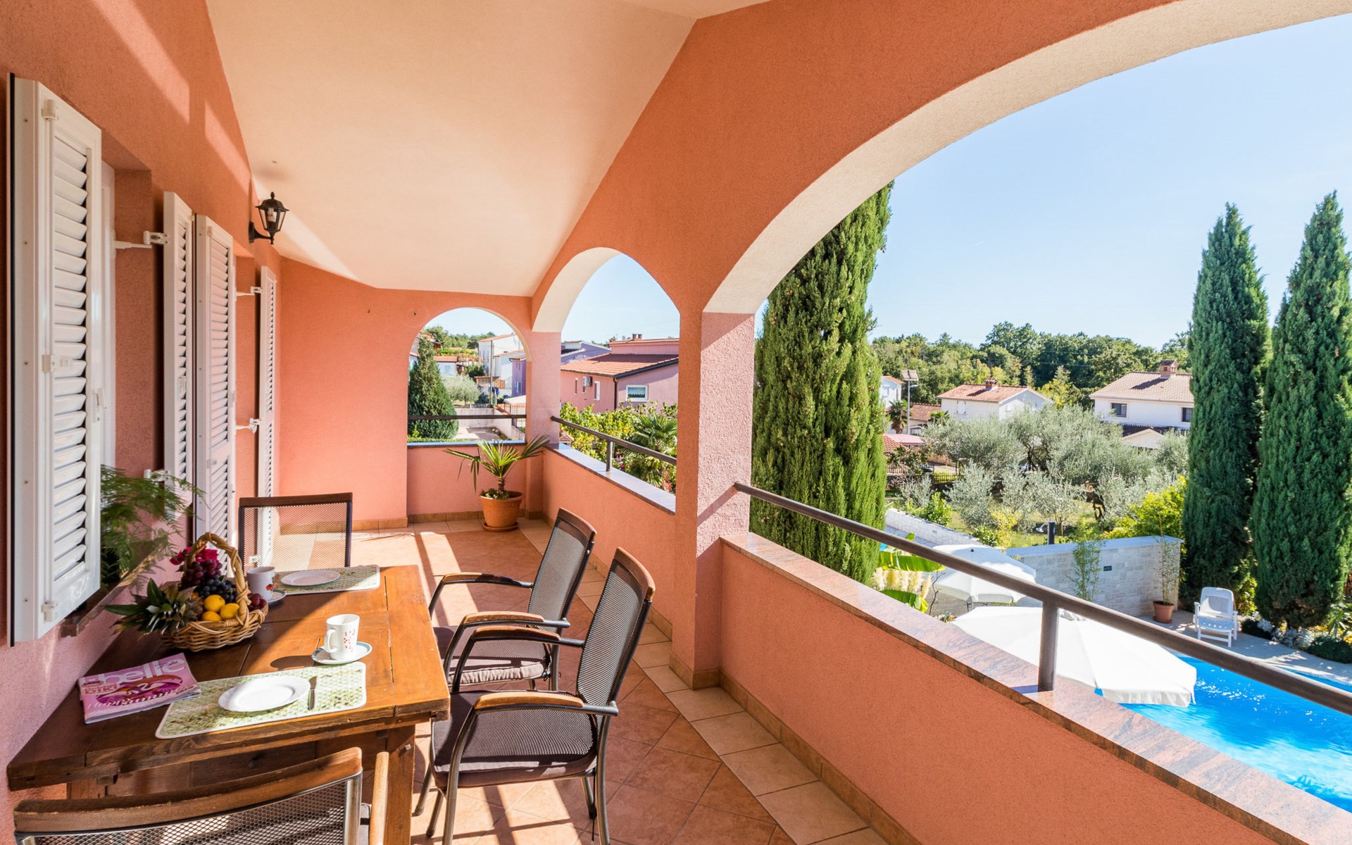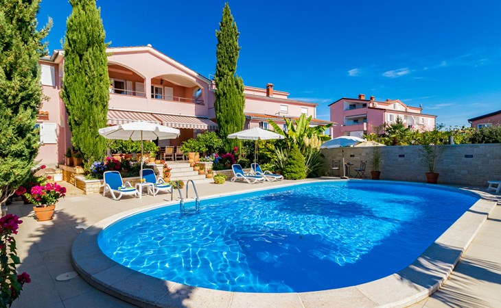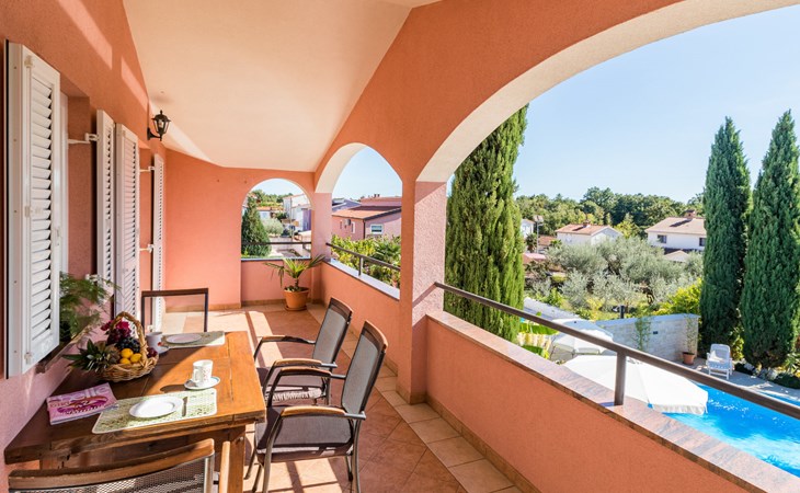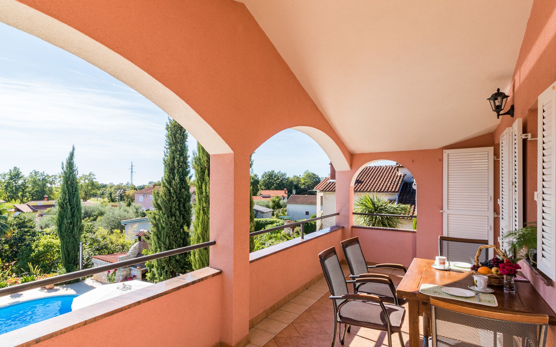 Dreifamilienhaus "Viktorija". 400 m vom Zentrum von Nova Vas, 5 km vom Zentrum von Poreč, 5 km vom Meer. Zur Mitbenutzung: Grundstück 1'200 m2 (eingezäunt) mit Pflanzen und Bäumen, Schwimmbad (11 x 5 m, 150 cm tief, saisonale Verfügbarkeit: 01.Mai. - 01.Okt.). Ungleichmässige Schwimmbadform, Aussendusche, Gartenmöbel, Grill. Im Hause: Internetzugang, Waschmaschine (extra) (zur Mitbenutzung). Parkplatz auf dem Grundstück. Einkaufsgeschäft 400 m, Supermarkt 5 km, Bushaltestelle 8 km, Bahnstation 32 km, Felsstrand 5 km. Jacht-Hafen 5 km. Bitte beachten: Der Besitzer wohnt im selben Haus.