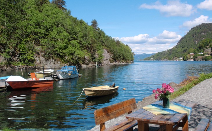 Zertifiziertes Angelhaus (18 kg Fischfang erlaubt) "Tufto". Im Ortsteil Bergsvåg, 7 km vom Zentrum von Lunde, 46 km vom Zentrum von Leirvik, 64 km vom Zentrum von Bergen, 5 m vom Fjord. Badeplatz. Zur Alleinbenutzung: naturbelassenes Grundstück. Sitzplatz, Gartenmöbel, Grill, Fischverarbeitungsplatz. Motorboot (auf Bestellung), Parkplatz auf dem Grundstück. Einkaufsgeschäft 7 km, Supermarkt 16 km, Bushaltestelle "Malkenes kai" 4 km, Bahnstation "Bergen" 63 km, Fähre "Bergen" 64 km. Angelmöglichkeit 10 m. Fischverarbeitungstisch mit Fließwasser vorhanden.