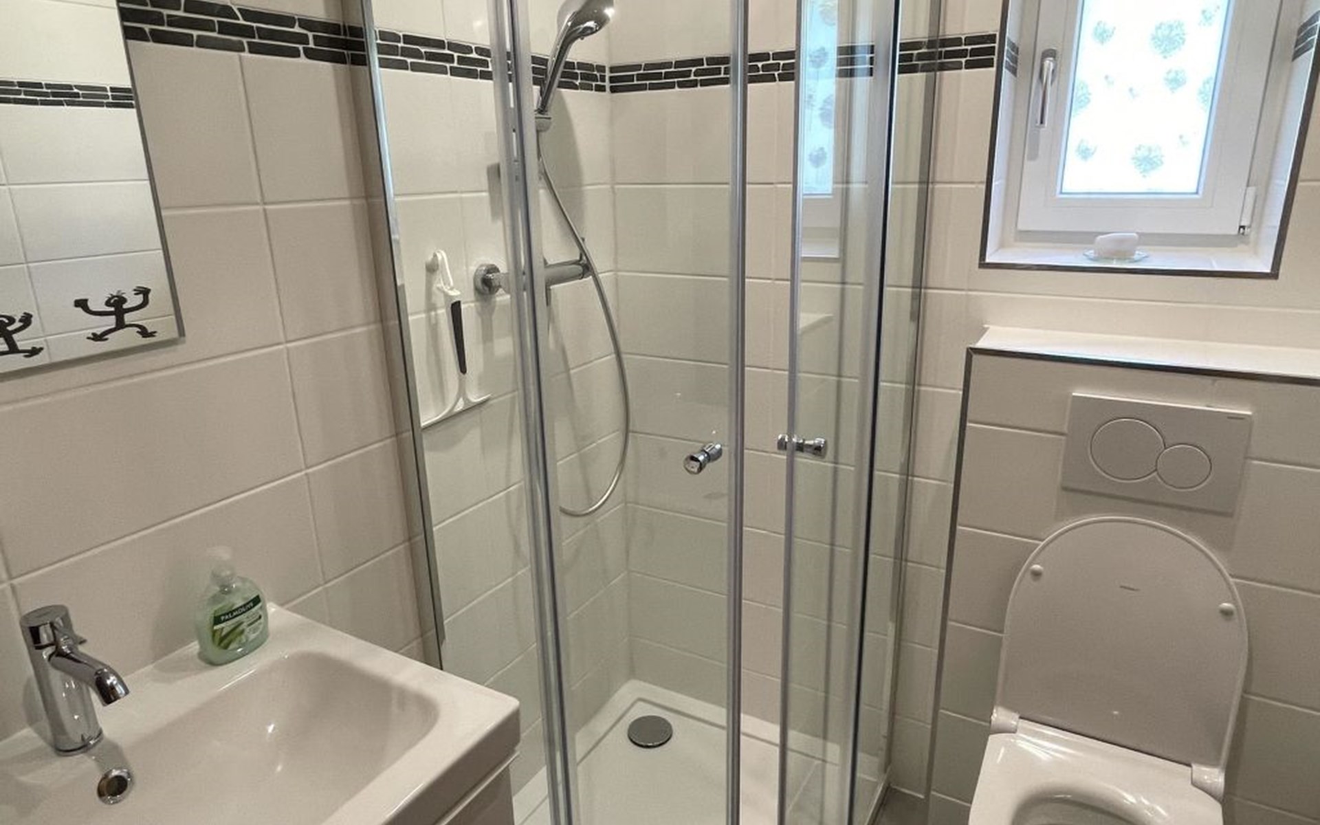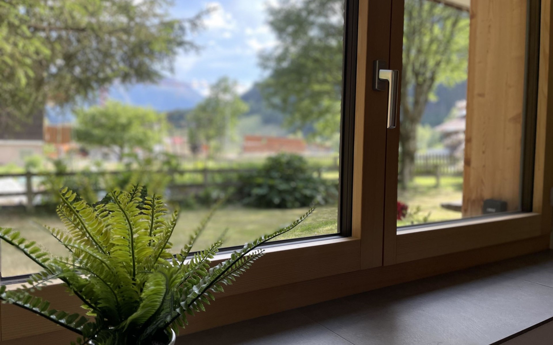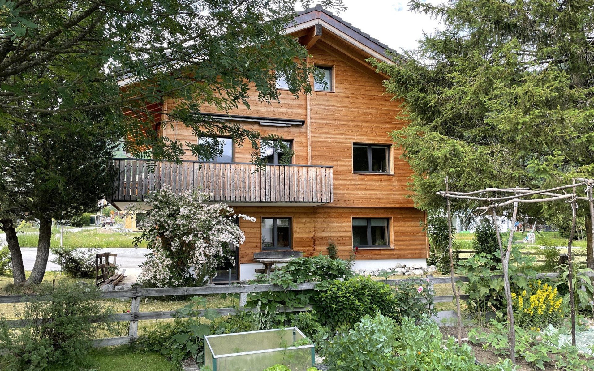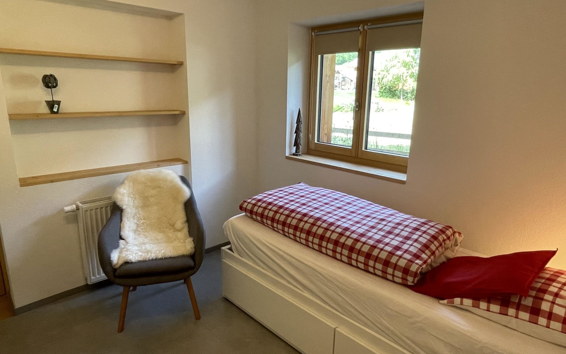 Die stilvolle 3-Zimmerwohnung verfügt über eine offene Wohnküche, zwei Schlafzimmer und ein Badezimmer mit Dusche. Die moderne Küche ist mit einem Induktionsherd, Backofen mit integrierter Mikrowelle, Geschirrspüler, Kaffeemaschine, Toaster, Wasserkocher und Fondue-Rechaud ausgestattet. Ein Tisch für vier Personen, ein gemütliches Sofa und ein Fernseher ergänzen das Angebot im Wohnbereich. Das Schlafzimmer verfügt über ein kuscheliges Bett (1.60m) und einen grosszügigen Schrank. Im anderen Schlafzimmer finden die Gäste ein weiteres Bett vor, das bei Bedarf vergrössert werden kann, so dass auch problemlos zwei Kinder dort übernachten können. Ein Kinderbett und Kinderstuhl sind auf Anfrage kostenlos erhältlich. Im Badezimmer steht Ihnen ein Haartrockner sowie Frottierwäsche zur Verfügung. Ein gemütlicher Aussensitzplatz im Garten rundet das Angebot ab. Im separaten Abstellraum können Skis oder Fahrräder abgestellt werden.