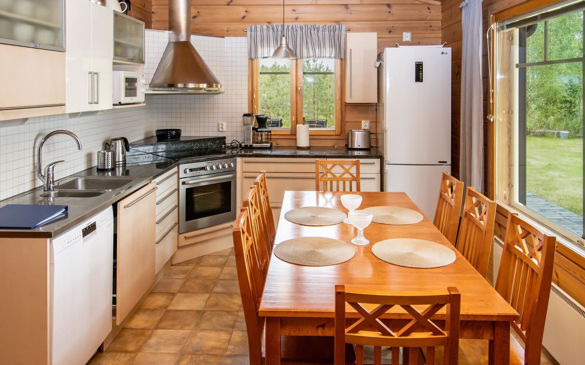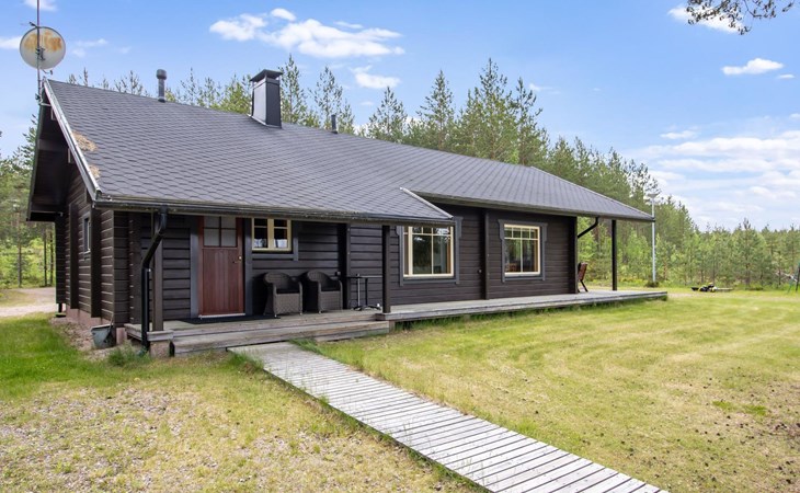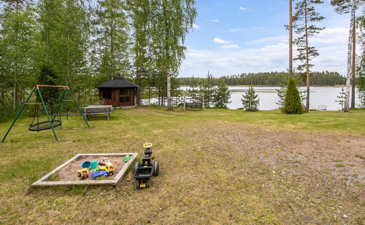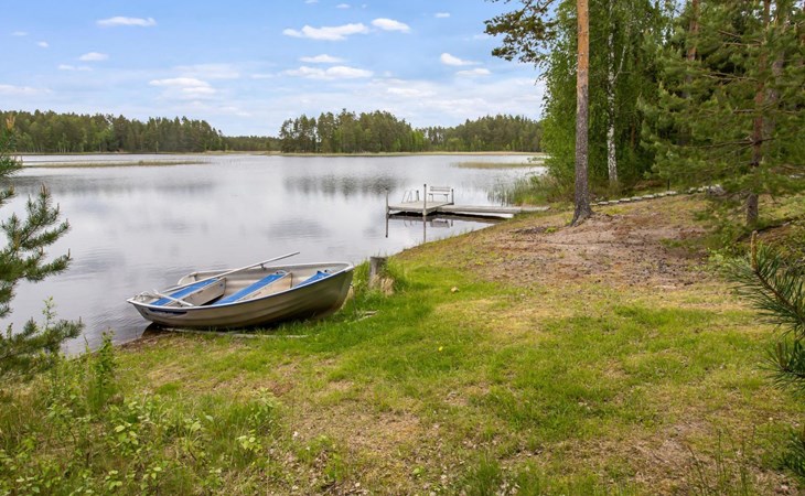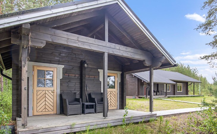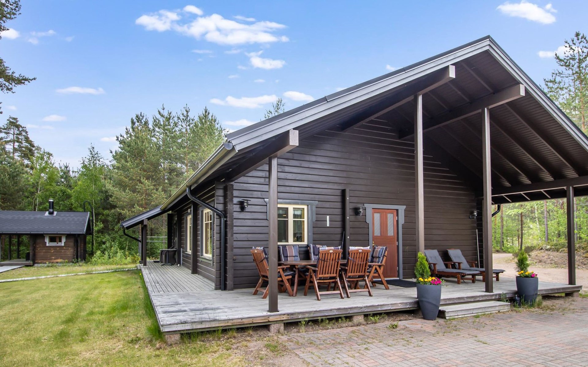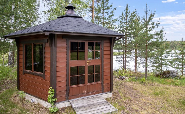 The property includes a separate, atmospheric lakeside log sauna where you can enjoy the authentic heat of a wood-burning sauna stove. Just a few steps from the sauna lead you to your private pier – perfect for a refreshing morning swim. The quiet location and high-quality finish make this cabin ideal for leisurely stays amidst nature.