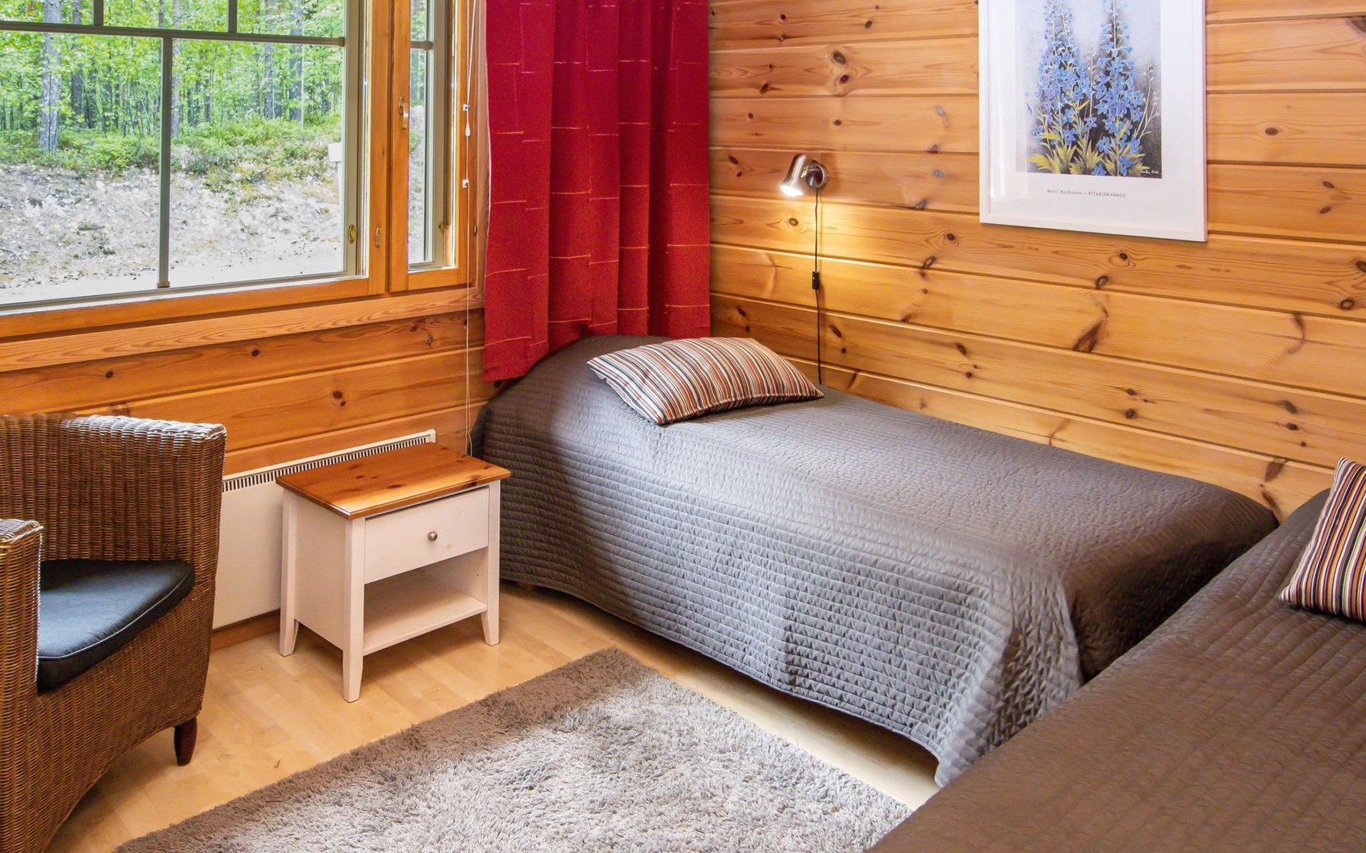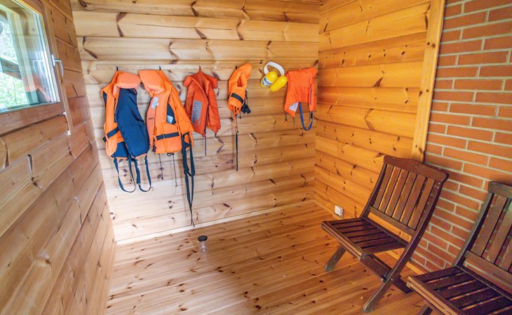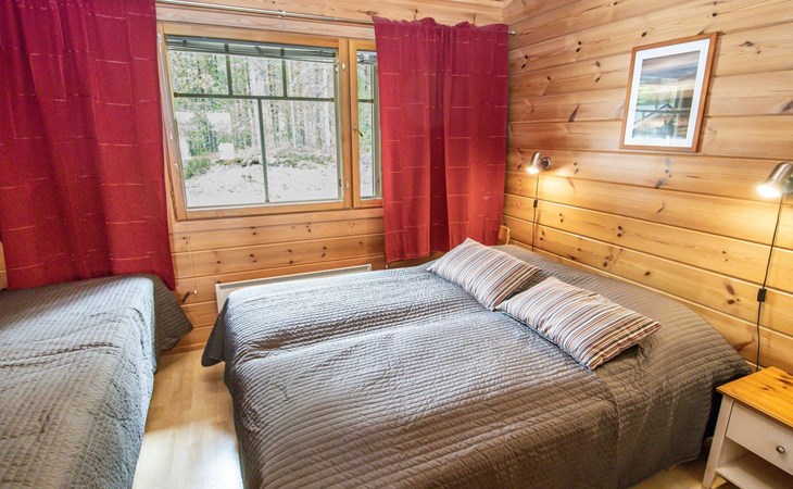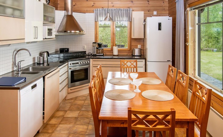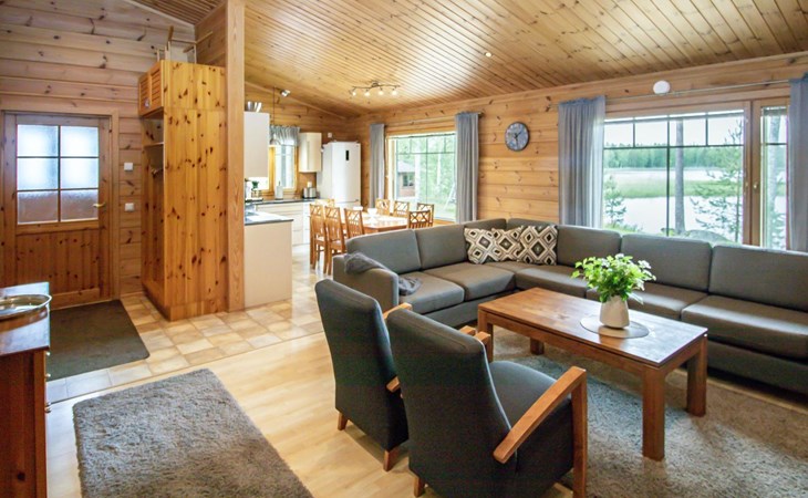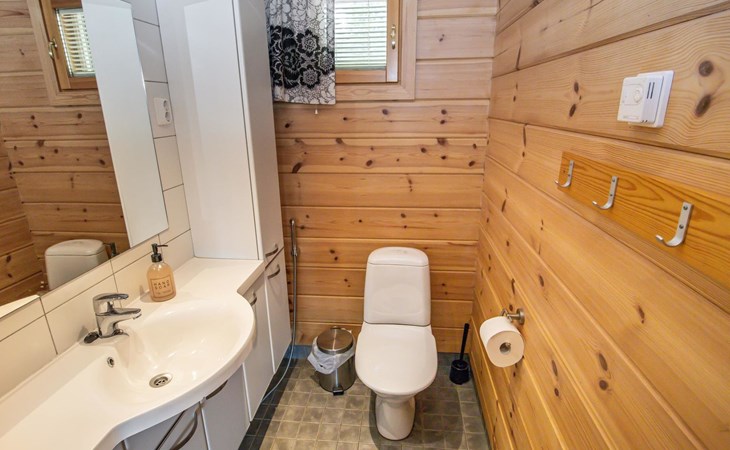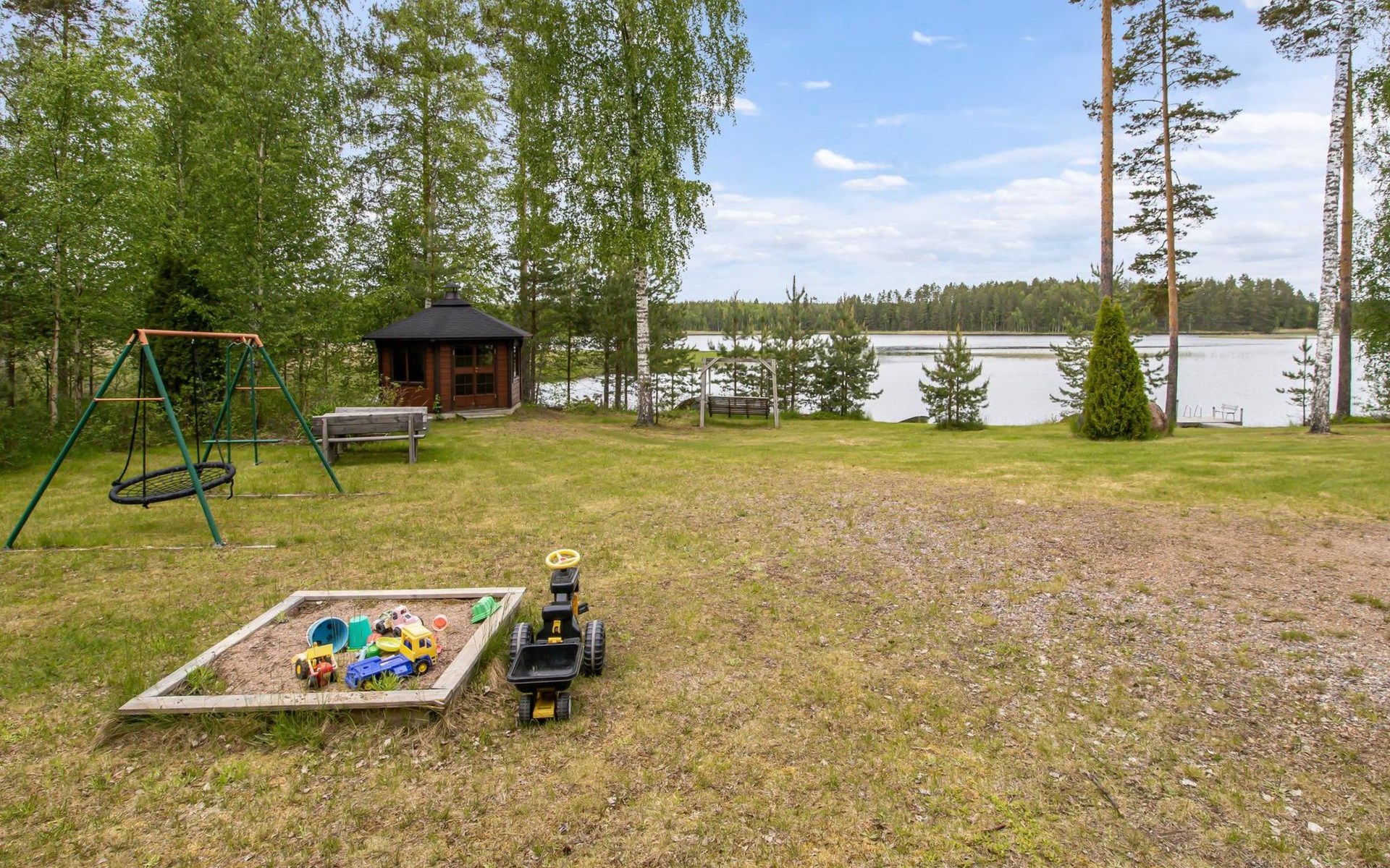 The property includes a separate, atmospheric lakeside log sauna where you can enjoy the authentic heat of a wood-burning sauna stove. Just a few steps from the sauna lead you to your private pier – perfect for a refreshing morning swim. The quiet location and high-quality finish make this cabin ideal for leisurely stays amidst nature.