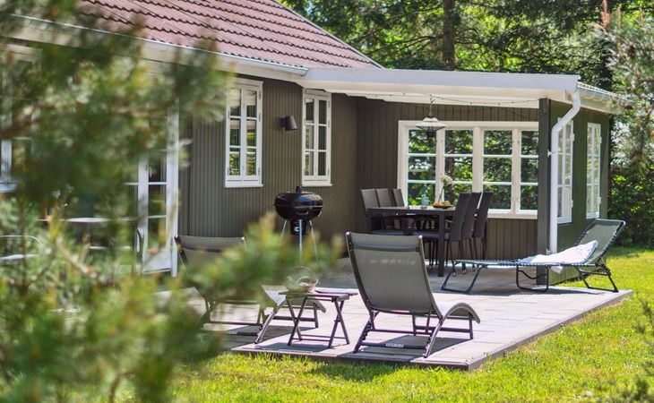 Einfamilienhaus, Baujahr 1973. 300 m vom Meer. Zur Alleinbenutzung: naturbelassenes Grundstück 1'612 m2. Aussendusche, Terrasse (28 m2), Grill. Im Hause: Waschmaschine, Wäschetrockner. Parkplatz beim Haus. Carport. Lebensmittelgeschäft 2 km. Der Besitzer akzeptiert keine Jugendgruppen.
