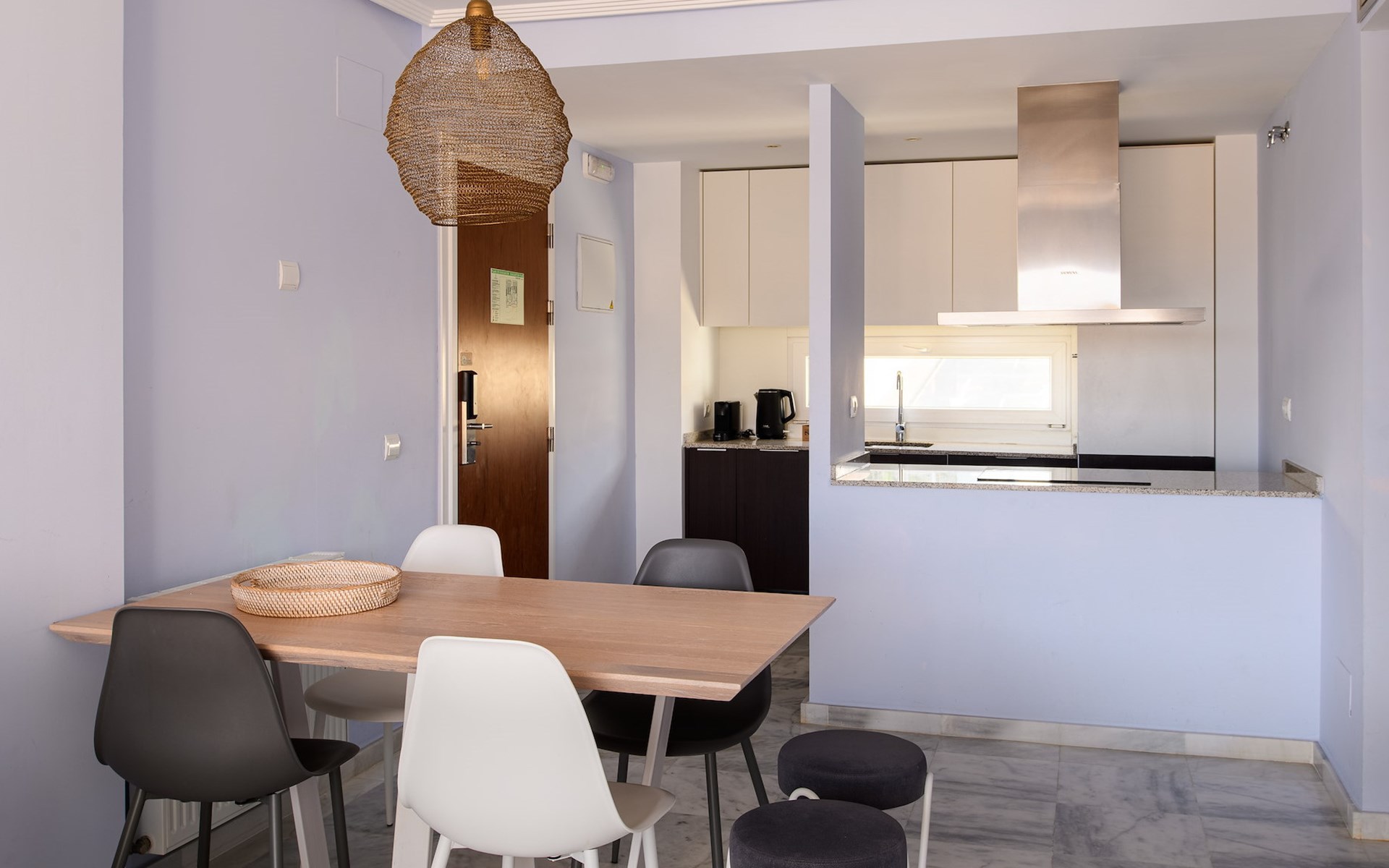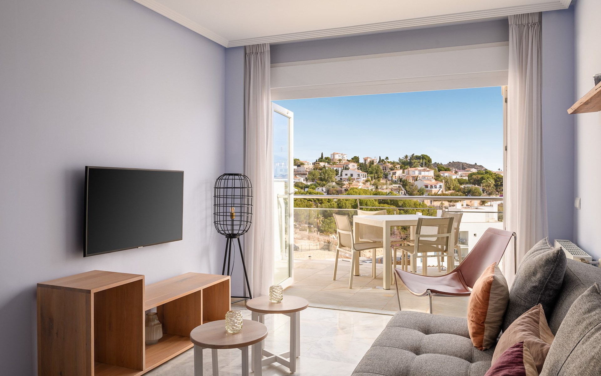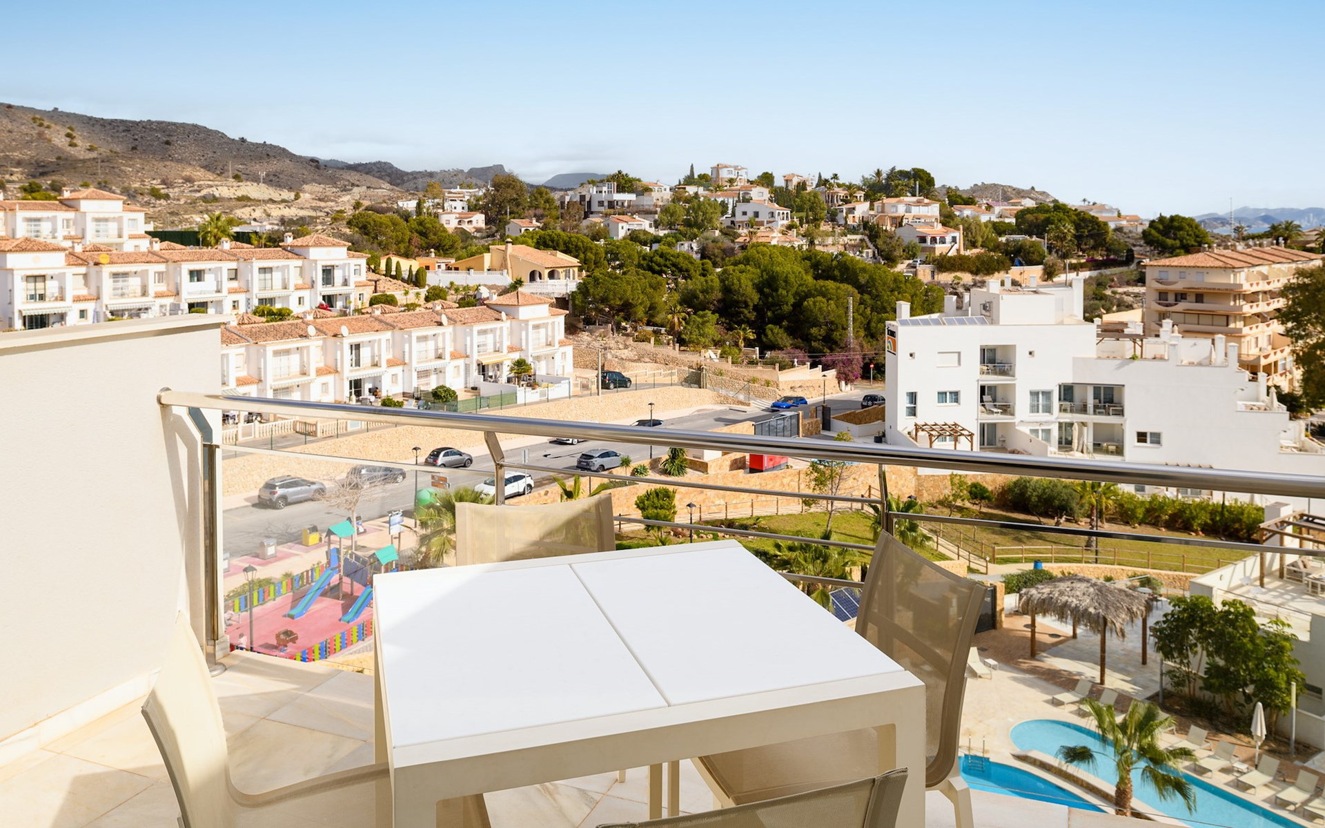 Penthouse Varadero ist eine Ferienwohnung im Dormio Resort Costa Blanca mit viel Luxus und Komfort. Die Unterkunft kann bis zu 6 Personen beherbergen und hat eine Nutzfläche von etwa 55m2. Auf dem Balkon mit Terrassenmöbeln können Sie den ganzen Tag im Freien verbringen. Eine Treppe auf dem Balkon führt zu einer Panoramadachterrasse mit einer Pergola und Schattentüchern. Sowohl vom Balkon als auch von der Dachterrasse aus hat man einen atemberaubenden Meerblick von vorne oder von der Seite.