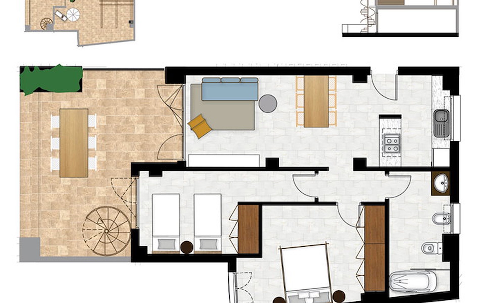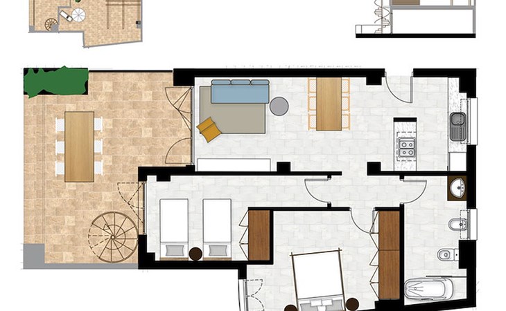 Die Aufteilung der Unterkunft kann variieren. Die Grundrisse und Bilder vermitteln einen guten Eindruck, dienen aber nur zur Veranschaulichung.