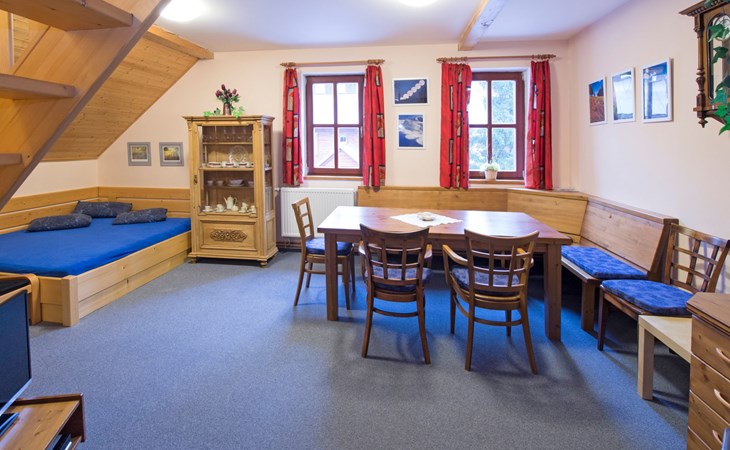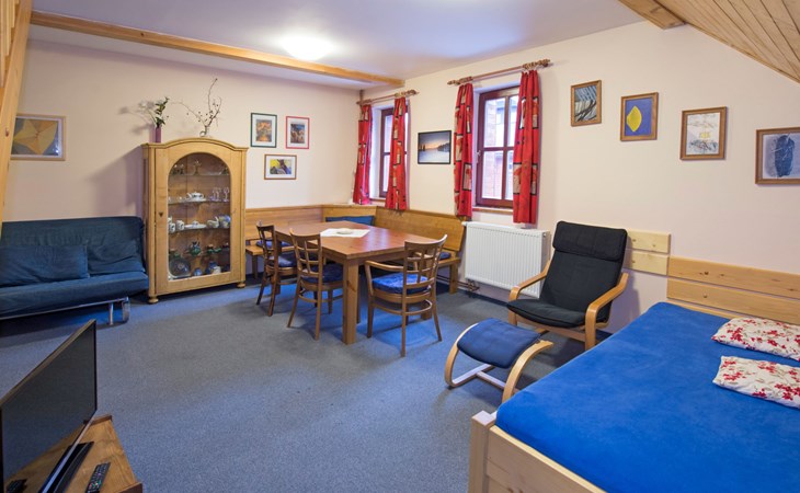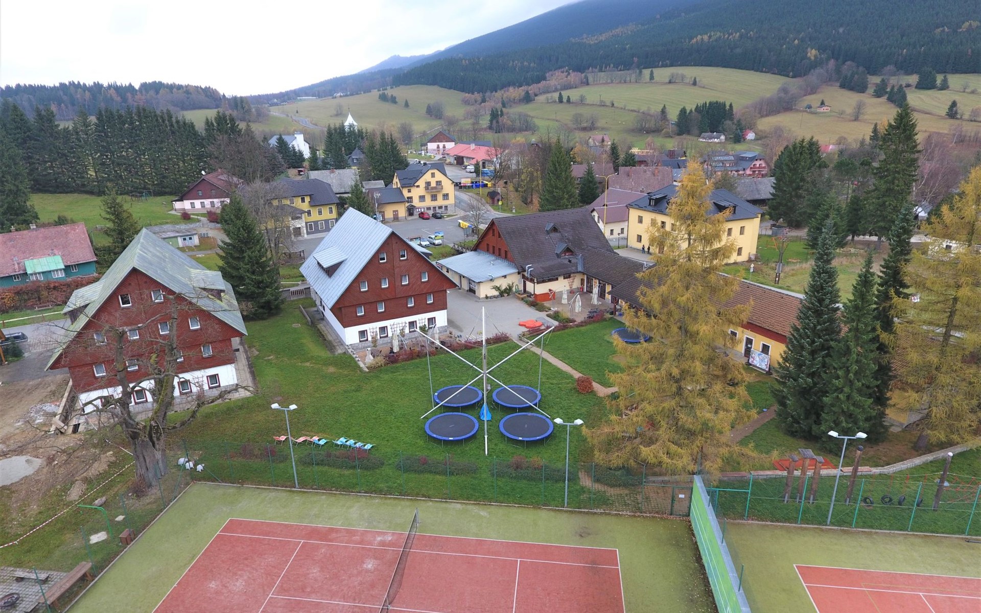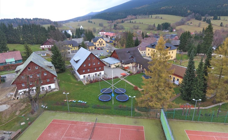 Gemütliche, komfortable Ferienanlage "Ostružná". Im Ortszentrum von Ostružná, ruhige Lage, 550 m vom Skigebiet. Zur Mitbenutzung: Grundstück. Tennis (extra), Tischtennis (extra), Feuerstelle, Kinderspielplatz. In der Anlage: Empfang, Restaurant, Kegelbahn (alles extra), Billard, Trampolin. Frühstück Vollpension Halbpension auf Anfrage (extra). Zufahrt bis zum Haus. Parkplatz auf dem Grundstück. Lebensmittelgeschäft 10 m, Bushaltestelle 15 m, Bahnstation 150 m. Skilift 550 m, Langlaufloipe 500 m. Bekannte Skigebiete sind gut erreichbar: Jonas Park Ostružná 550 m, Ski Ostružná 1.6 km, Ramzová, Petříkov 2 km. Wandergebiete: Šerák, Paprsek, Smrk (Jeseníky), Fauna park, Kolštejn. Bitte beachten: Eisenbahnlinie 200 m vom Haus. Das Foto ist nur ein Hausbeispiel. Alle Häuser/Wohnungen sind individuell eingerichtet.