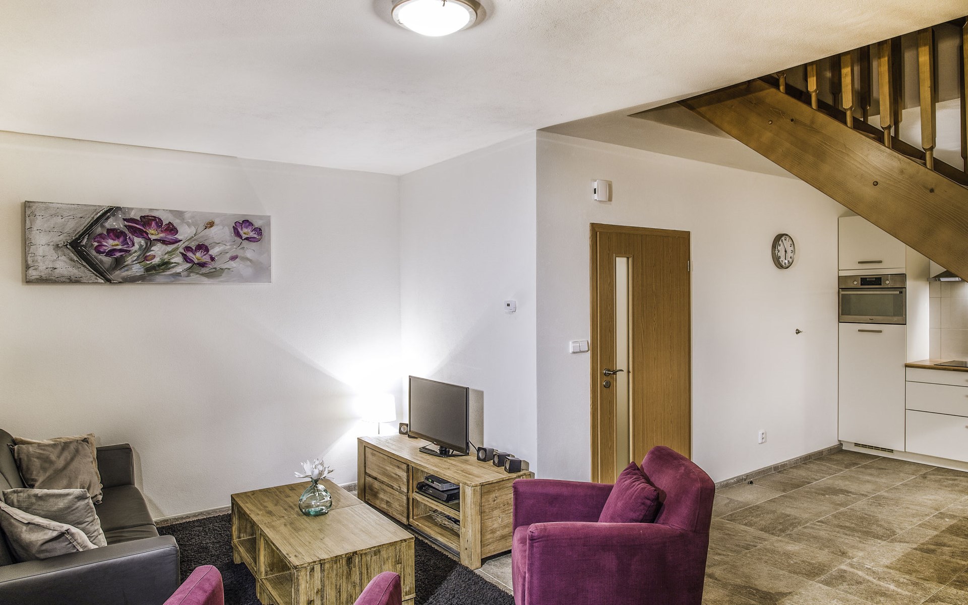 Kinderfreundliches, modernes Feriendorf "Residence Lipno". 40 Häuser im Ferienresort. Am Ortsrand, 1.5 km vom Zentrum von Lipno nad Vltavou, sonnige, erhöhte Lage, 250 m vom See, 2 km vom Skigebiet. Zur Mitbenutzung: Grundstück. Kinderspielplatz (Rutschbahn, Schaukel). Zur Alleinbenutzung: Garten. Terrasse, Gartenmöbel. In der Anlage: Empfang, Einstellraum für Fahrräder, Waschmaschine, Wäschetrockner (zur Mitbenutzung, extra). Parkplatz beim Haus. Lebensmittelgeschäft 1.2 km, Restaurant 200 m, Bushaltestelle "Lipno nad Vltavou, Kobylnice" 200 m, Grasstrand 250 m, Hallenbad 2 km. Sporthafen 1.5 km, Wanderwege ab Haus 10 m, Radweg, Sessellift 2 km, Skisportanlagen 2 km, Skibushaltestelle 200 m, Skischule 2 km. Nahe gelegene Sehenswürdigkeiten: Aquaworld Lipno 2 km, Hopsárium 2 km, Bobová dráha 2.5 km, Stezka korunami stromů 3.5 km, Království Lesa 3.5 km. Bekannte Skigebiete sind gut erreichbar: Skiareál Lipno 2 km. Alle Häuser/Wohnungen sind individuell eingerichtet. Marina Lipno (1,5 km) mit Yachthafen und Indoor-Wasserwelt (nicht in Betrieb vom 1.11.-30.11.). Golfplatz und Sessellift zum Skizentrum Kramolin 1 km (5 Skipisten, Snowboardpark, 50 km Langlaufloipen). Yacht-, Ski- und Fahrradverleih.