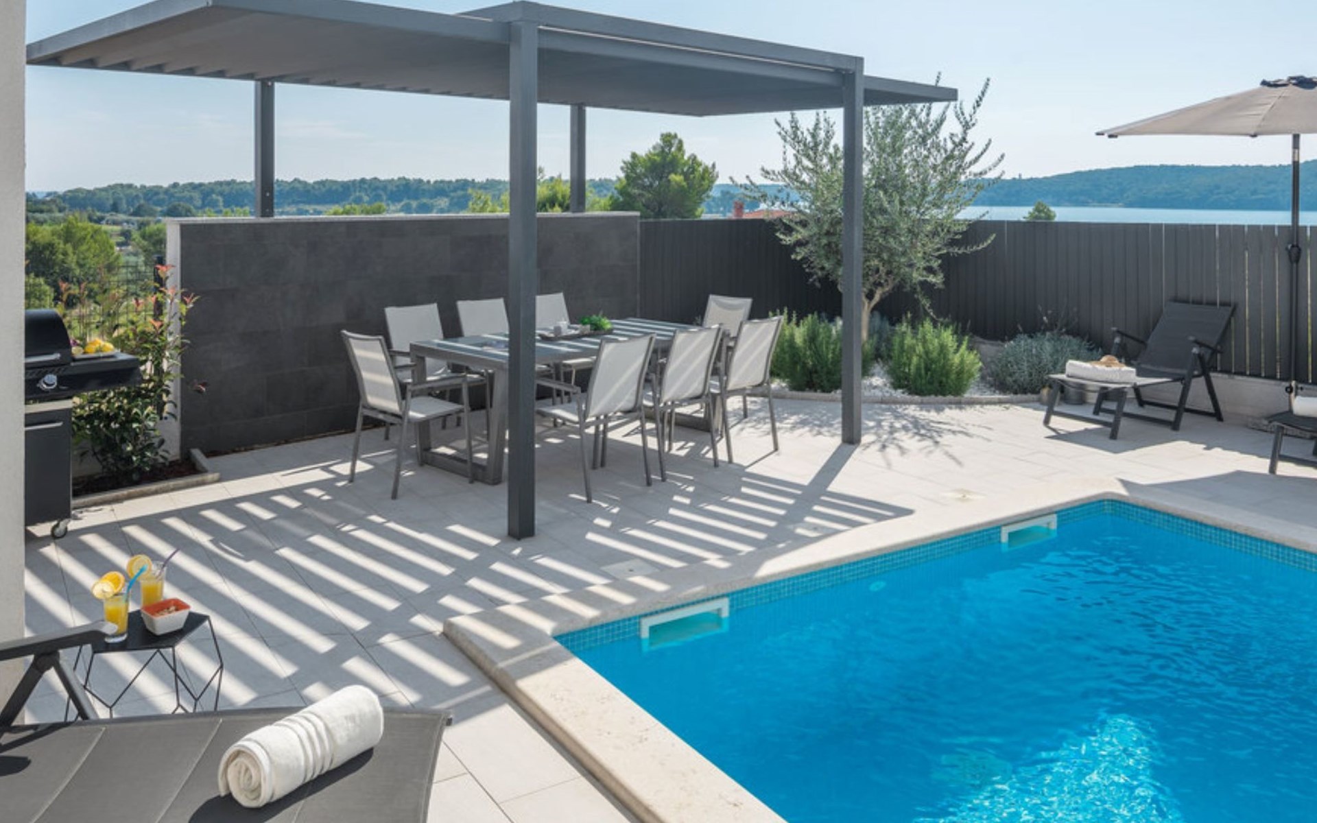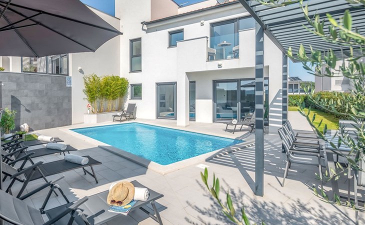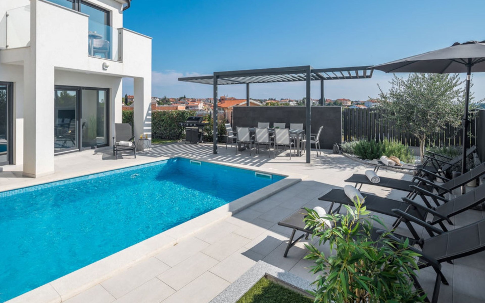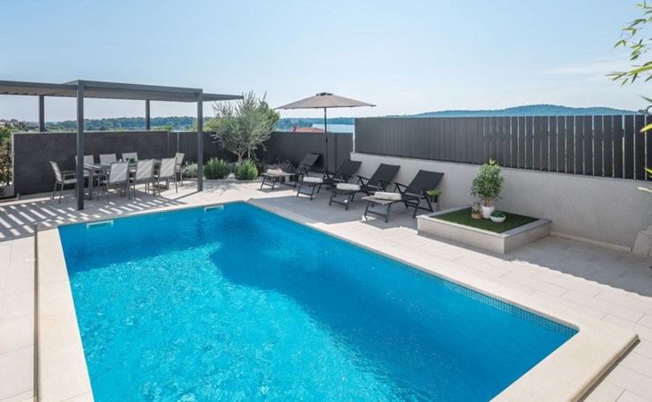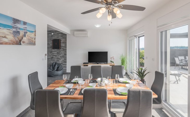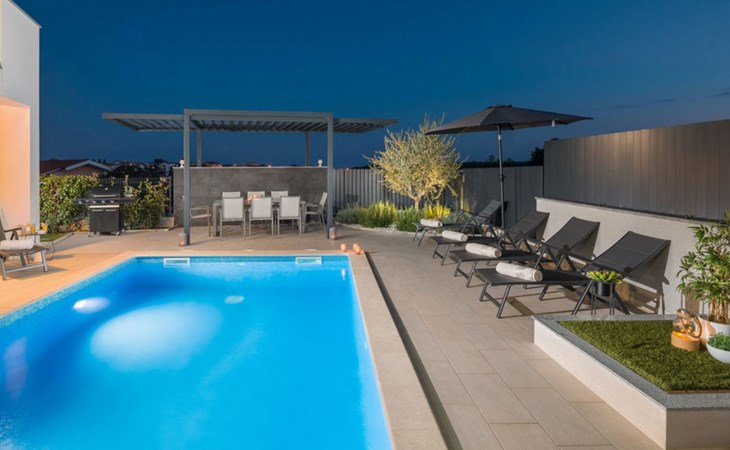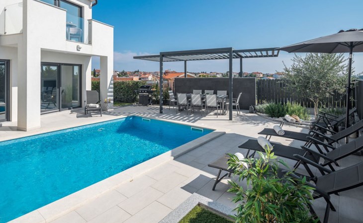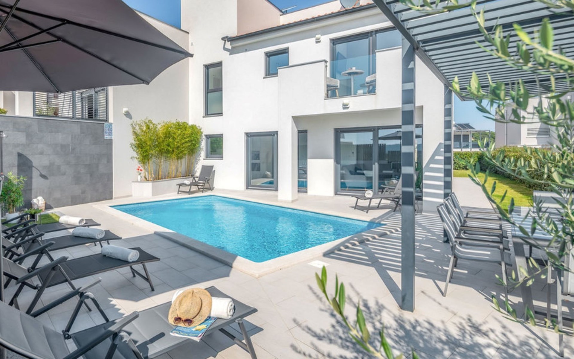 Villa "Freya", auf 2 Stockwerken. 1 km vom Zentrum von Medulin, 12 km vom Zentrum von Pula, 150 m vom Meer, 150 m vom Strand. Zur Alleinbenutzung: Grundstück 570 m2 (eingezäunt) mit Rasen, Schwimmbad eckig (7 x 4 m, 28 m2, 140 cm tief, saisonale Verfügbarkeit: 01.Mai. - 01.Okt.). Aussendusche, Terrasse (20 m2), Gartenmöbel, Grill (Schaukel). Im Hause: Internetzugang, Tischtennis, Billard, Spielzimmer, Waschmaschine. Parkplatz (für 3 Autos) beim Haus auf dem Grundstück. Lebensmittelgeschäft 500 m, Supermarkt 1 km, Restaurant 300 m, Bushaltestelle 1 km, Kieselstrand, Steinstrand 150 m. Jacht-Hafen 1.5 km. Bitte beachten: Flugplatz 9 km vom Haus.