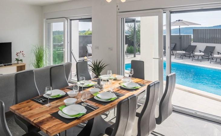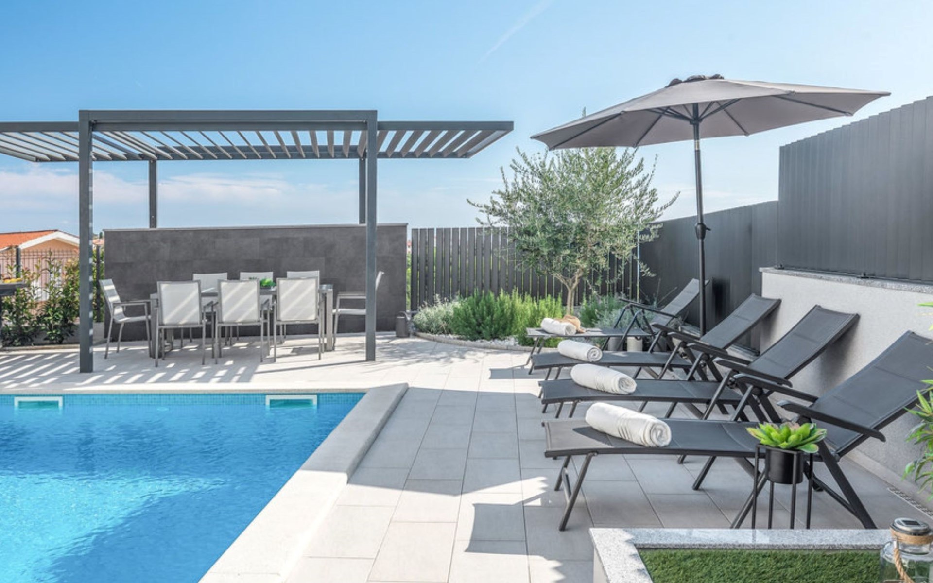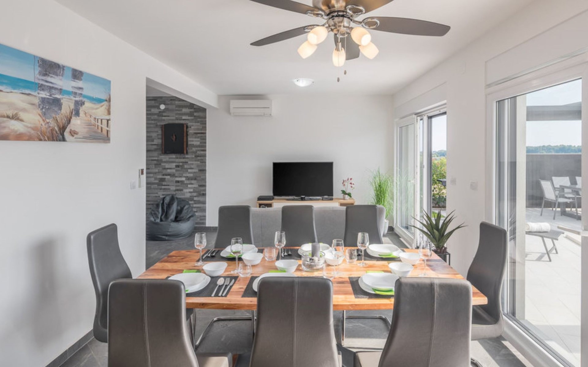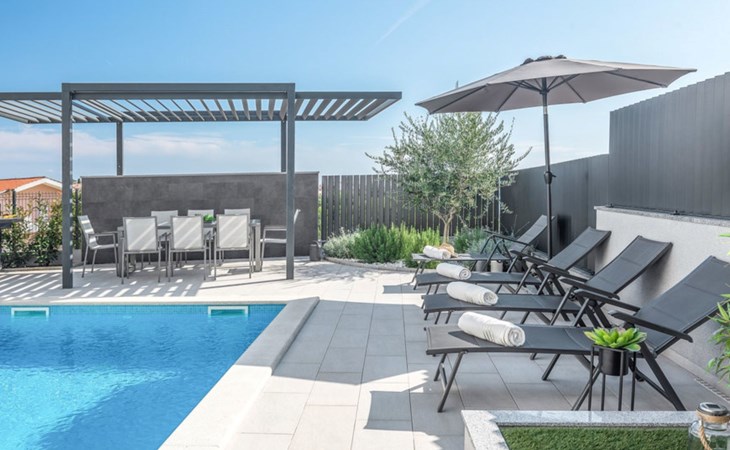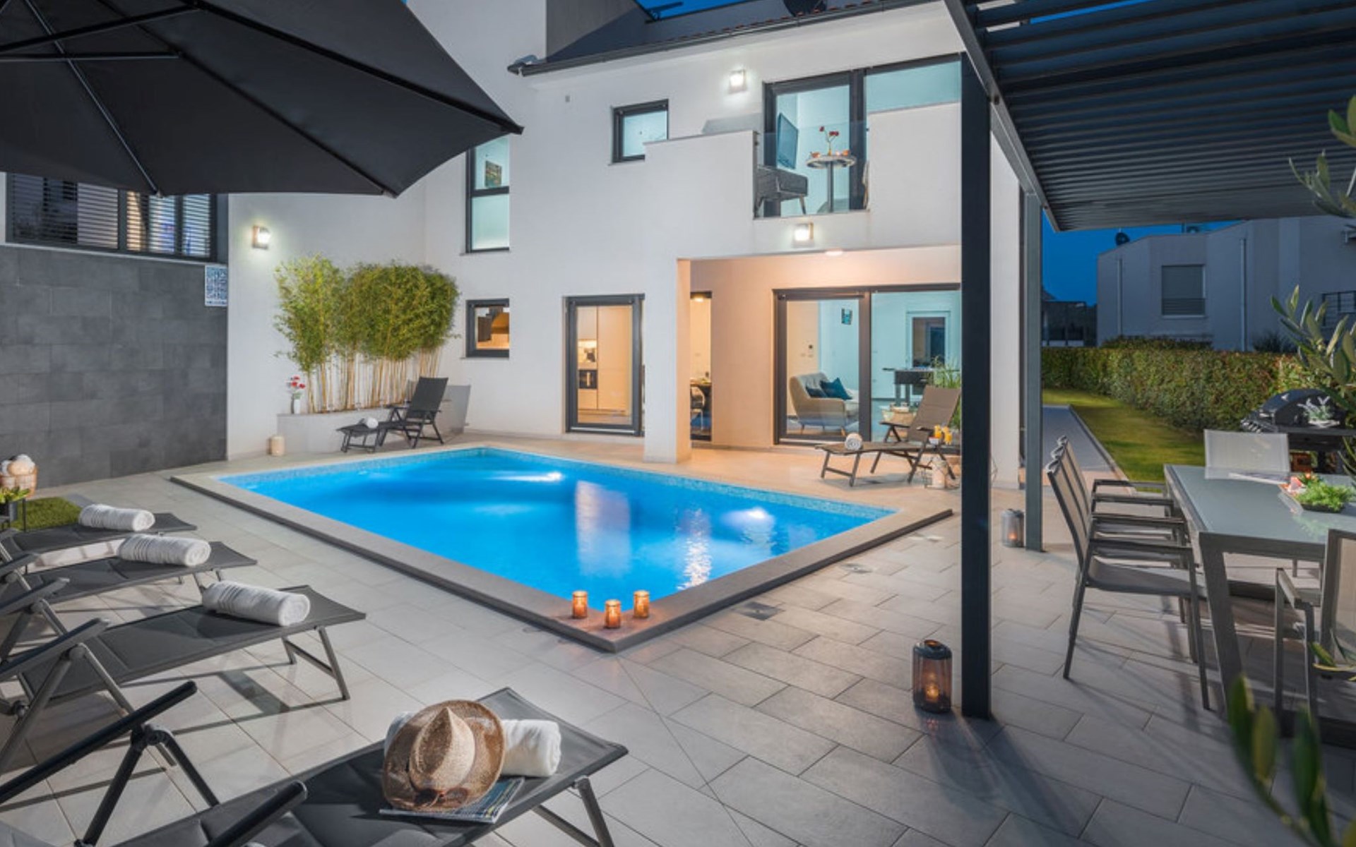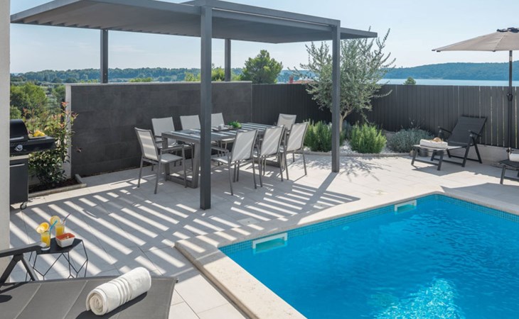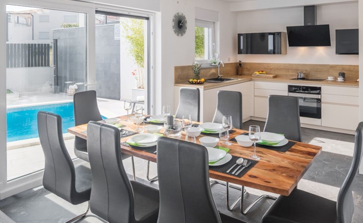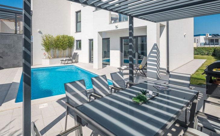Villa "Freya", auf 2 Stockwerken. 1 km vom Zentrum von Medulin, 12 km vom Zentrum von Pula, 150 m vom Meer, 150 m vom Strand. Zur Alleinbenutzung: Grundstück 570 m2 (eingezäunt) mit Rasen, Schwimmbad eckig (7 x 4 m, 28 m2, 140 cm tief, saisonale Verfügbarkeit: 01.Mai. - 01.Okt.). Aussendusche, Terrasse (20 m2), Gartenmöbel, Grill (Schaukel). Im Hause: Internetzugang, Tischtennis, Billard, Spielzimmer, Waschmaschine. Parkplatz (für 3 Autos) beim Haus auf dem Grundstück. Lebensmittelgeschäft 500 m, Supermarkt 1 km, Restaurant 300 m, Bushaltestelle 1 km, Kieselstrand, Steinstrand 150 m. Jacht-Hafen 1.5 km. Bitte beachten: Flugplatz 9 km vom Haus.