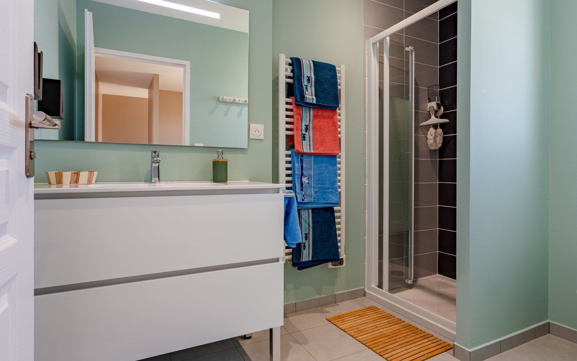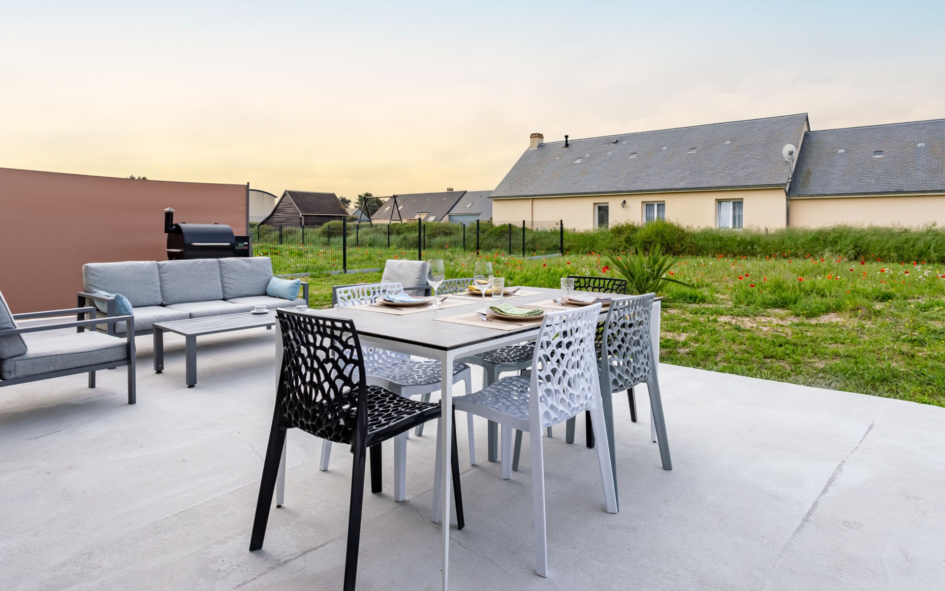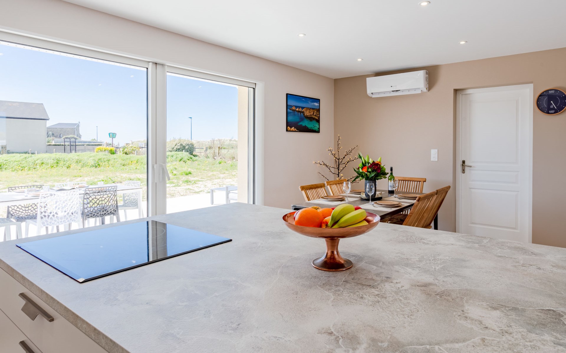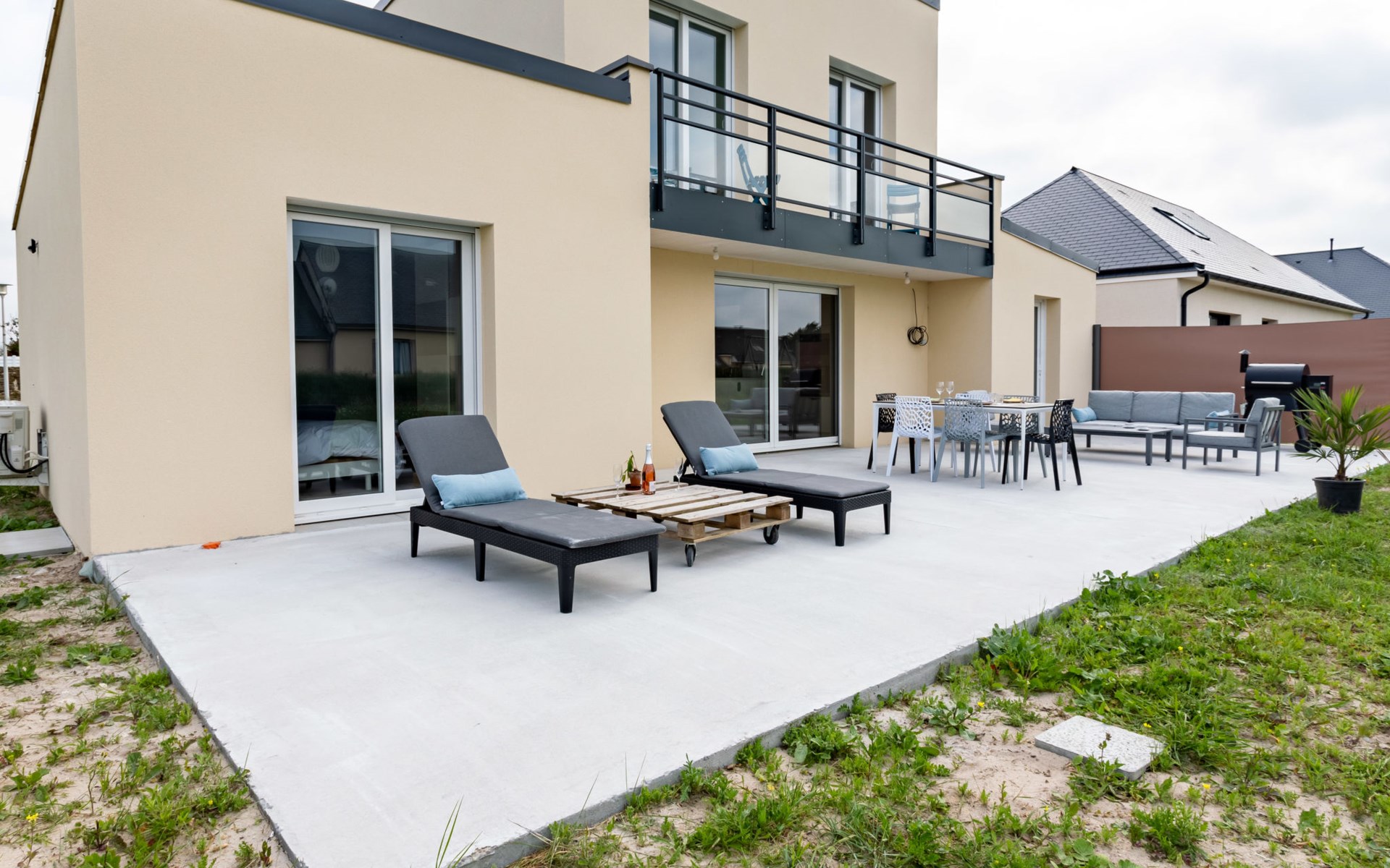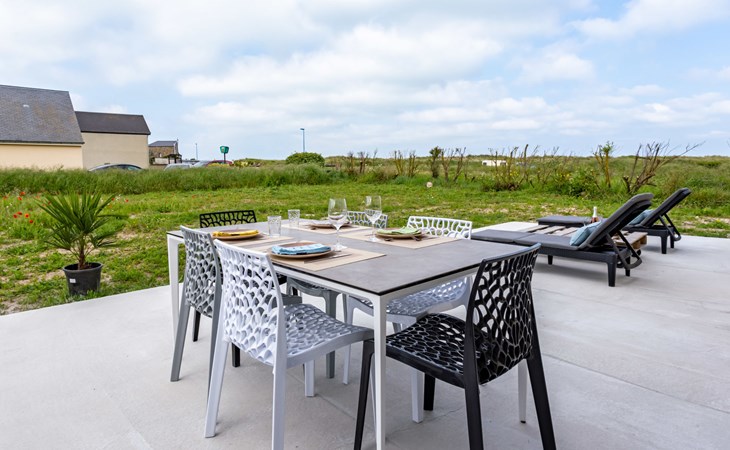 Modernes, schönes, komfortables Haus. 1.5 km vom Zentrum von Bretteville sur Ay, 10 km vom Zentrum von La Haye du Puits, in einem Wohnquartier, 50 m vom Meer, 50 m vom Strand. Zur Alleinbenutzung: Grundstück 1'000 m2 mit Parkplatz (für 2 Autos) auf dem Grundstück, öffentliche Parkplätze auf der Strasse. Einkaufsgeschäft 5.5 km, Lebensmittelgeschäft 1.5 km, Supermarkt 10 km, Bushaltestelle "La Haye - Plc Flandres Dunkerque" 11 km.