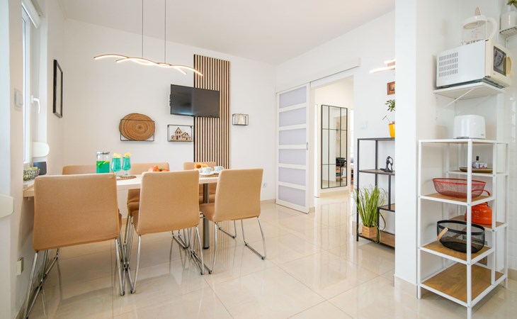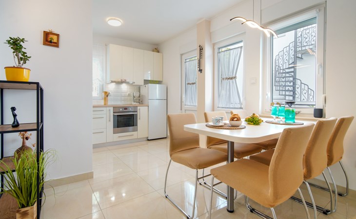Dreifamilienhaus "Rea". 1.5 km vom Zentrum von Crikvenica, 2 km vom Zentrum von Selce, in einem Wohnquartier, 500 m vom Meer, 500 m vom Strand, in einer Sackgasse. Zur Mitbenutzung: Grundstück 500 m2 (eingezäunt) mit Bäumen. Im Hause: Internetzugang, Waschmaschine (extra) (zur Mitbenutzung). Parkplatz (für 2 Autos) auf dem Grundstück. Einkaufsgeschäft 150 m, Bushaltestelle 3 km, Kieselstrand 500 m. Jacht-Hafen 2 km. Bitte beachten: Der Besitzer wohnt im selben Haus. Flugplatz 34 km vom Haus.