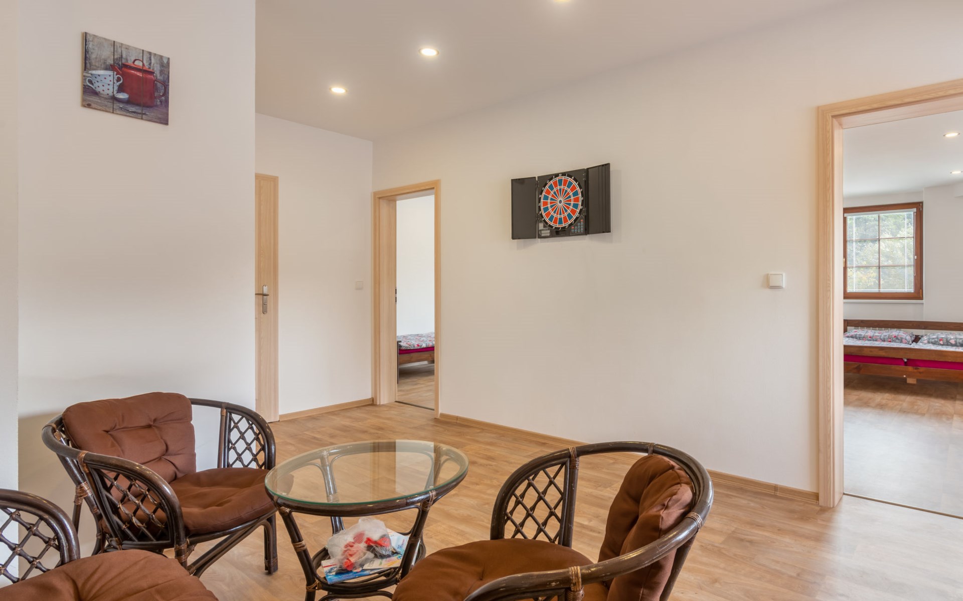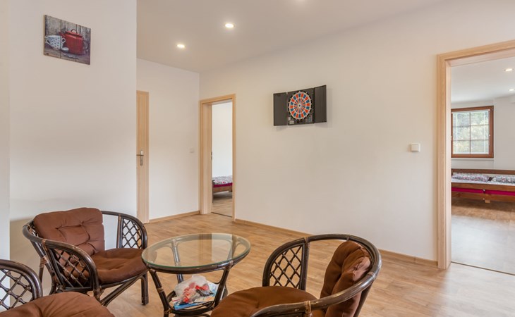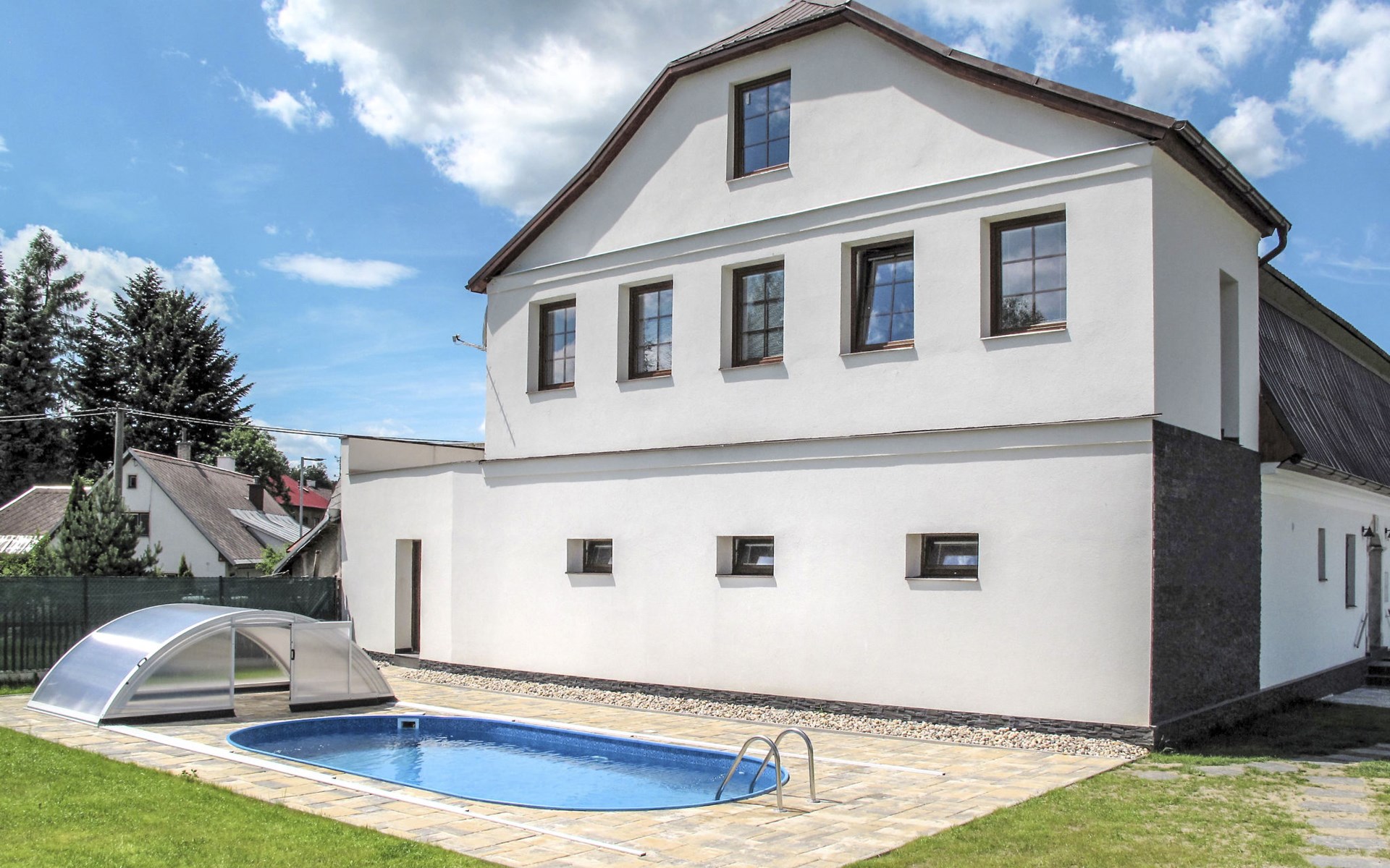 Moderner, schöner, freistehender Landsitz "IVA", 610 m.ü.M., renoviert im Jahre 2019. 300 m vom Zentrum von Olešnice v Orlických horách, 16 km vom Zentrum von Dobruška, Nové Město nad Metují, 22 km vom Zentrum von Náchod, zentrale Lage, 20 km vom See. Zur Alleinbenutzung: Grundstück 800 m2, Garten (eingezäunt), Schwimmbad (7 x 3 m, 120 cm tief, saisonale Verfügbarkeit: 02.Mai. - 26.Sep.). Pergola, Gartenmöbel, Grill. Im Hause: Sauna, Sprudelbad, Tischtennis, Trampolin. Parkplatz (für 6 Autos) auf dem Grundstück. Einkaufsgeschäft 500 m, Supermarkt 16 km, Bushaltestelle "Olešnice v Orlických horách" 400 m, Bahnstation "Dobruška" 16 km, Grasstrand 20 km, Freibad 16 km, Hallenbad 16 km, Badesee "Broumar" 20 km. Wanderwege ab Haus 50 m, Radweg, Skilift 850 m, Sessellift 850 m, Skipisten, Skiverleih 850 m, Skischule, Langlaufloipe 500 m. Nahe gelegene Sehenswürdigkeiten: Nové Město nad Metují 16 km, Náchod 22 km, Teplice nad Metují, Adršpach 40 km, Hradec Králové 50 km. Bekannte Skigebiete sind gut erreichbar: Olešnice v Orlických horách 850 m, Deštné v Orlických horách 10 km. Bekannte Seen in der Umgebung sind gut erreichbar: Broumar 20 km, Rozkoš 29 km.