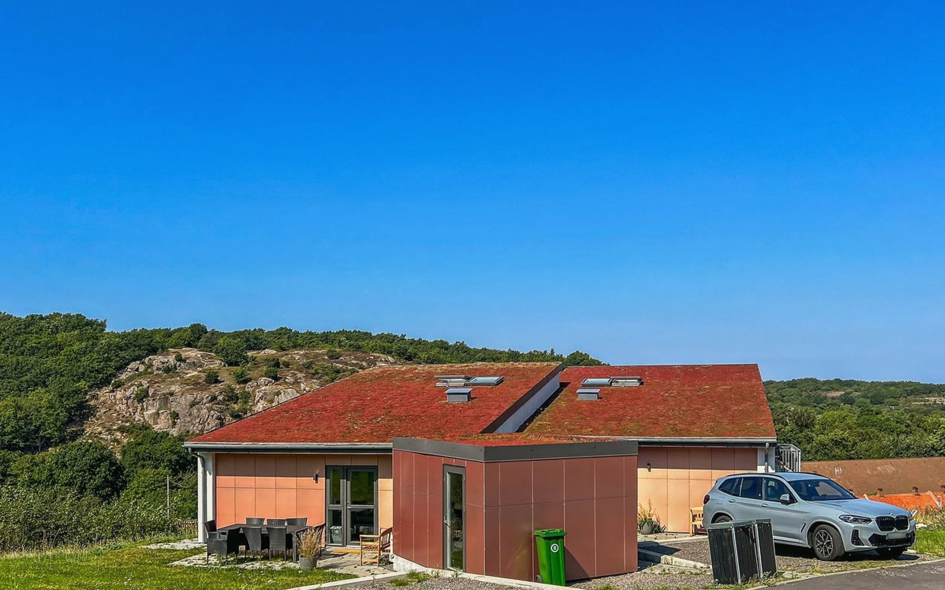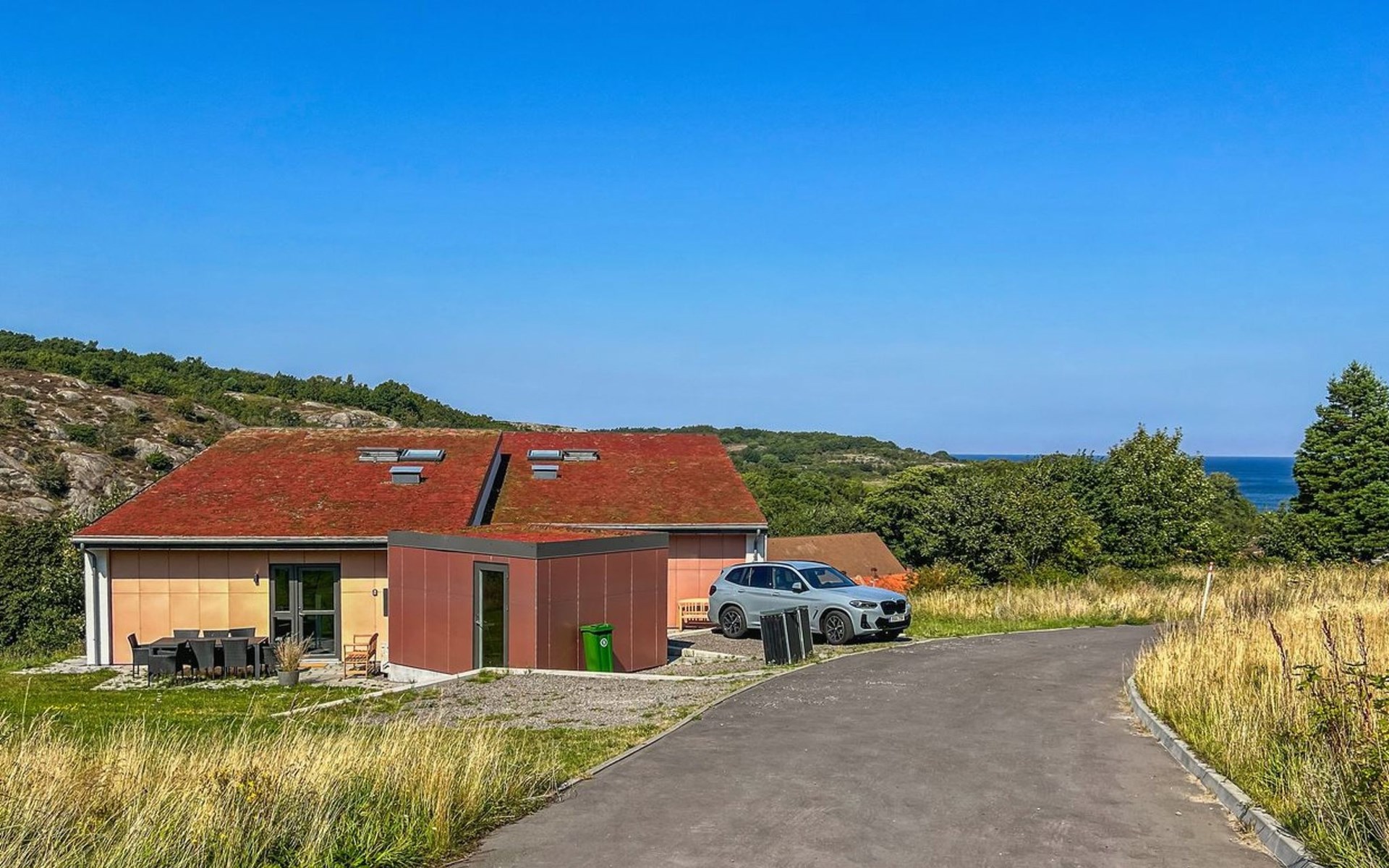 Einfamilienhaus, Baujahr 2023. 450 m vom Meer. Zur Alleinbenutzung: naturbelassenes Grundstück 600 m2. Grill. Im Hause: Waschmaschine, Wäschetrockner. Parkplatz beim Haus. Lebensmittelgeschäft 2 km. Golfplatz 10 km. Der Besitzer akzeptiert keine Jugendgruppen.