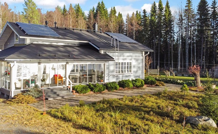 Located 35 km west of Kuopio, Lake Saittajärvi is only 30 meters away. The villa’s frontage features a shallow, sandy beach, while the lakeside sauna area offers a deeper, muddy-bottomed shoreline.