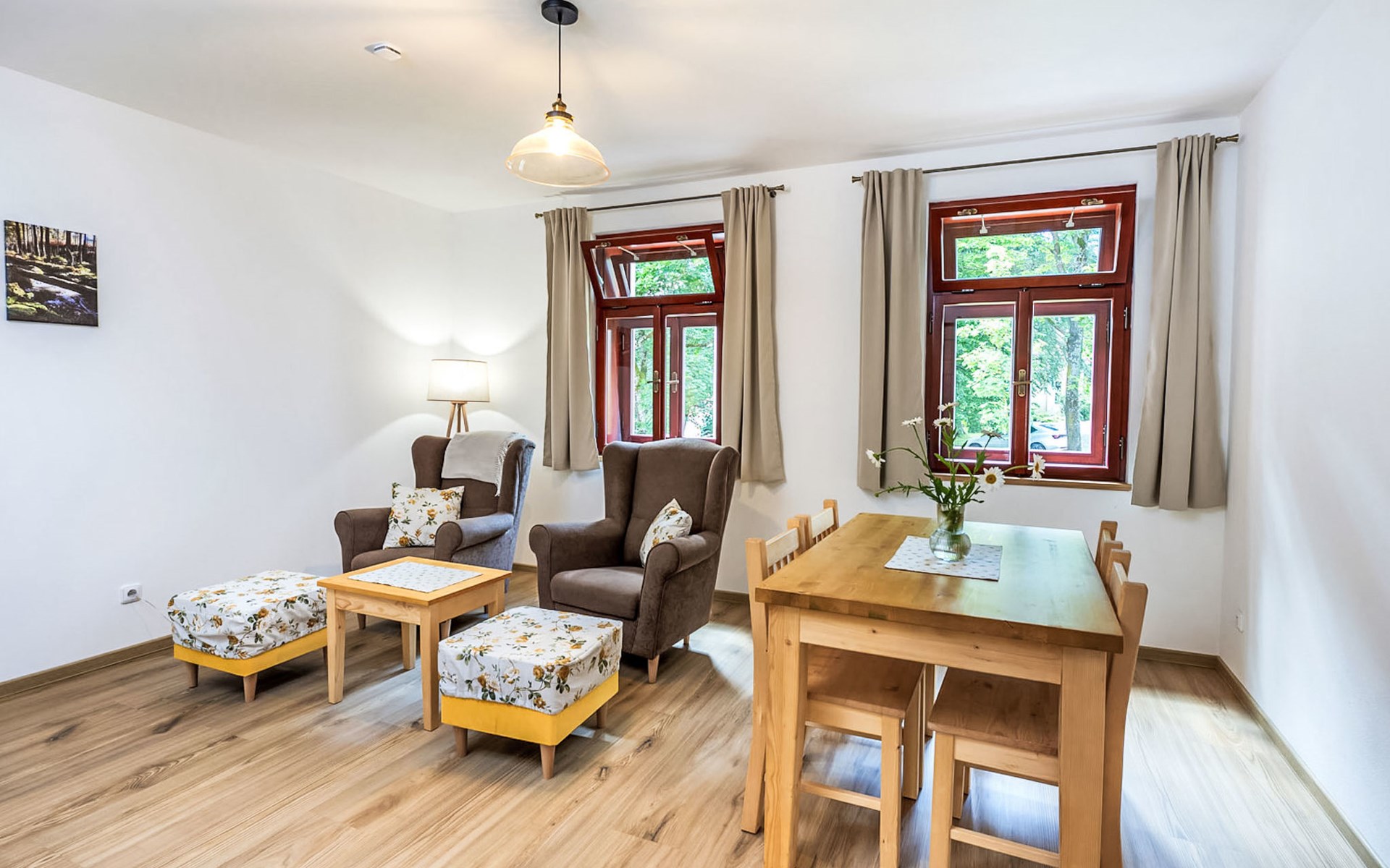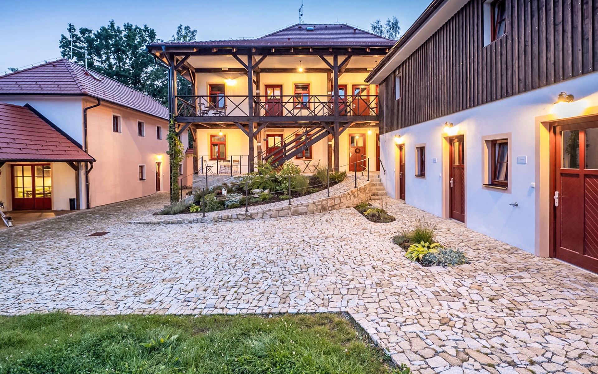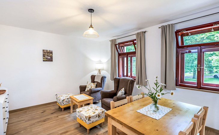 Pernek 4 km von Horní Planá: Sehr schöne, freistehende Residenz auf 3 Stockwerken, renoviert im Jahre 2024. 8 Wohnungen im Ferienhaus. 500 m vom Waldrand, 1.8 km vom See, 500 m vom Bach, im Grünen. Zur Mitbenutzung: Grundstück, Naturteich. Terrasse, Feuerstelle. In der Anlage: Aufenthaltsraum, Sauna (extra). Einstellraum für Fahrräder, Skiraum, Zentralheizung. Parkplatz auf dem Grundstück. Supermarkt 4 km, Restaurant 4 km, Fahrradverleih 4 km, Bushaltestelle "Horní Planá, Pernek" 150 m, Hallenbad 22 km, Badesee "Lipno" 1.8 km. Jacht-Hafen 29 km, Minigolf 27 km, Wanderwege ab Haus 10 m, Radweg 100 m, Langlaufloipe 5 km. Nahe gelegene Sehenswürdigkeiten: Mini zoo 1 km, Plešné jezero 14 km, Frymburk aquapark 22 km, Lipno bikepark, aquaworld, bobová dráha, lanový park, Stezka korunami stromů, Království lesa 29 km, Český Krumlov (UNESCO) 32 km, Klášter Zlatá koruna, Rožmberk 39 km. Bekannte Skigebiete sind gut erreichbar: Frymburk 23 km, Lipno nad Vltavou 29 km, Hochficht 33 km, Sternstein 53 km, Mitterdorf 41 km. Bekannte Seen in der Umgebung sind gut erreichbar: vodní nádrž Lipno 1.8 km. Wandergebiete: Národní park Šumava, CHKO Šumava. Bitte beachten: geeignet für Familien. Geeignet für Events.