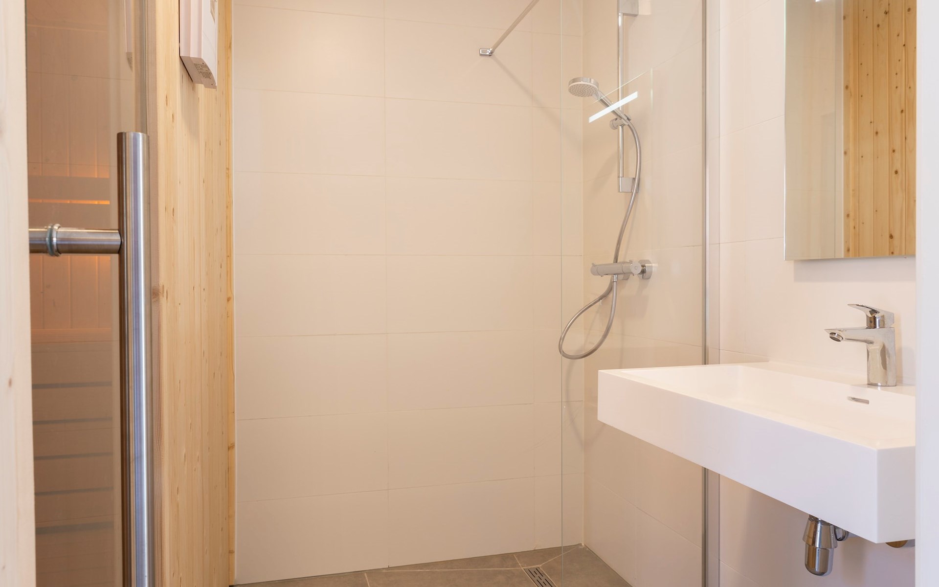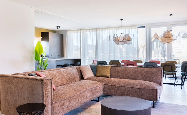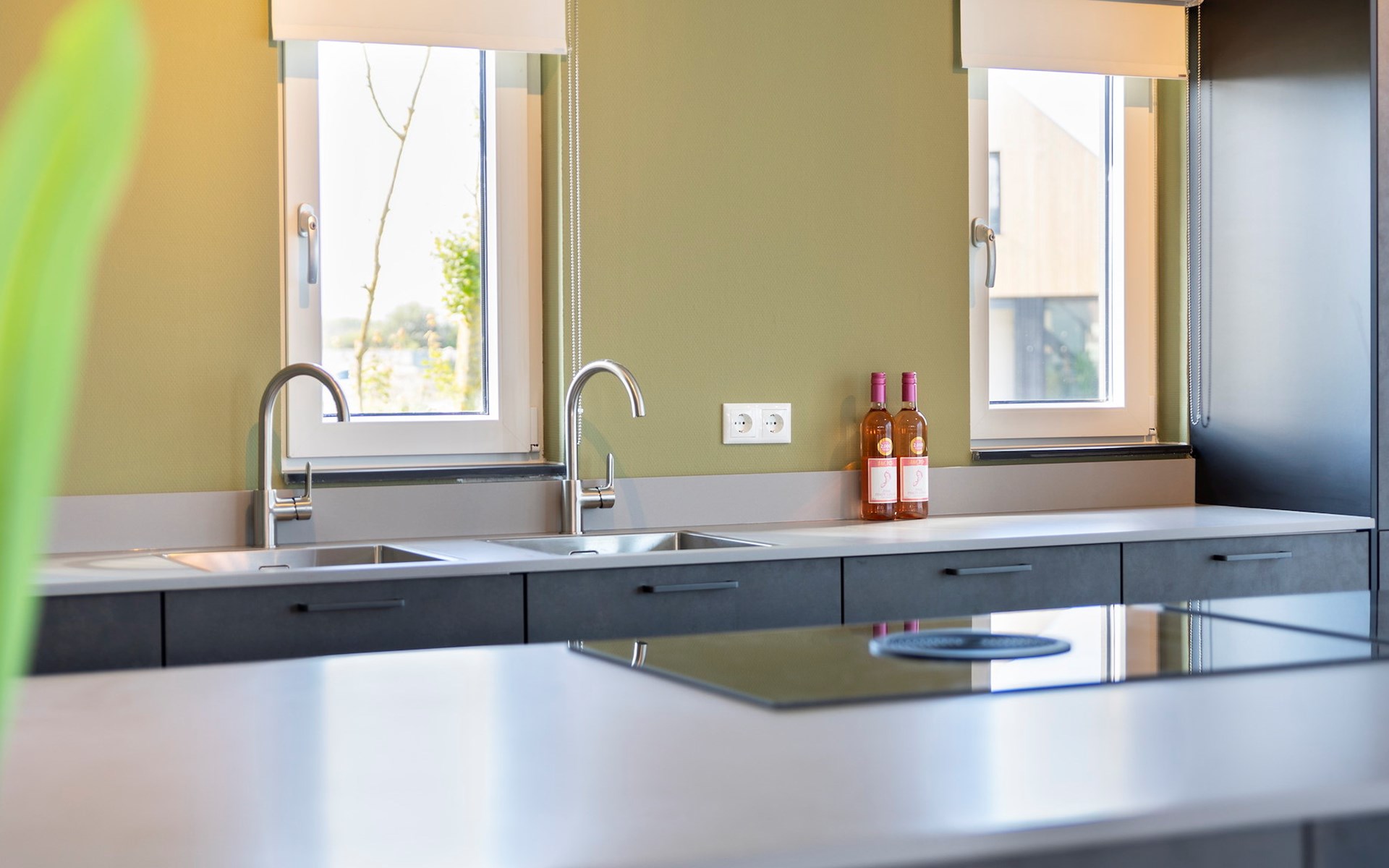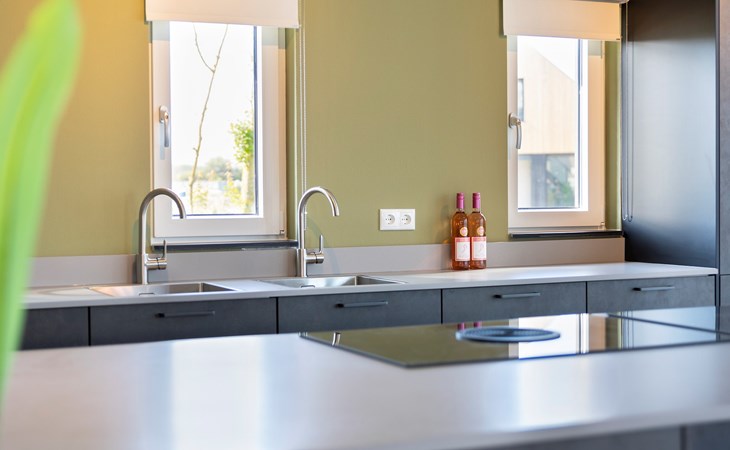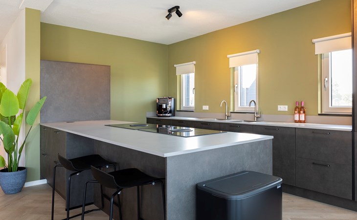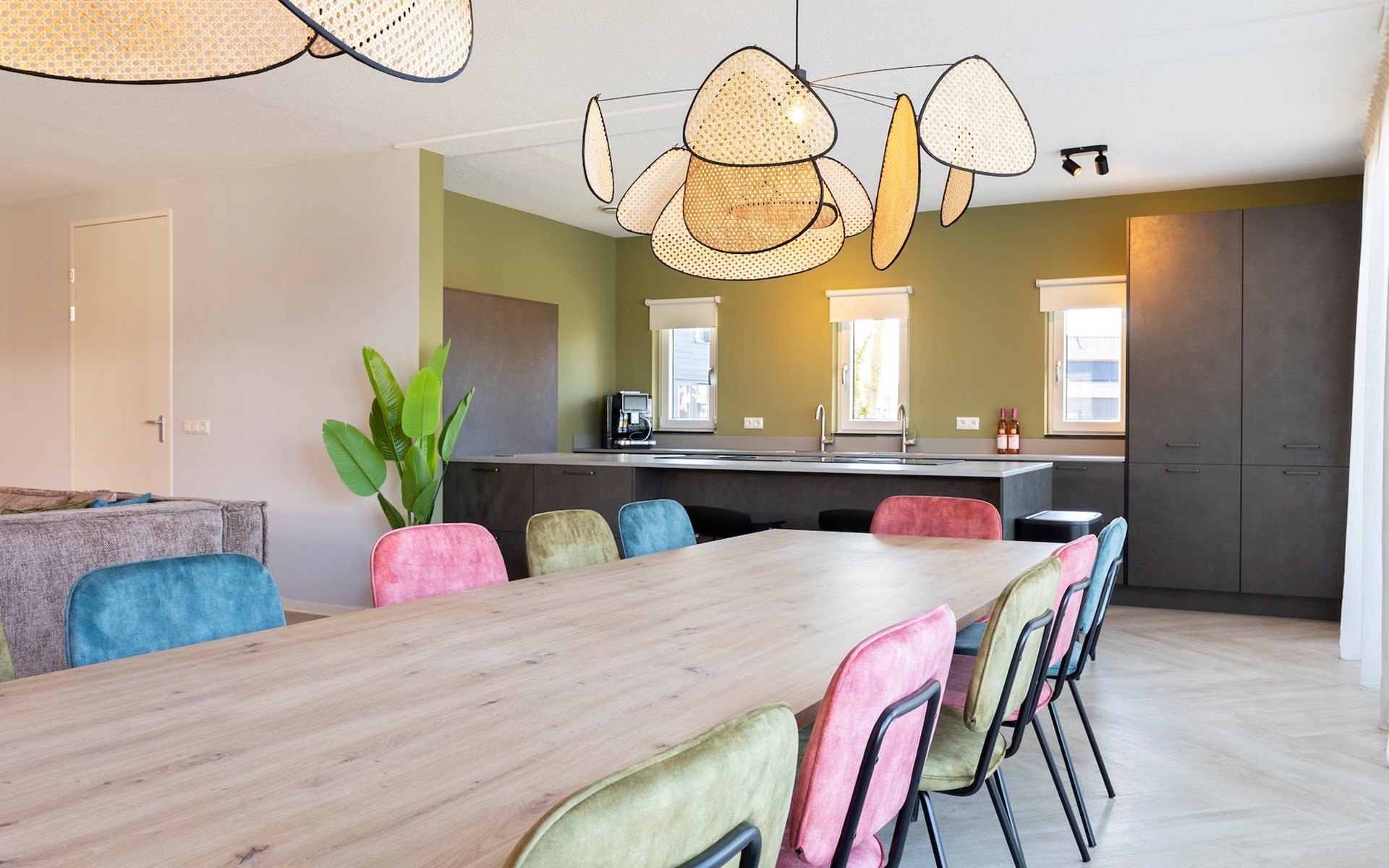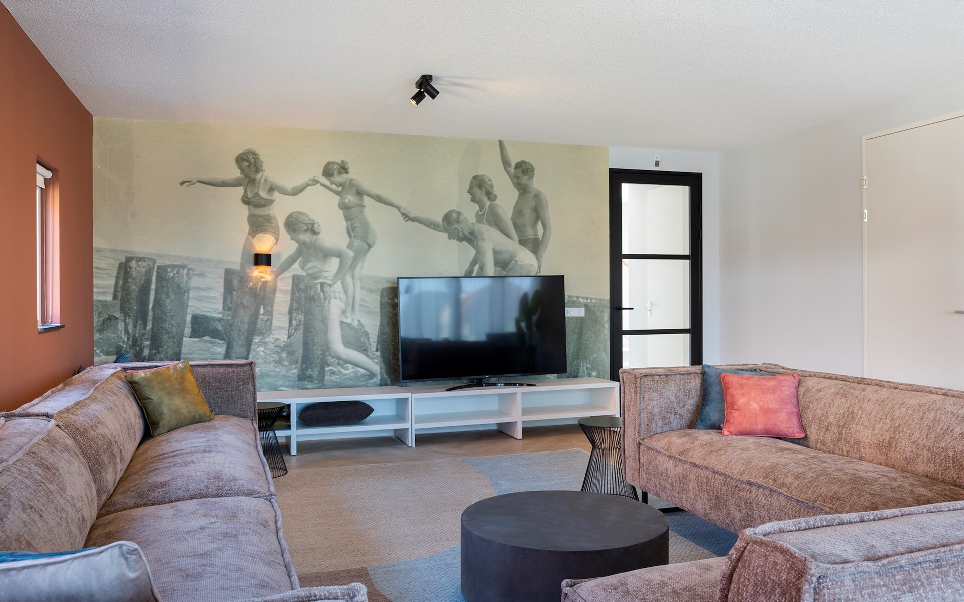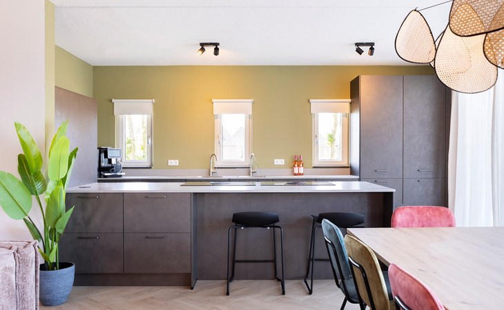 Das großzügige Wohnzimmer verfügt über eine Sitzecke mit Smart-TV mit Streaming-Funktion. Darüber hinaus gibt es einen Essbereich, in dem Sie mit der ganzen Gruppe speisen können. Die luxuriöse Küche mit Kochinsel ist komplett ausgestattet, unter anderem mit einem doppelten Bora-Induktionskochfeld, 2 Kombiöfen, 2 Geschirrspülern und einer automatischen Kaffeebohnenmaschine.