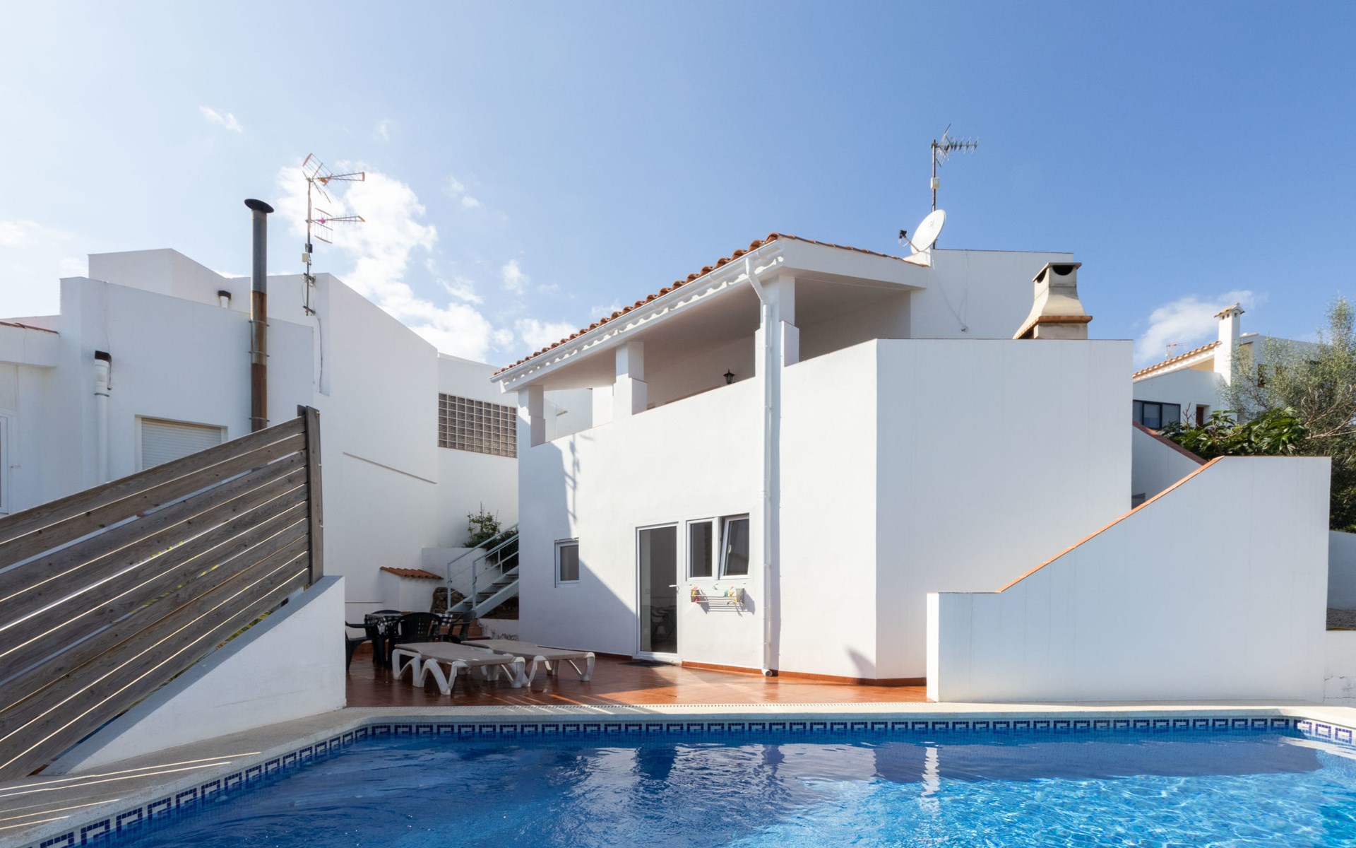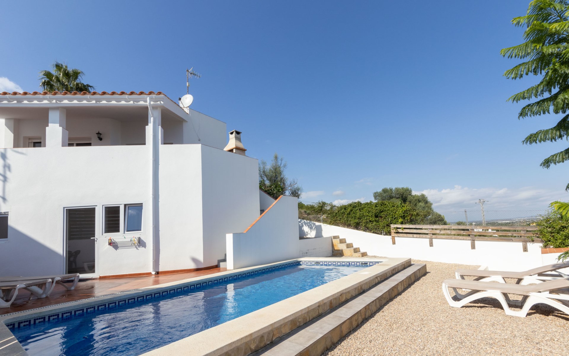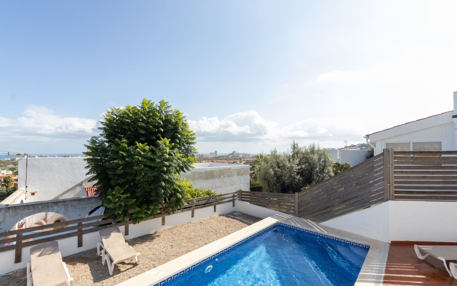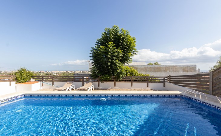 Ctra estación 2 km von Peñiscola centro: Einfamilienhaus "Sascha". Im Ortsteil Arco Iris, 2 km vom Zentrum von Peñiscola, am Ortsrand, 130 km vom Zentrum von Valencia, 130 km vom Zentrum von Tarragona, am Hang, 2.5 km vom Meer, 2.5 km vom Strand. Zur Alleinbenutzung: Grundstück (eingezäunt), Schwimmbad (7 x 3 m, 150 - 180 cm tief, saisonale Verfügbarkeit: 15.Mai. - 15.Okt.). Terrasse, Gartenmöbel, Grill. Treppenweg (20 Stufen) bis zum Haus. Parkplatz beim Haus. Maße: Breite 250 cm. Supermarkt 1.5 km, Bushaltestelle "Plaza de la Constitución" 2.5 km, Bahnstation "Benicarló-Peñíscola" 9 km, Sandstrand 2.7 km. Golfplatz (18 Loch) 30 km. Nahe gelegene Sehenswürdigkeiten: Peñiscola 2 km, Museo de las Artes y las Ciencias 125 km, Delta del Ebro 40 km, Port Aventura 100 km. Wandergebiete: Parque Natural Sierra de Irta 5 km. Ein Teil des Hauses ist geschlossen und nicht bewohnt.