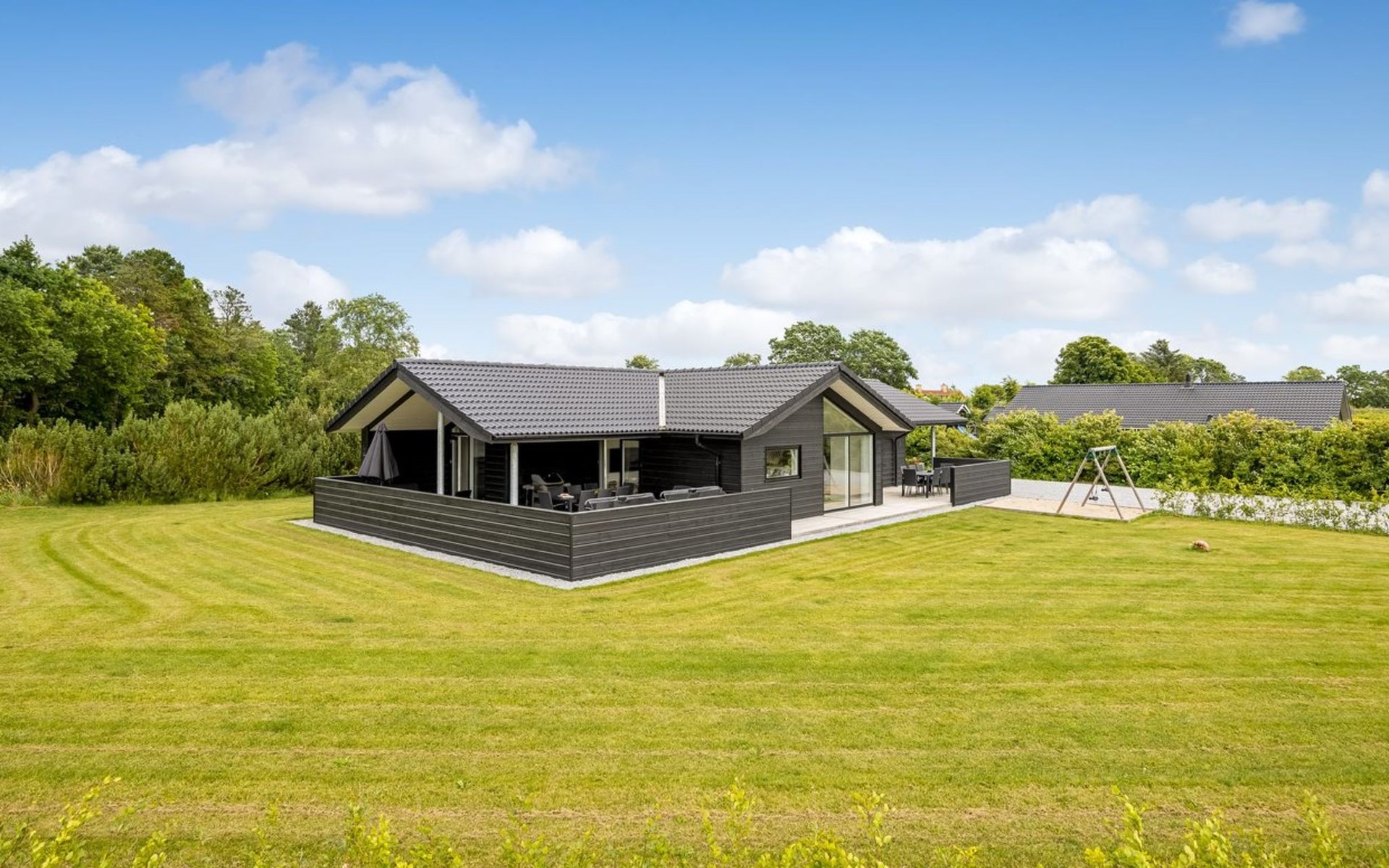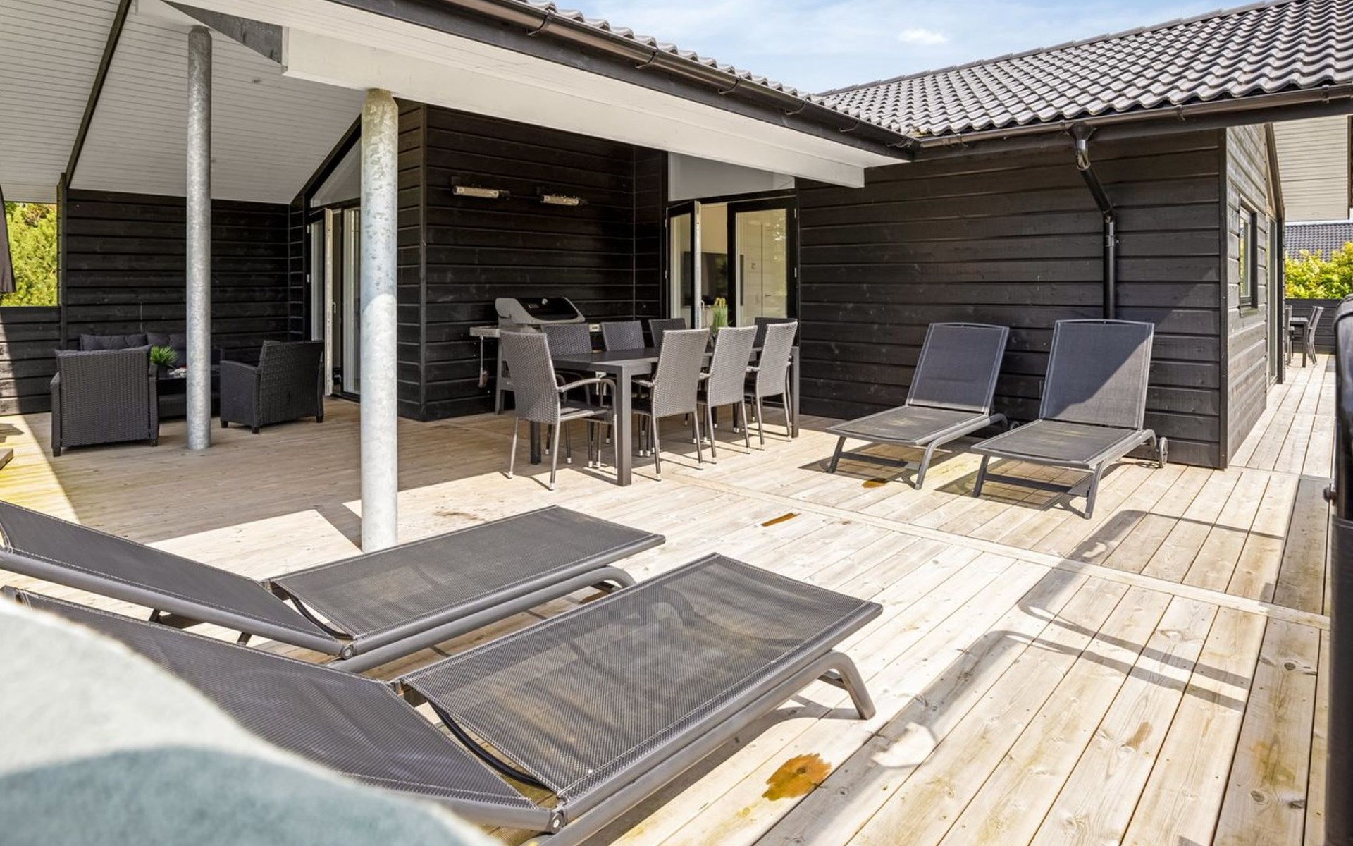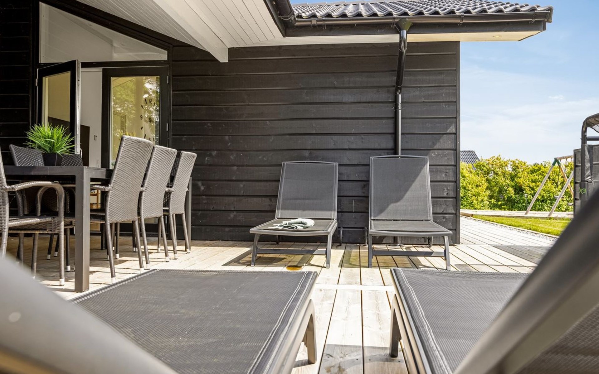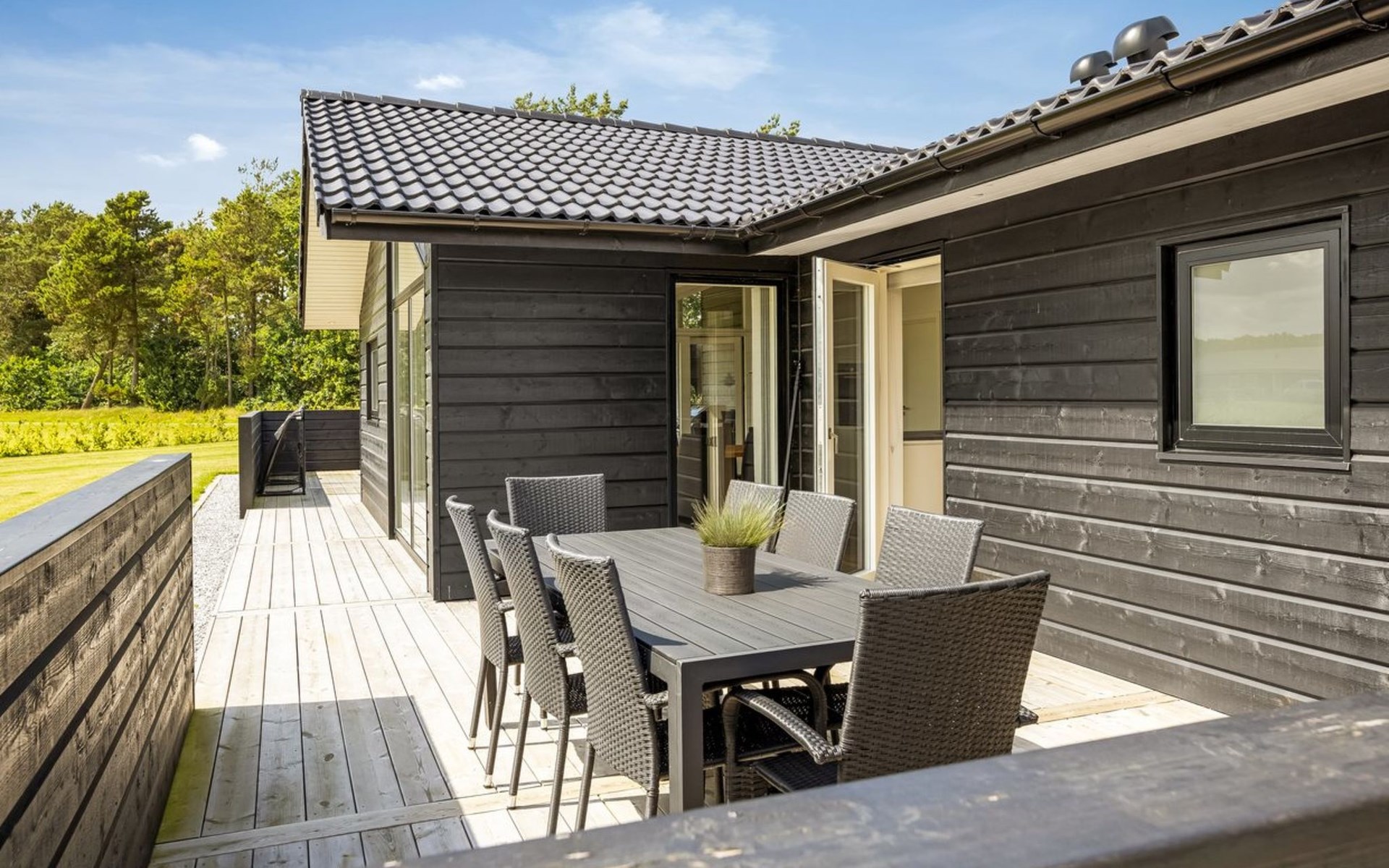 Einfamilienhaus, Baujahr 2022. 500 m vom Meer. Zur Alleinbenutzung: Grundstück 1'398 m2, gepflegter Garten. Grill, Kinderspielplatz (Schaukel). Im Hause: Waschmaschine, Wäschetrockner. Parkplatz beim Haus. Lebensmittelgeschäft 1 km. Golfplatz 18 km. Der Besitzer akzeptiert keine Jugendgruppen.