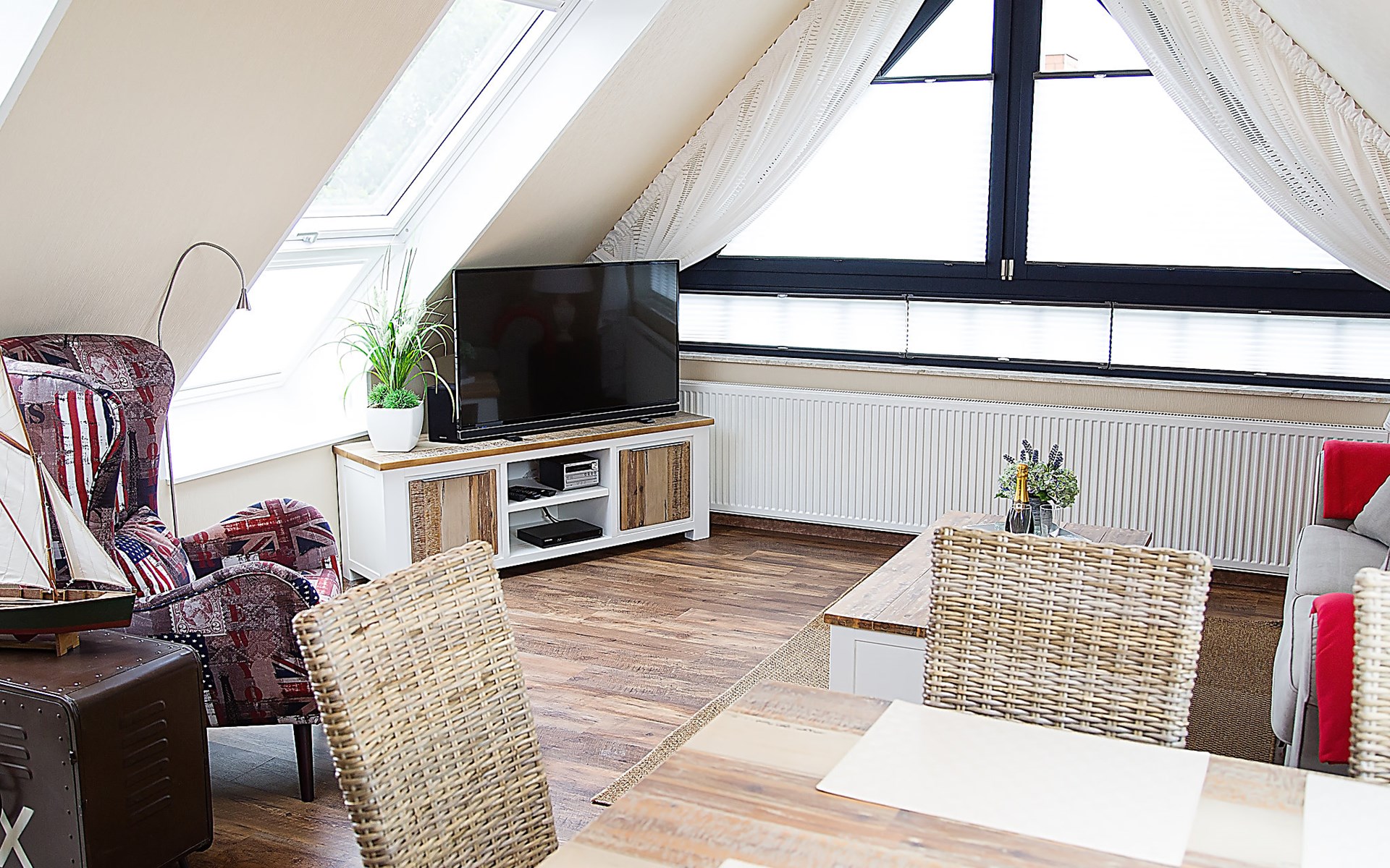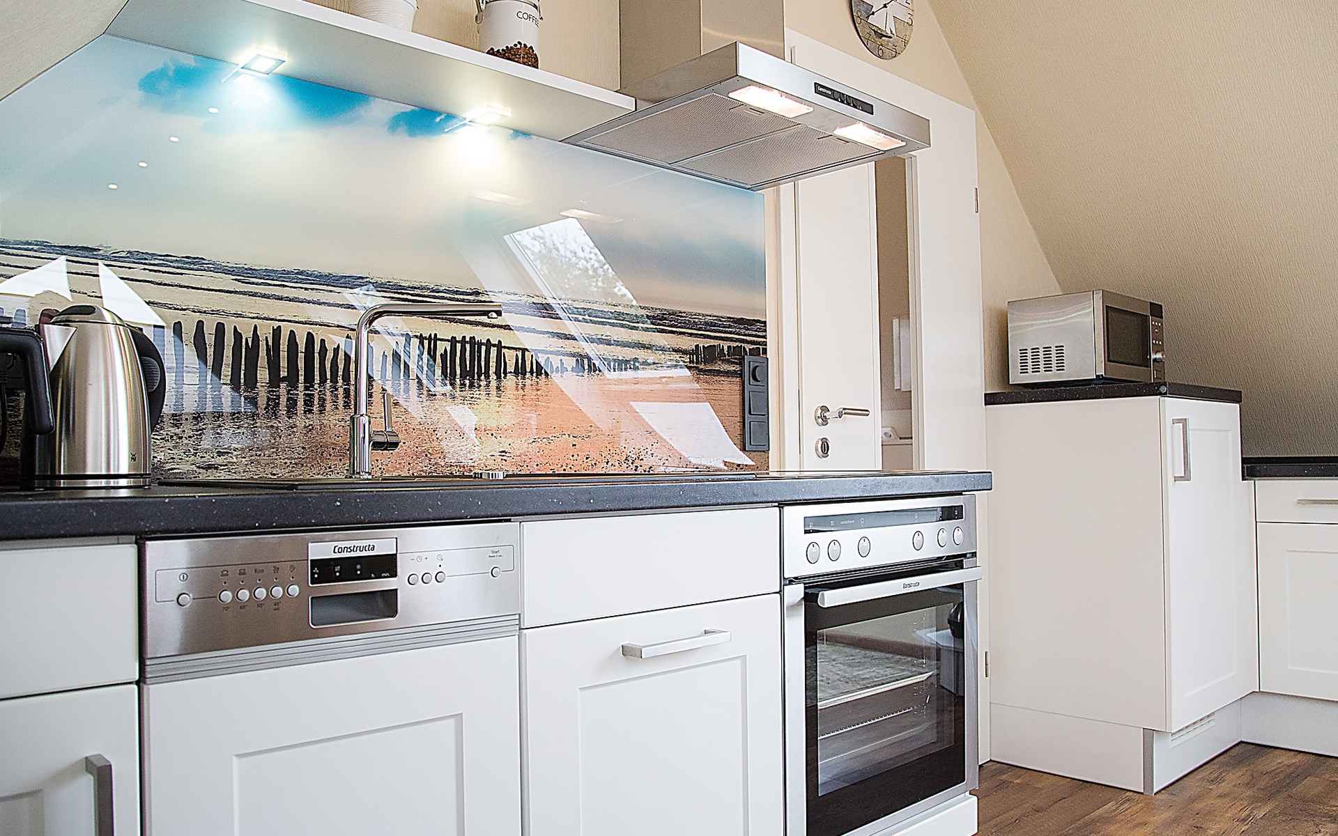 Komfortables Mehrfamilienhaus. Im Ort, 400 m vom Zentrum von Norddeich, zentrale Lage, 350 m vom Meer, 500 m vom Strand. Im Hause: Waschmaschine (extra), Wäschetrockner (extra). Supermarkt 1.6 km, Restaurant 300 m, Bäckerei 400 m, Café 400 m, Bahnstation "Norddeich Mole" 1.9 km, Fähre 1.8 km, Sandstrand 500 m, Freibad 14 km, Hallenbad 600 m. Golfplatz (18 Loch) 8 km, Surfschule 500 m, Tennis 2.3 km, Minigolf 600 m.