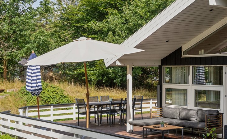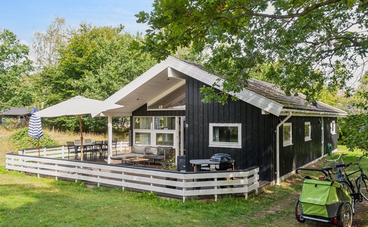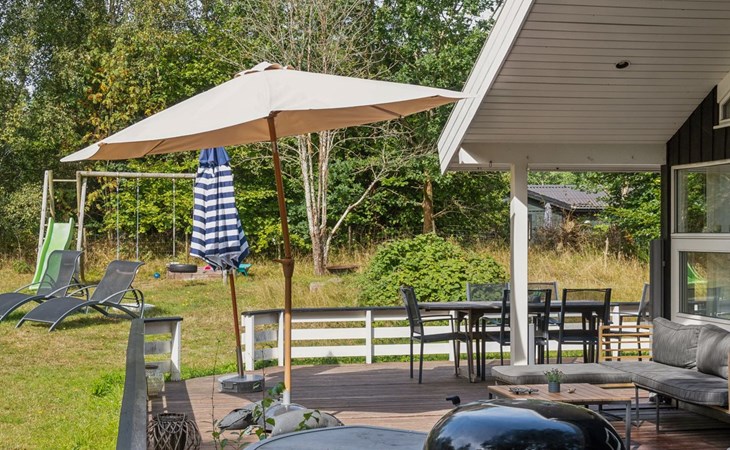 Einfamilienhaus, Baujahr 2006. 1.6 km vom Meer. Zur Alleinbenutzung: Grundstück 1'253 m2, gepflegter Garten. Terrasse (35 m2), Grill, Kinderspielplatz (Rutschbahn, Schaukel). Im Hause: Sauna, Trampolin, Waschmaschine. Parkplatz beim Haus. Lebensmittelgeschäft 3.1 km. Golfplatz 1.6 km. Der Besitzer akzeptiert keine Jugendgruppen.
