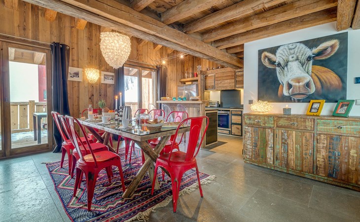 Gemütliches Chalet "Denali". Im Ortsteil Le Petit Alaska, 1.2 km vom Zentrum von Val d'Isère. Im Hause: Sprudelbad, Hamam. Parkplatz beim Haus. Einkaufsgeschäft 1.2 km, Restaurant 1.2 km. Skilift 1 km, Skischule 1.5 km. Das Foto ist nur ein Wohnungsbeispiel.