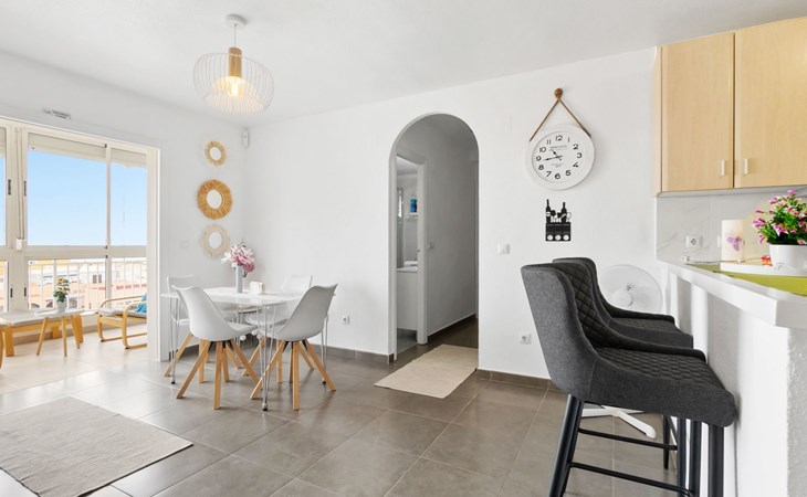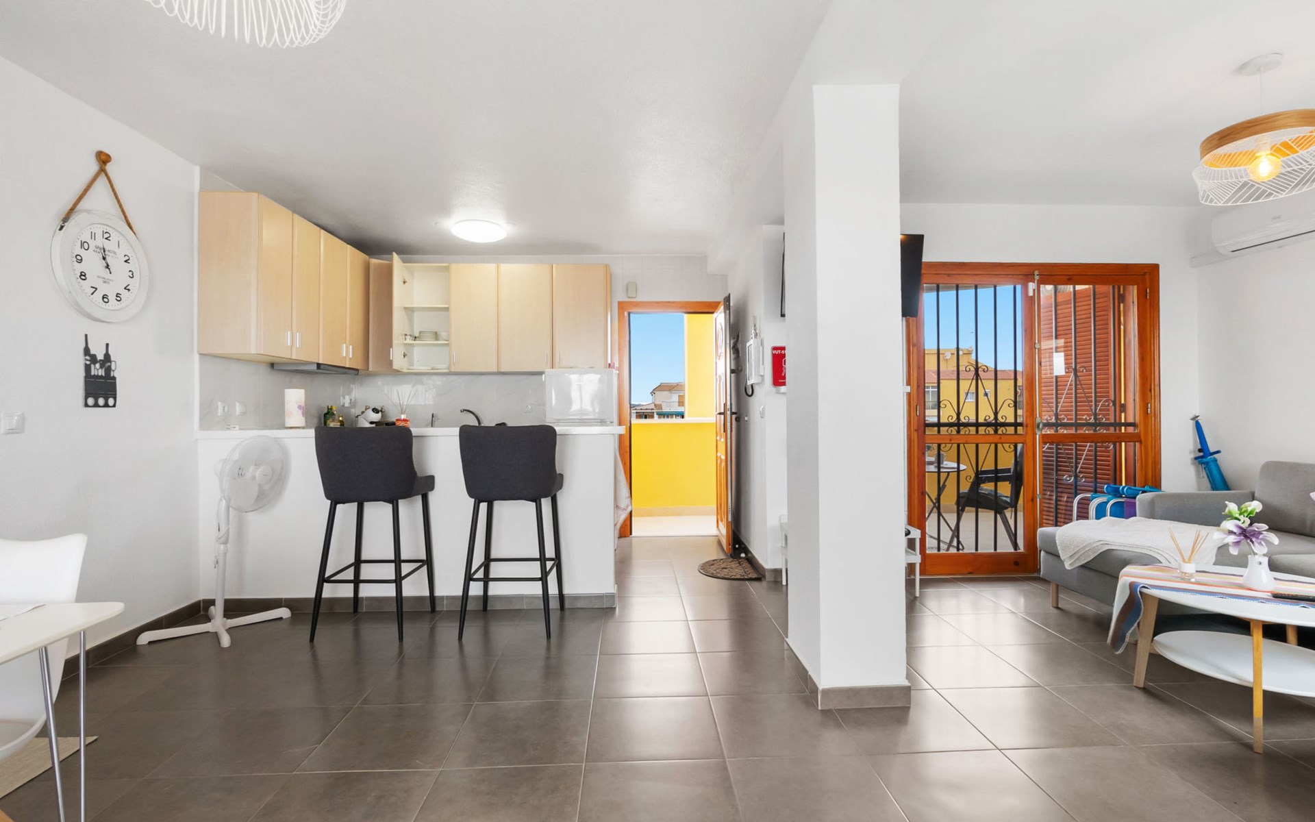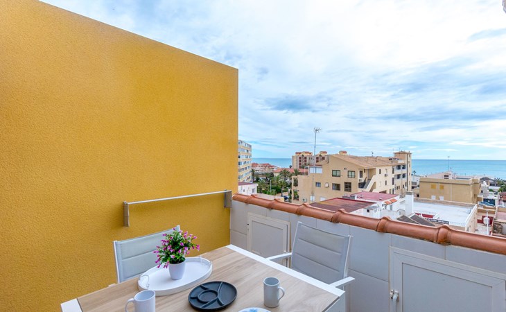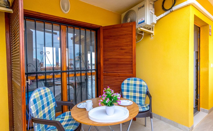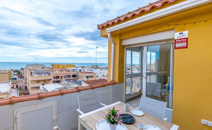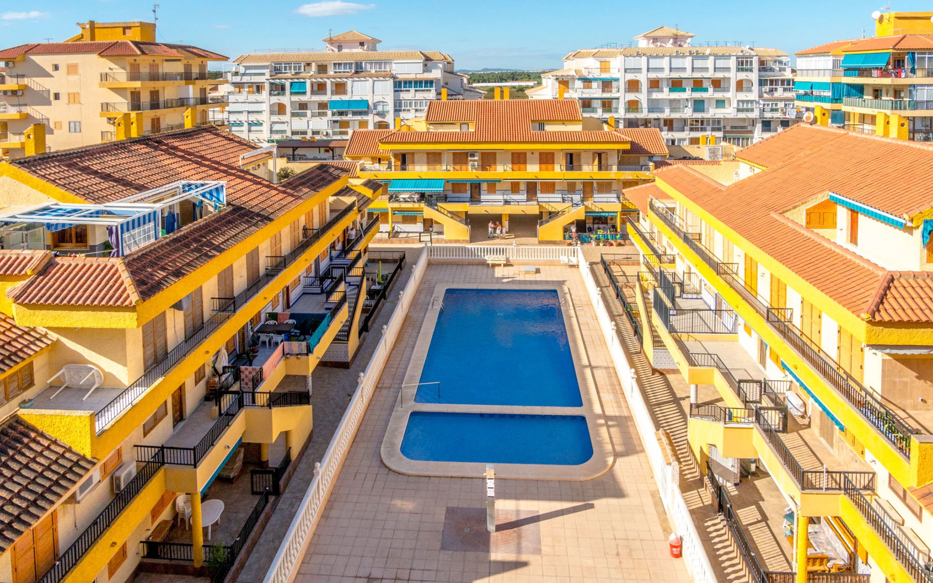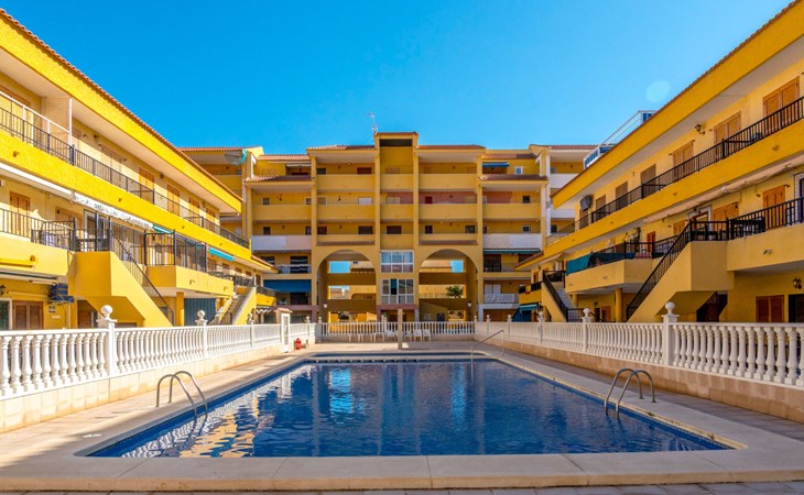 Appartementhaus "Viñamar". Im Ortszentrum von Torre La Mata, 6 km vom Zentrum von Torrevieja, 250 m vom Meer, 250 m vom Strand. Zur Mitbenutzung: Schwimmbad (15 x 8 m, saisonale Verfügbarkeit: 01.Jan. - 31.Dez.). Kinderbecken, Aussendusche, Terrasse. Im Hause: Fahrstuhl. Lebensmittelgeschäft, Supermarkt 110 m, Restaurant, Café 10 m, Bushaltestelle 100 m, Sandstrand "Playa La Mata" 250 m. Golfplatz (12 Loch) 11 km. Der Besitzer akzeptiert keine Jugendgruppen.
