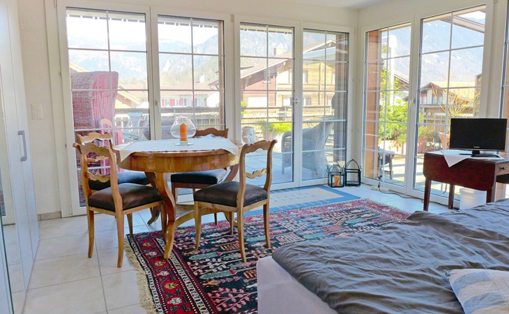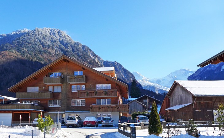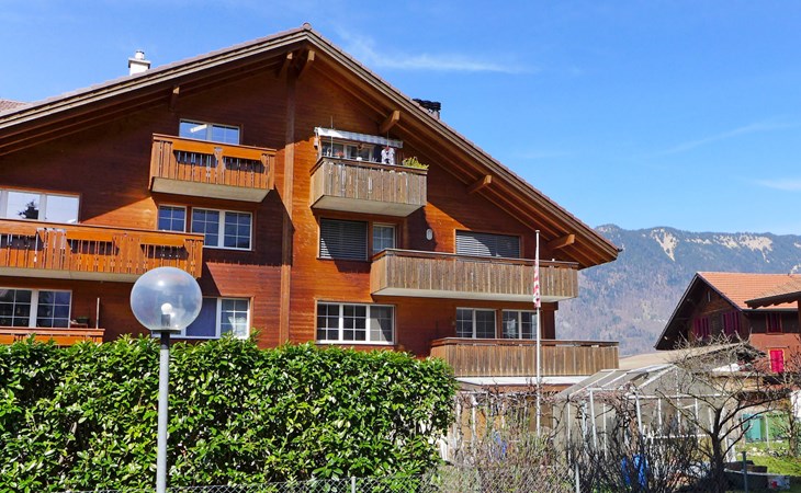 Wilderswil 4 km von Interlaken: Komfortables Mehrfamilienhaus. Im Ort, ruhige, sonnige Lage in einem Wohnquartier. Im Hause: Fahrstuhl, Skiraum, Zentralheizung. Wäschewechsel (zusätzlich extra). Handtuchwechsel (zusätzlich extra). Einkaufsgeschäft 200 m, Supermarkt, Restaurant 300 m, Bushaltestelle "Kirchgasse" 140 m, Bahnstation "Wilderswil" 350 m, Freibad 4 km, Hallenbad 4 km. Golfplatz (18 Loch) 6 km, Tennis 1 km, Minigolf 4 km, Reitstall 1 km, Wanderwege ab Haus, Radweg 200 m, Bergeisenbahn 300 m, Skisportanlagen 12 km, Eisfeld 2 km. Nahe gelegene Sehenswürdigkeiten: Jungfraujoch, Schilthorn Piz Gloria, Tell-Freilichspiele, Ballenberg Freilichtmuseum. Bekannte Skigebiete sind gut erreichbar: Wengen Kleine Scheidegg, Grindelwald First, Mürren Schilthorn. Bekannte Seen in der Umgebung sind gut erreichbar: Thunersee, Brienzersee. Wandergebiete: Jungfrau Region. Bitte beachten: Gratis Skibus.