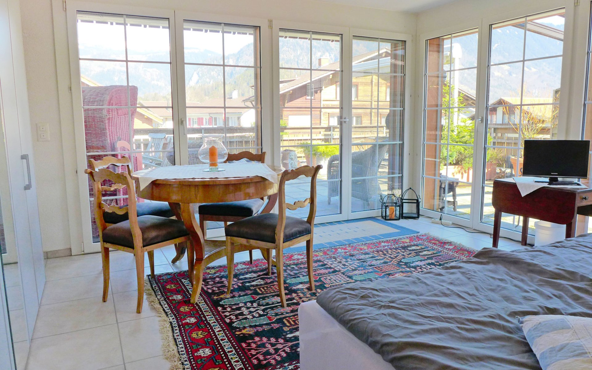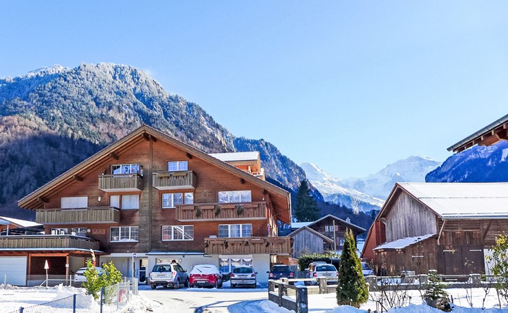 Wilderswil 4 km von Interlaken: Komfortables Mehrfamilienhaus. Im Ort, ruhige, sonnige Lage in einem Wohnquartier. Im Hause: Fahrstuhl, Skiraum, Zentralheizung. Wäschewechsel (zusätzlich extra). Handtuchwechsel (zusätzlich extra). Einkaufsgeschäft 200 m, Supermarkt, Restaurant 300 m, Bushaltestelle "Kirchgasse" 140 m, Bahnstation "Wilderswil" 350 m, Freibad 4 km, Hallenbad 4 km. Golfplatz (18 Loch) 6 km, Tennis 1 km, Minigolf 4 km, Reitstall 1 km, Wanderwege ab Haus, Radweg 200 m, Bergeisenbahn 300 m, Skisportanlagen 12 km, Eisfeld 2 km. Nahe gelegene Sehenswürdigkeiten: Jungfraujoch, Schilthorn Piz Gloria, Tell-Freilichspiele, Ballenberg Freilichtmuseum. Bekannte Skigebiete sind gut erreichbar: Wengen Kleine Scheidegg, Grindelwald First, Mürren Schilthorn. Bekannte Seen in der Umgebung sind gut erreichbar: Thunersee, Brienzersee. Wandergebiete: Jungfrau Region. Bitte beachten: Gratis Skibus.