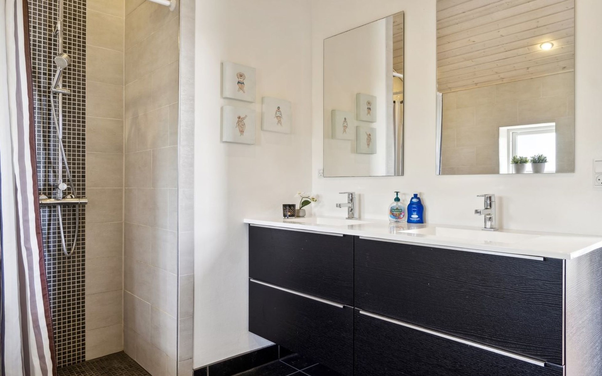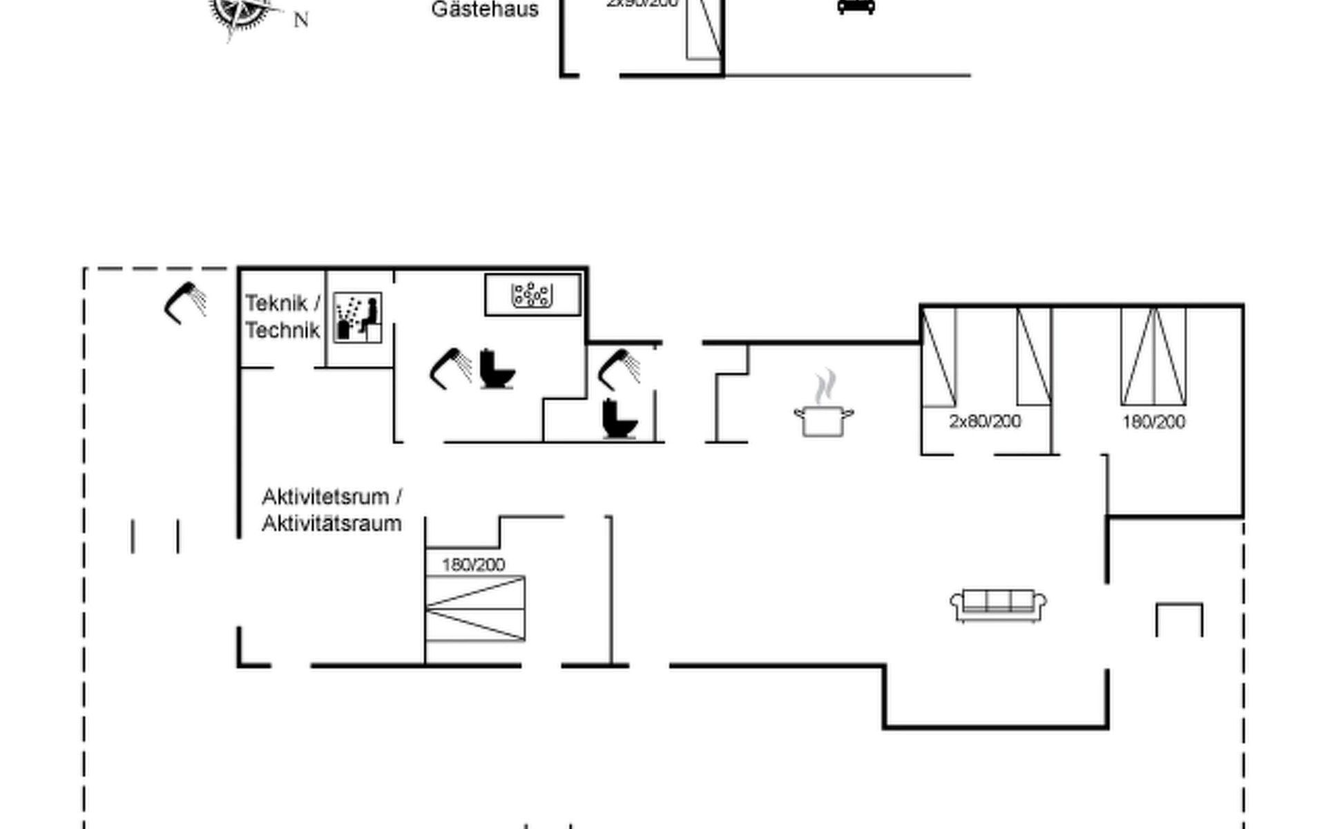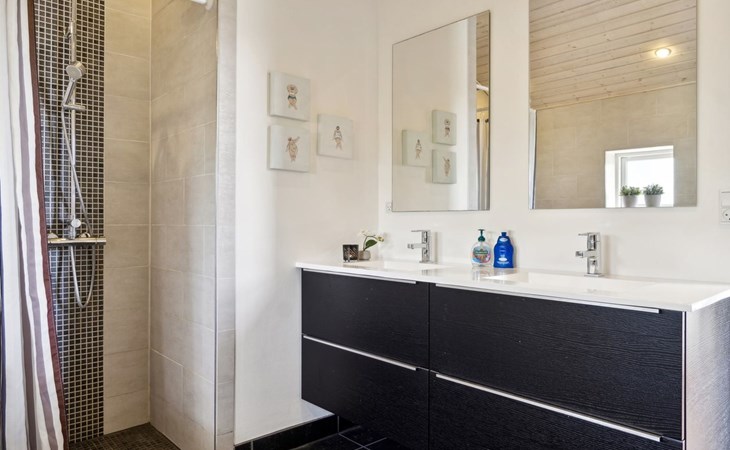 Einfamilienhaus, Baujahr 2013. 100 m vom Meer. Zur Alleinbenutzung: Grundstück 1'349 m2, gepflegter Garten. Aussendusche, Terrasse (130 m2), Grill, Kinderspielplatz (Schaukel). Im Hause: Sauna, Waschmaschine, Wäschetrockner. Parkplatz beim Haus. Carport. Lebensmittelgeschäft 1.3 km. Golfplatz 3.8 km. Der Besitzer akzeptiert keine Jugendgruppen.