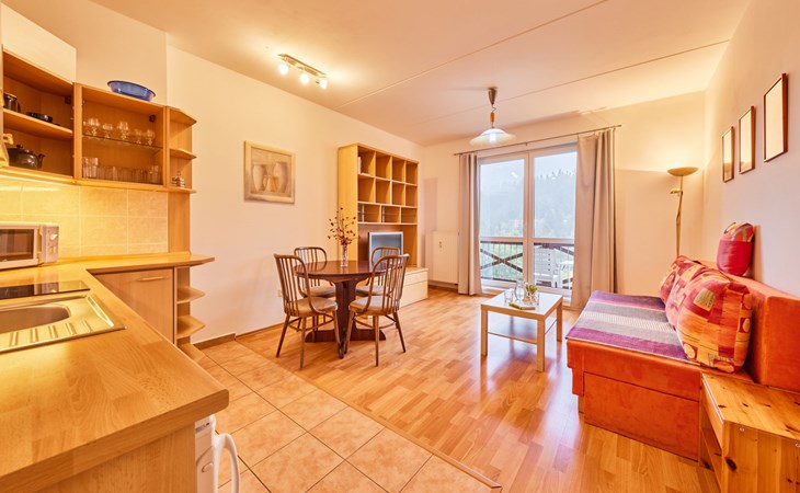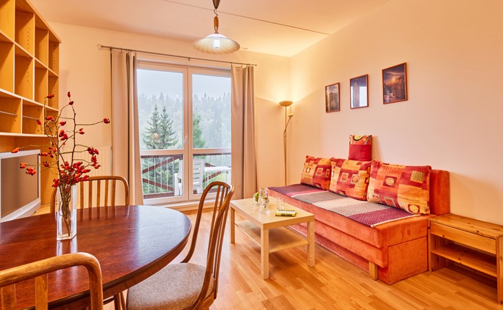 Freistehendes, komfortables Appartementhaus. Im Ort, 500 m vom Zentrum, sonnige Lage, 100 m vom Skigebiet. Im Hause: Skiraum, Zentralheizung. Wäschewechsel (zusätzlich extra). Handtuchwechsel (zusätzlich extra). Wohnungsreinigung möglich (extra). Parkplatz beim Haus, öffentliche Parkplätze extra. Lebensmittelgeschäft 300 m, Restaurant 50 m, Bushaltestelle "Janské Lázně - Lanovka" 300 m, Bahnstation "Svoboda nad Úpou" 3.8 km, Park "Farmapark Muchomůrka" 1 km, Freibad 7 km, Hallenbad 300 m. Golfplatz (18 Loch) 7.5 km, Tennis 1 km, Minigolf 4.5 km, Wanderwege ab Haus, Radweg 100 m, Sessellift 1 km, Gondelbahn, Skipisten, Skiverleih, Skischule, Kinderskischule, Schlittelbahn 100 m, Langlaufloipe 300 m. Nahe gelegene Sehenswürdigkeiten: Lanovka na Černou horu 100 m, Janské Lázně Spa, Stezka korunami stromů 700 m, bobová dráha 5 km, Pec pod Sněžkou, Relaxpark, bobová dráha 15 km, Vrchlabí 10 km, Trutnov 12 km, Malá Úpa 20 km, Zoo Dvůr Králové, Adršpach 35, Karpacz 40 km. Bekannte Skigebiete sind gut erreichbar: SkiResort ČERNÁ HORA - PEC, Mladé Buky 5 km, Horní Malá Úpa 16 km, Špindlerův Mlýn 30 km. Wandergebiete: krkonošské naučné stezky.
