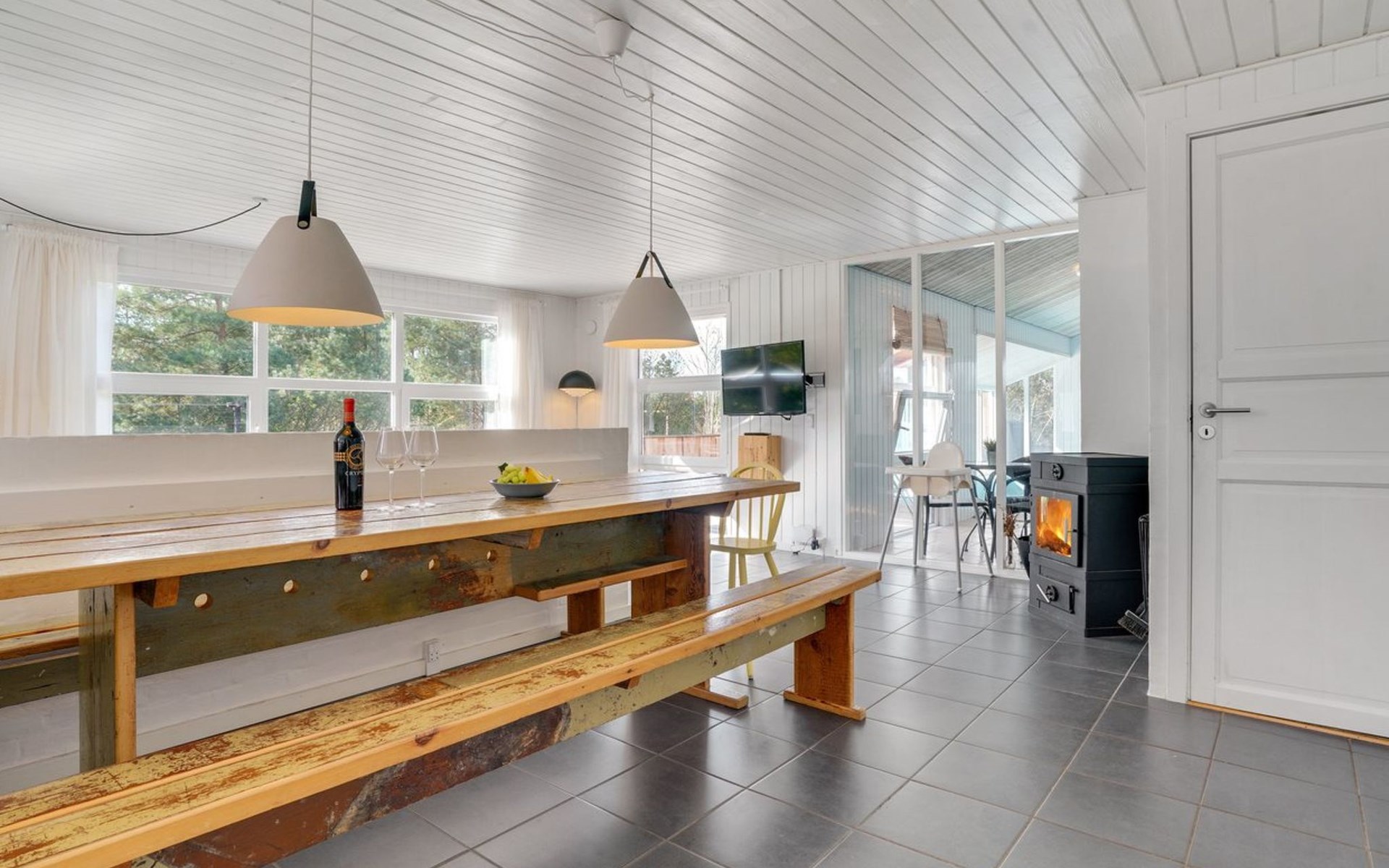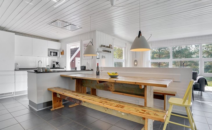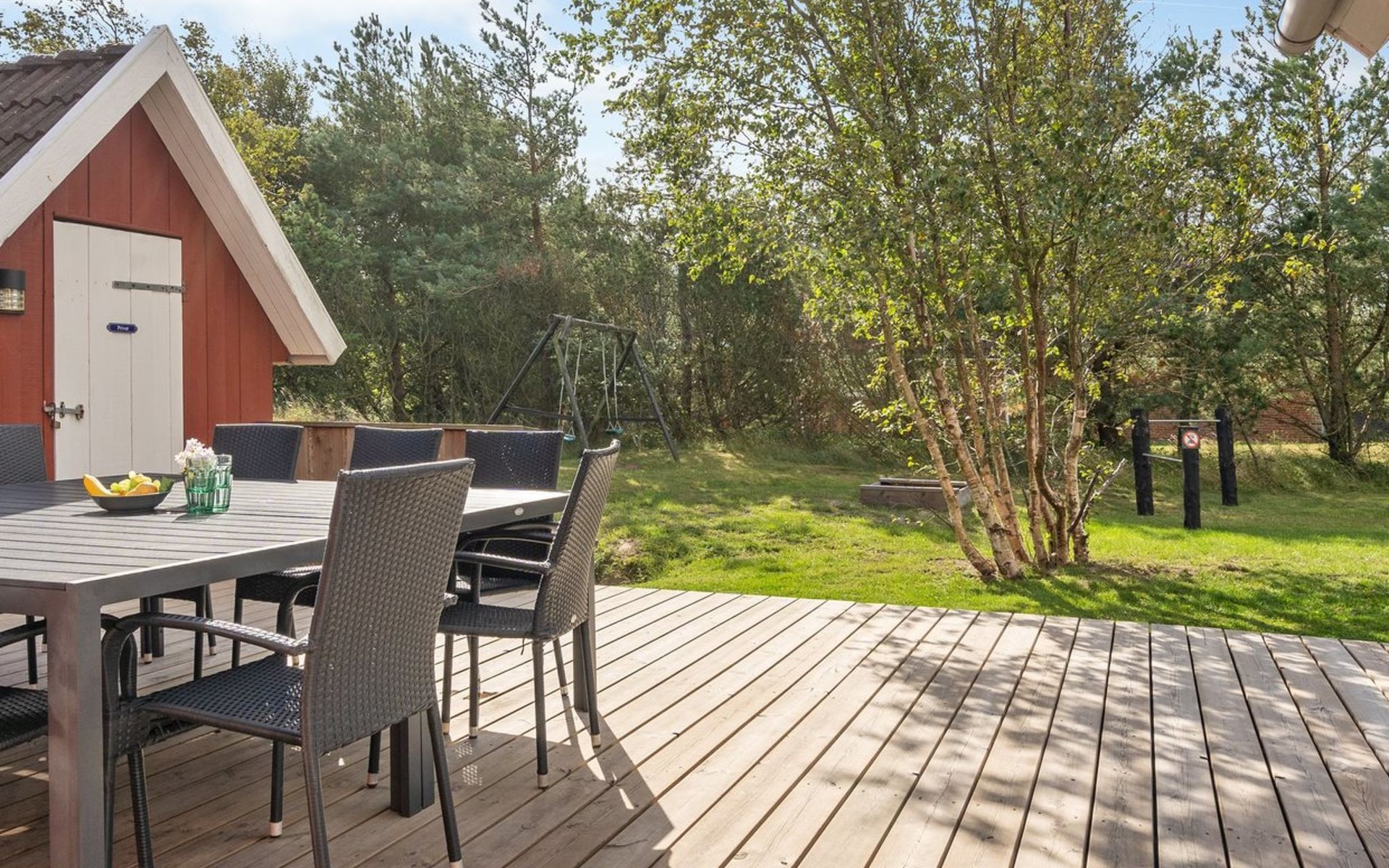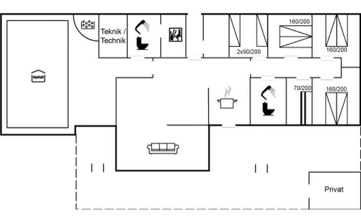 Einfamilienhaus, Baujahr 1989. 3 km vom Meer. Zur Alleinbenutzung: naturbelassenes Grundstück 1'500 m2, Hallenbad (3 x 6 m, 2'3.8 m2, 110 - 110 cm tief). Terrasse (88 m2), Grill, Kinderspielplatz (Schaukel). Im Hause: Sauna, Waschmaschine, Wäschetrockner. Parkplatz beim Haus. Lebensmittelgeschäft 2.9 km.