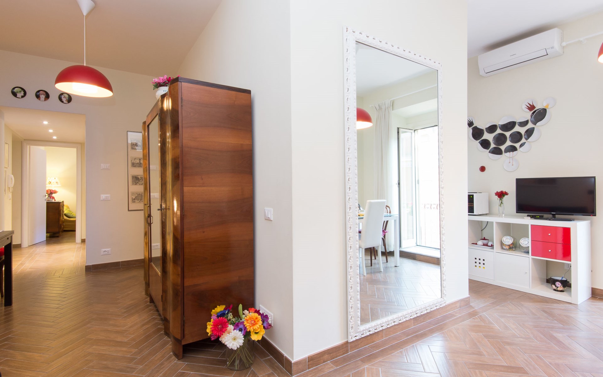 Historisches Appartementhaus "Regina's House - St Peter", auf 4 Stockwerken, Baujahr 1900. Im Ortsteil Vaticano - San Pietro, im Ortszentrum von Roma, zentrale, belebte Lage. Im Hause: Fahrstuhl. Wäschewechsel 1 mal wöchentlich. Handtuchwechsel 1 mal wöchentlich. Wohnungsreinigung 1 mal wöchentlich möglich (extra). Abholservice vom Flughafen (extra). Öffentliches Parkhaus in 50 m, extra. Lebensmittelgeschäft 50 m, Supermarkt 100 m, Einkaufszentrum 80 m, Restaurant 10 m, Bar, Bäckerei 50 m, Café 10 m, Bushaltestelle 20 m, U-Bahnstation "Ottaviano - San Pietro - A line" 200 m, Sandstrand "Fregene/Maccarese" 20 km, Park "Valle Aurelia" 1.7 km, See Bracciano 20 km. Nahe gelegene Sehenswürdigkeiten: Vatican Museum entrance 190 m, Trionfale Local Market (fresh groceries) 120 m. Es kann auf Anfrage ein Transfer ab Flughafen zum Ferienobjekt organisiert werden. Ankünfte werden nach 21:00 Uhr nicht akzeptiert.