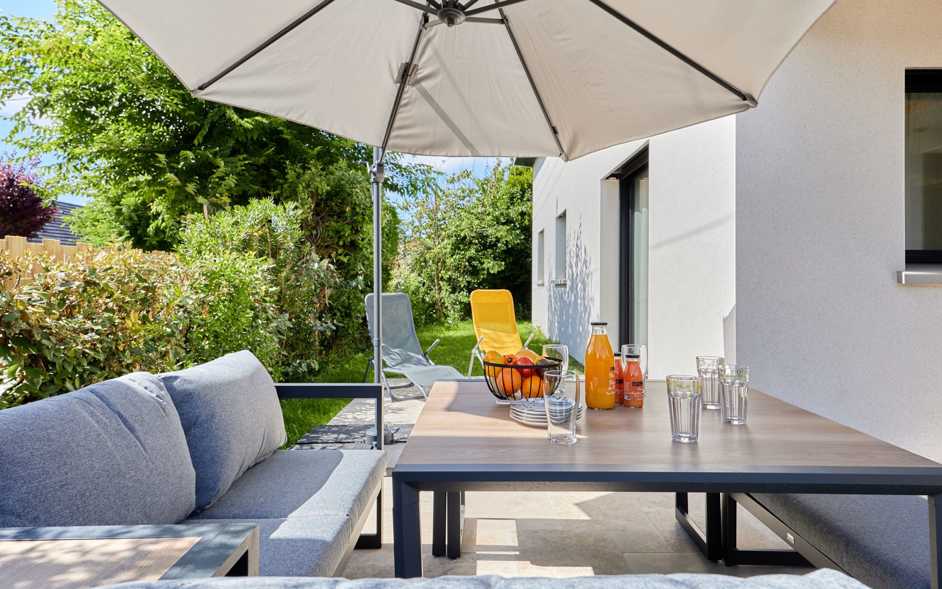 Modernes, komfortables Einfamilienhaus. Im Ort, 500 m vom Zentrum, 400 m vom Meer, vom Strand. Zur Alleinbenutzung: Grundstück 280 m2 (eingezäunt), Garten mit Rasen. Terrasse, Grill, Parkplatz (für 2 Autos). Supermarkt 1.5 km, Restaurant, Bäckerei 300 m, Café, Sandstrand 400 m. Golfplatz (18 Loch) 3 km, Segelschule 400 m, Tennis 500 m. Nahe gelegene Sehenswürdigkeiten: Coutances 12 km, Granville 45 km, Cherbourg 80 km, Le Mont saint michel 85 km.