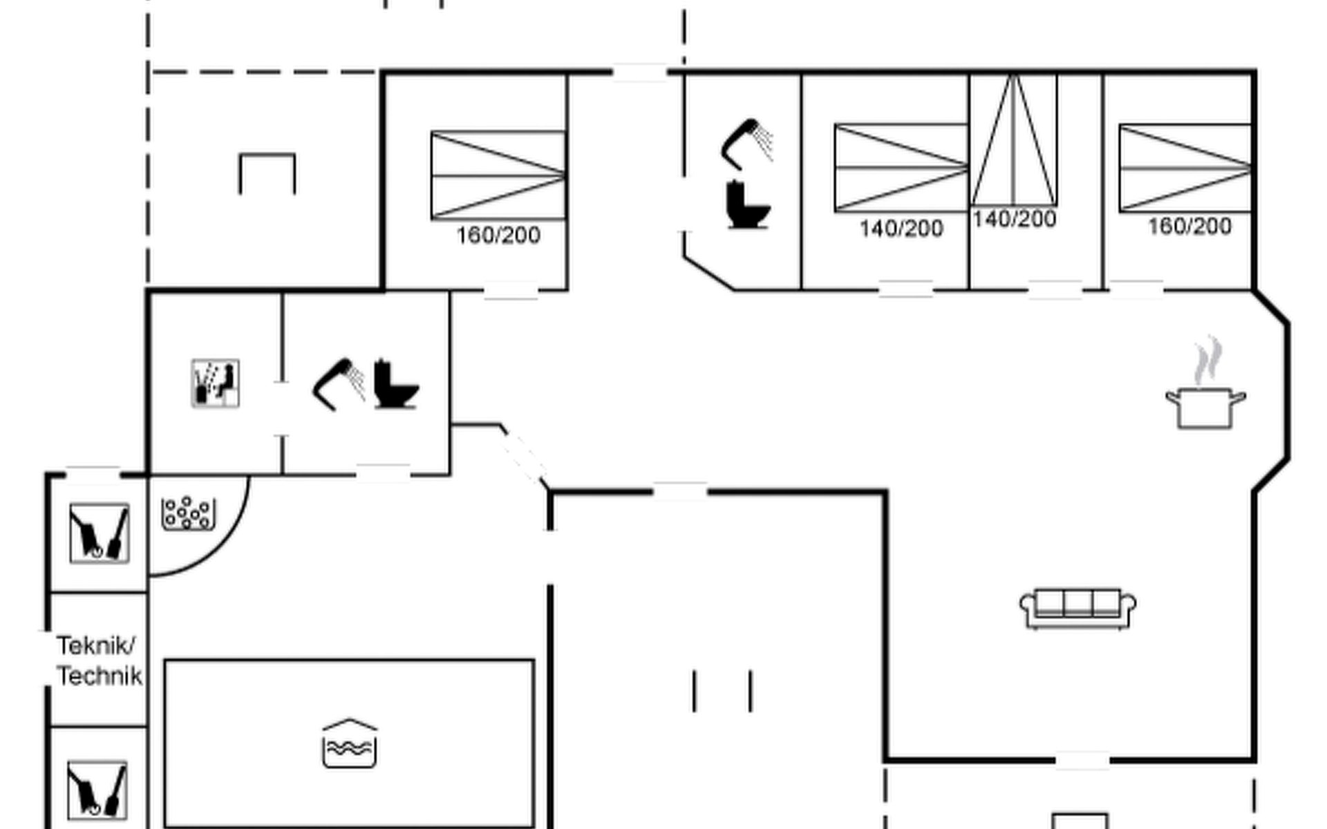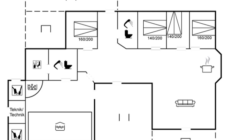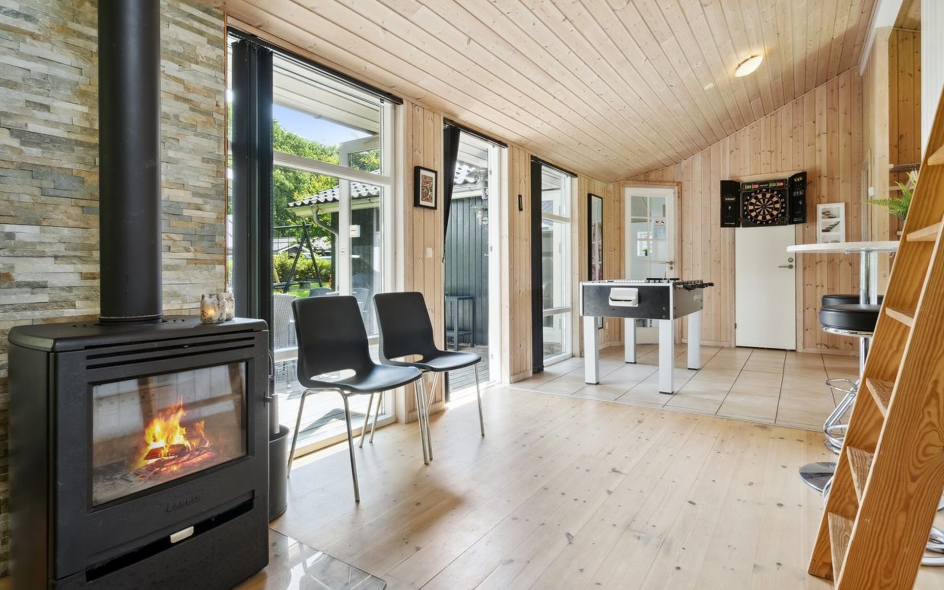 Einfamilienhaus, Baujahr 2006. 150 m vom Meer. Zur Alleinbenutzung: naturbelassenes Grundstück 2'000 m2, Hallenbad (3 x 5 m, 1'6.5 m2, 140 - 140 cm tief). Aussendusche, Grill, Kinderspielplatz (Schaukel). Im Hause: Sauna, Tischfussball, Trampolin, Waschmaschine, Wäschetrockner. Parkplatz beim Haus. E-Ladestation. Lebensmittelgeschäft 3 km. Golfplatz 5 km. Der Besitzer akzeptiert keine Jugendgruppen.