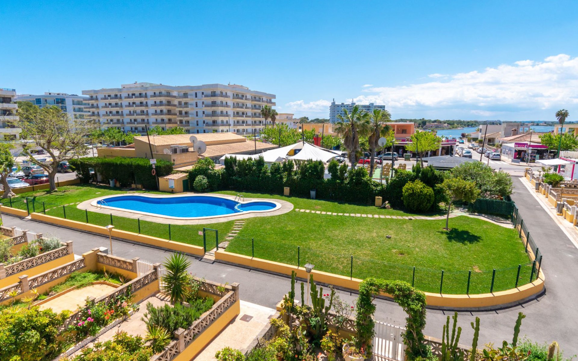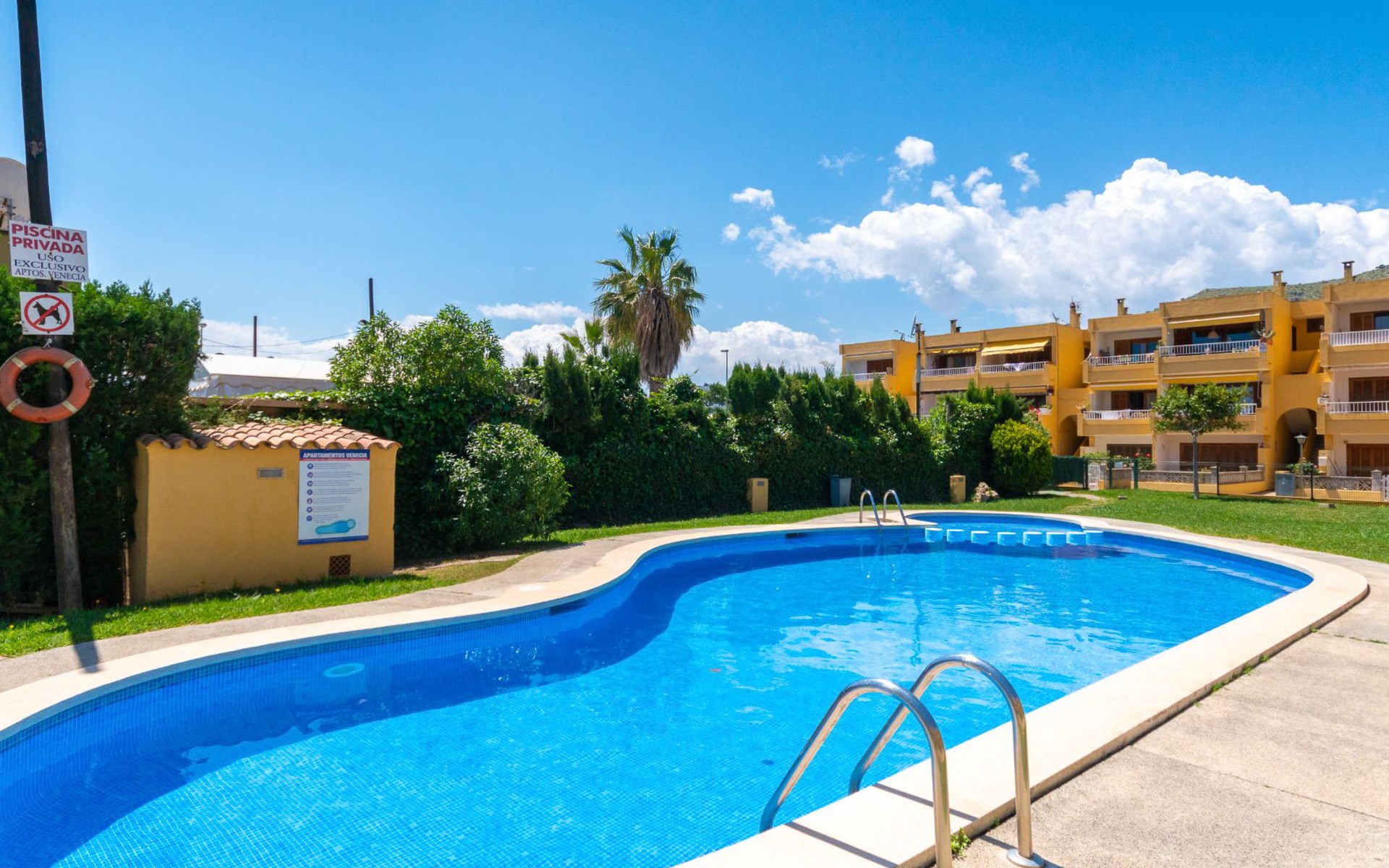 Puerto de Alcudia 3 km von Alcudia: Schönes, komfortables Appartementhaus "Venecia Lake". Im Ort, 1 km vom Zentrum von Puerto de Alcudia, zentrale, belebte, sonnige Lage, 1 km vom Waldrand, 800 m vom Meer, 100 m vom See, 800 m vom Strand, Richtung Süden. Zur Mitbenutzung: kleiner Garten mit Rasen und Pflanzen, Schwimmbad eckig (5 x 10 m, saisonale Verfügbarkeit: 01.Mai. - 31.Okt. Öffnungszeiten Schwimmbad: 09:00-21:00). Kinderbecken, Aussendusche, Poolpflege durch den Besitzer/Gärtner. Im Hause: Internetzugang, Wireless LAN, Alarmanlage. Einkaufsgeschäft 50 m, Lebensmittelgeschäft 20 m, Supermarkt, Einkaufszentrum 30 m, Restaurant 20 m, Bar 15 m, Fahrradverleih 500 m, Biergarten 10 m, Zentrum zu Fuss in 15 Minuten erreichbar, Bushaltestelle "Ciudad Blanca" 300 m, Bahnstation "Sa Pobla" 10 km, Fähre "Puerto de Alcudia" 5 km, Sandstrand "Playa de Alcudia" 800 m, Steinstrand "Alcanada" 3 km, Felsstrand "Bonaire" 6 km, Tauchzentrum 8 km. Sporthafen 2 km, Jacht-Hafen 2 km, Golfplatz (18 Loch) 4 km, Surfschule 1 km, Segelschule 1 km, Tennis 700 m, Minigolf 700 m, Reitstall 800 m, Sportzentrum 2 km, Wanderwege ab Haus 1 km, Radweg 1 km. Nahe gelegene Sehenswürdigkeiten: La Victoria 6 km, Albufera 5 km, Formentor 20 km, Cuevas Campanet 20 km. Bitte beachten: geeignet für Familien. Objekt geeignet für 4 Erwachsene. Der Besitzer akzeptiert keine Gruppen. Der Besitzer akzeptiert keine Jugendgruppen. 60 km vom Haus. Die Nachbarschaft ist sehr lärmempfindlich. Ruhe und gutes Benehmen wird erwartet.