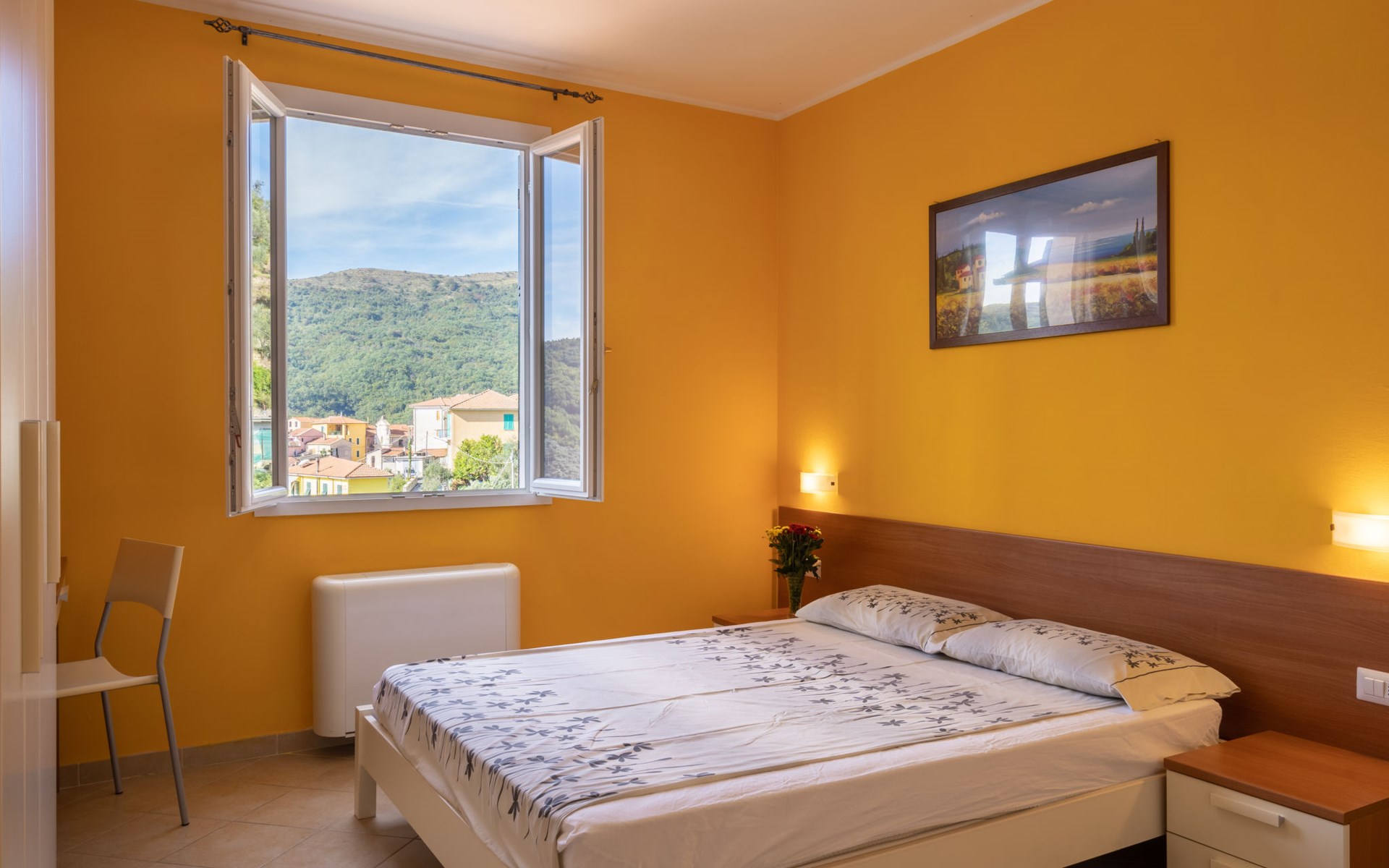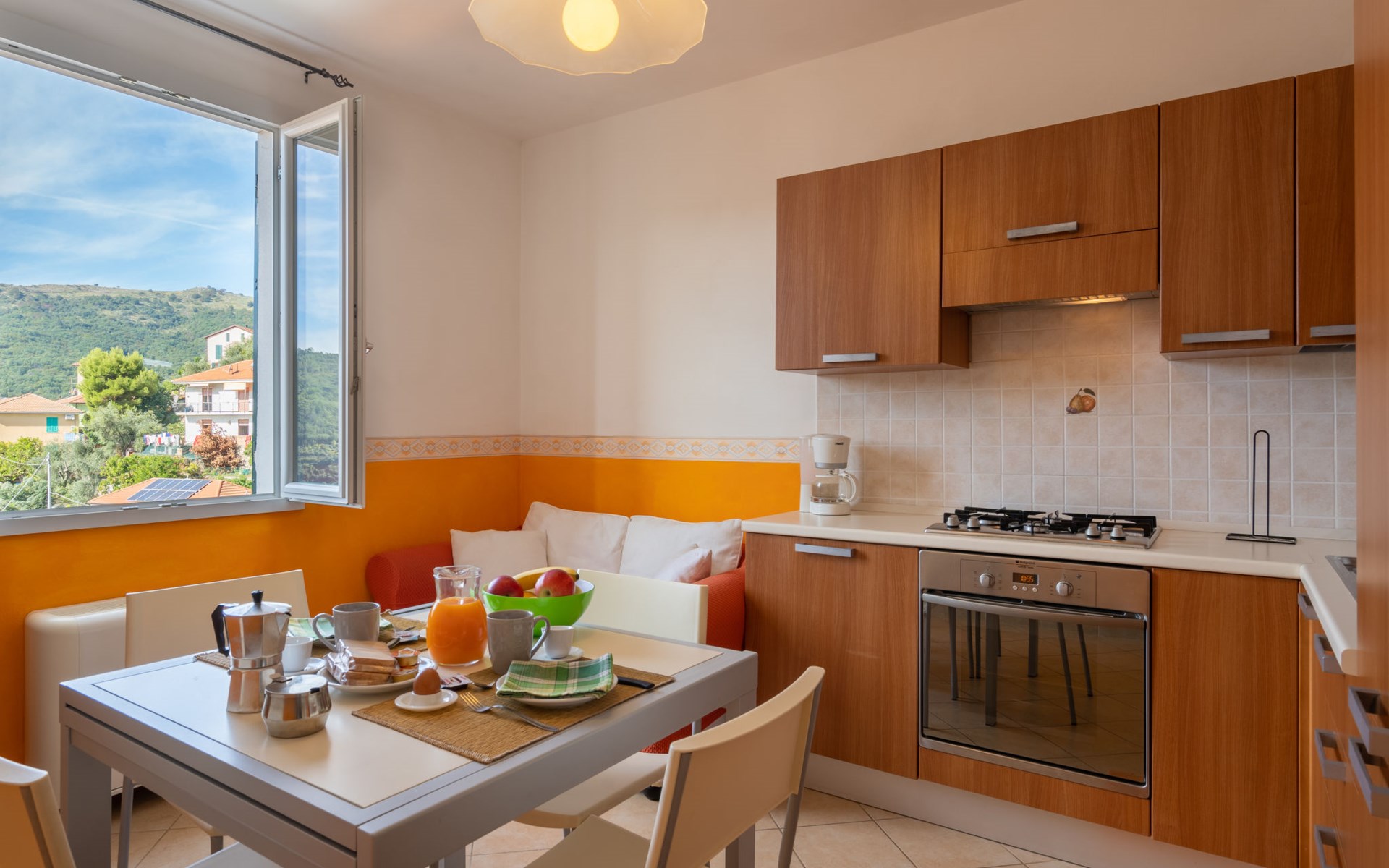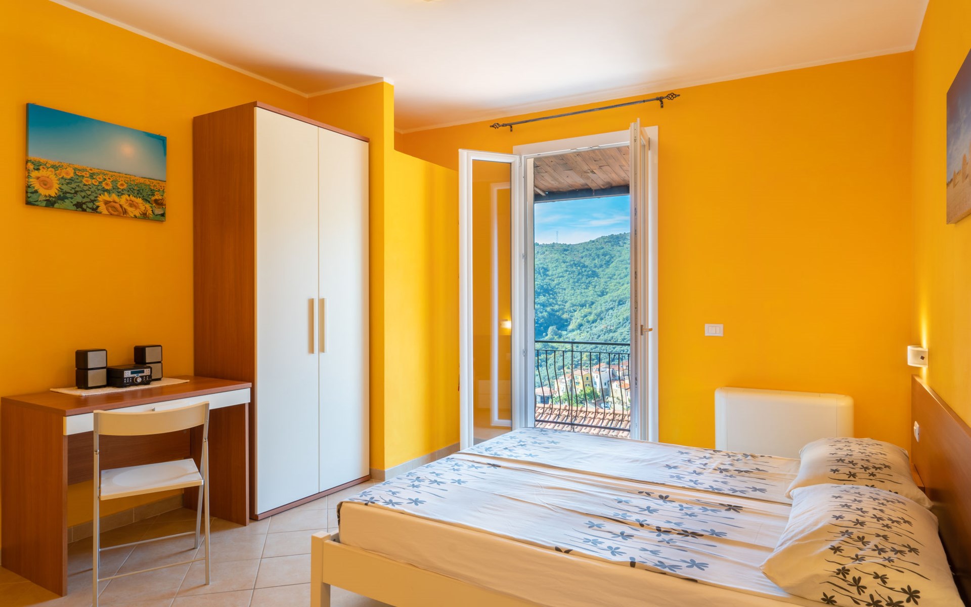 Kinderfreundliche, schöne Residenz "Agriturismo Ca' di Nonni", 400 m.ü.M., auf 2 Stockwerken, umgeben von Bäumen und Weinbergen. 4 Wohnungen in der Residenz. 100 m vom Zentrum von Pietrabruna, am Ortsrand, 10 km vom Zentrum von San Lorenzo al Mare, 16 km vom Zentrum von Imperia, erhöhte Lage am Hang, 9.5 km vom Meer, im Grünen. Zur Mitbenutzung: schöner, gepflegter terrassierter Garten, 1'000 m2 mit Rasen und Pflanzen, Liegewiese, Schwimmbad (10 x 5 m, 120 cm tief, saisonale Verfügbarkeit: 01.Mai. - 01.Okt.). Aussendusche, Tischtennis, Sitzplatz, Laube, Gartenmöbel, Grill, Kinderspielplatz (Rutschbahn, Schaukel), Poolpflege durch den Besitzer/Gärtner. In der Anlage: Aufenthaltsraum mit TV, Fitnessraum, Tischfussball, Einstellraum für Fahrräder, Sonnenterrasse, Waschmaschine, Wäschetrockner (zur Mitbenutzung), Fahrradverleih. 20 m lange steile, schmale Zufahrt. Treppenweg bis zum Haus. Öffentliche Parkplätze 50 m auf der Strasse. Einkaufsgeschäft 200 m, Lebensmittelgeschäft 200 m, Supermarkt 10 km, Einkaufszentrum 10 km, Restaurant, Bar 300 m, Bäckerei 300 m, Café 200 m, Bushaltestelle 150 m, Sandstrand "San Lorenzo al Mare" 10 km, Steinstrand 10 km, Badesee "Laghetti Torre Paponi" 5 km. Nahe gelegene Sehenswürdigkeiten: Pista ciclabile lungo mare 10 km, Museo dell´olio Imperia 18 km, Lavendeldestilation in Pietrabruna. Wandergebiete: Monte Faudo (1149 m) Mountainbike Trails 5 km, Monte Follia 2 km. Jugendgruppen nur auf Anfrage. Bitte beachten: Be- und Entladen am Ferienhaus möglich.