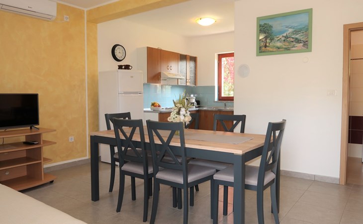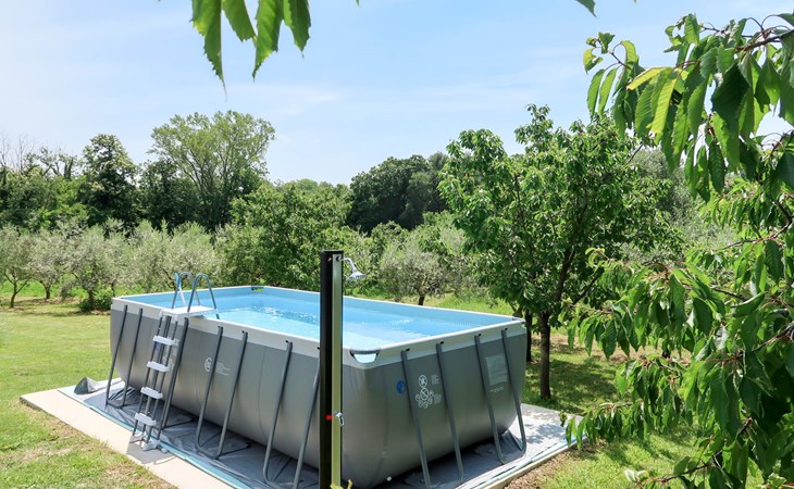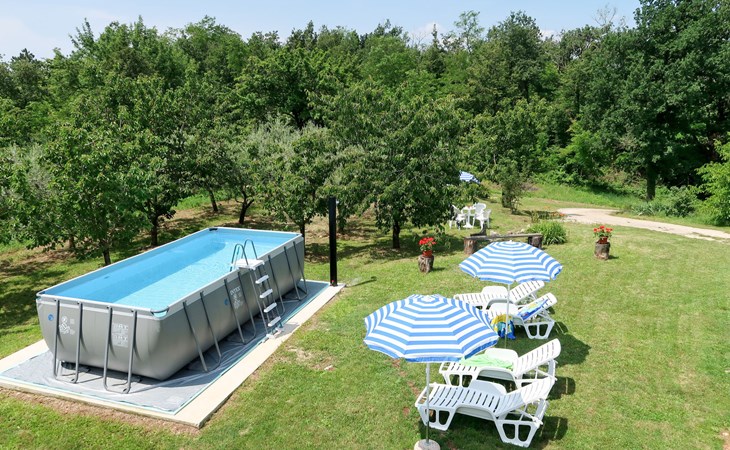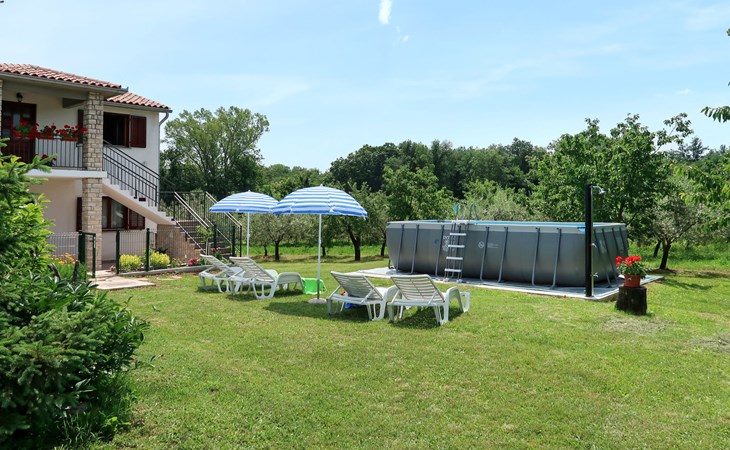 Einfamilienhaus "Fortica". Im Weiler Županići, 6 km vom Zentrum von Labin, 12 km vom Zentrum von Rabac, 12 km vom Meer. Zur Alleinbenutzung: Grundstück 5'000 m2 mit Bäumen, Wiese, Aufstellpool (5 x 2 m, 16 m2, 130 cm tief, saisonale Verfügbarkeit: 18.Mai. - 08.Okt.). Aussendusche, Gartenmöbel. Im Hause: Internetzugang. Zufahrt bis zum Haus (800 m Naturweg). Parkplatz (für 2 Autos) auf dem Grundstück. Einkaufsgeschäft 1 km, Supermarkt 6 km, Bushaltestelle 6 km, Kieselstrand 12 km. Bitte beachten: Ein Teil des Hauses ist geschlossen und nicht bewohnt. Tiere in der Umgebung.