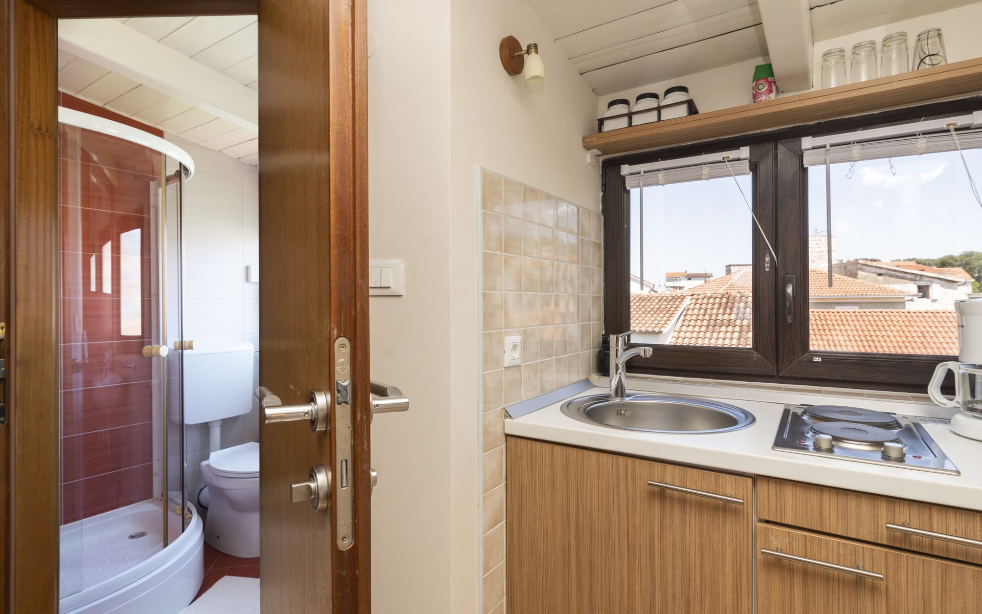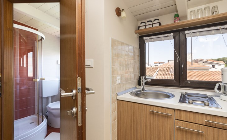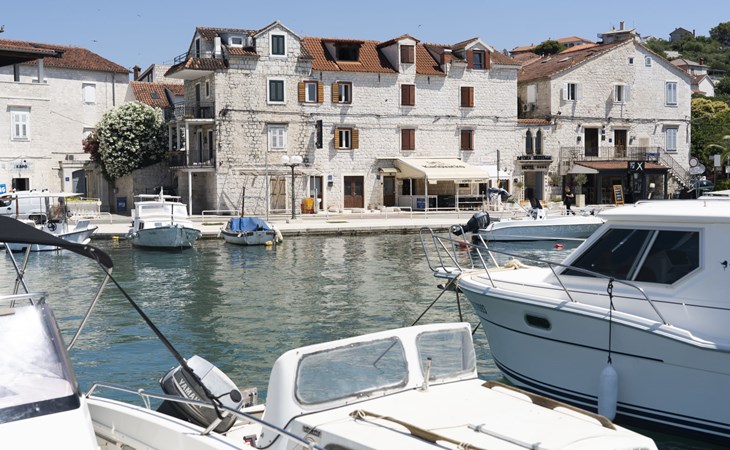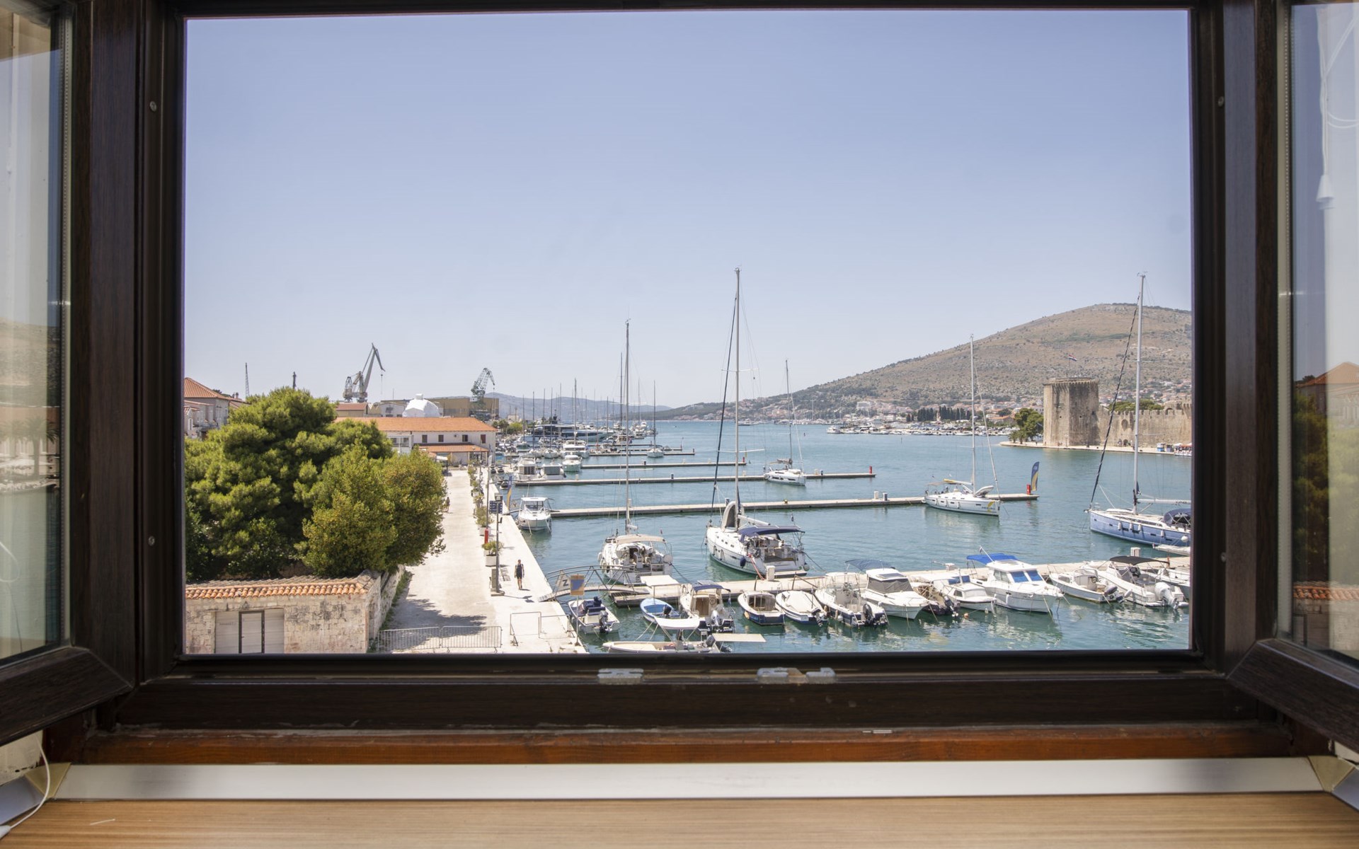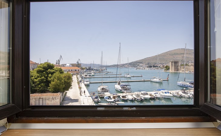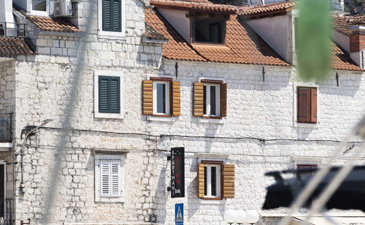 Dreifamilienhaus "Lučica". Im Ortszentrum von Trogir, sonnige Lage, 20 m vom Meer, 350 m vom Strand, an einer Strasse. Im Hause: Internetzugang. Parkplatz in 400 m öffentliche Parkplätze extra. Einkaufsgeschäft 100 m, Supermarkt 500 m, Restaurant 50 m, Bushaltestelle 400 m, Kieselstrand 350 m.