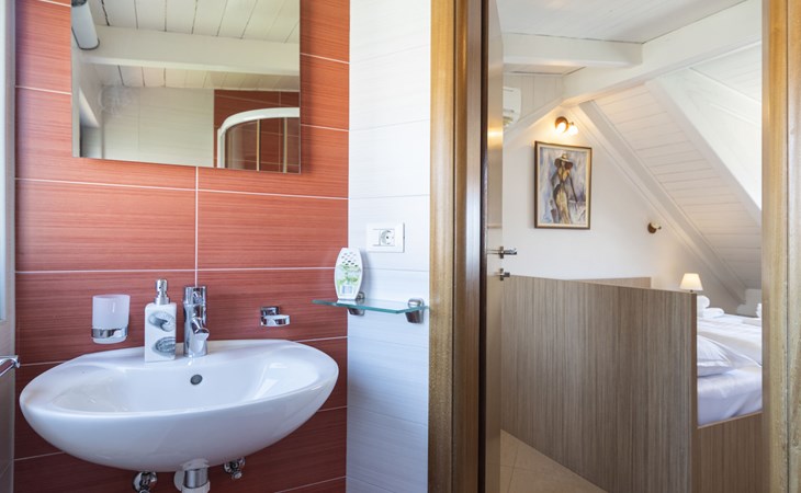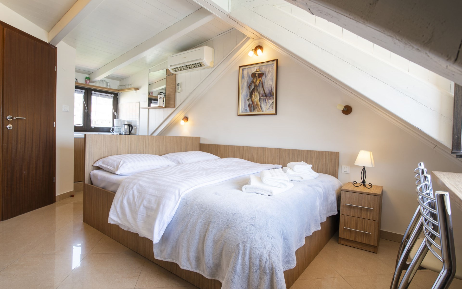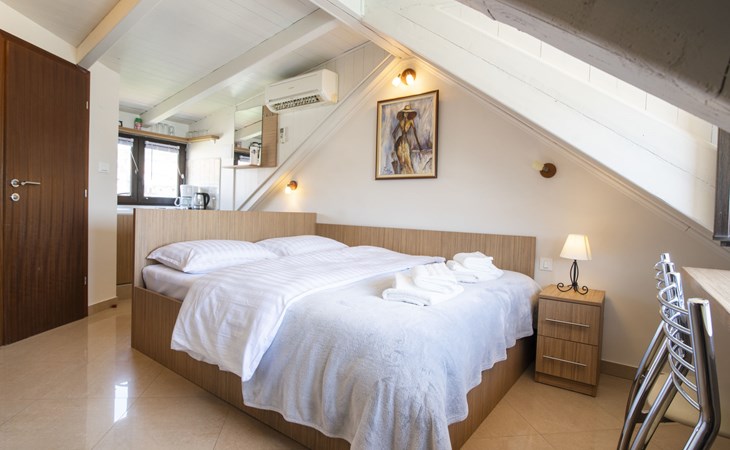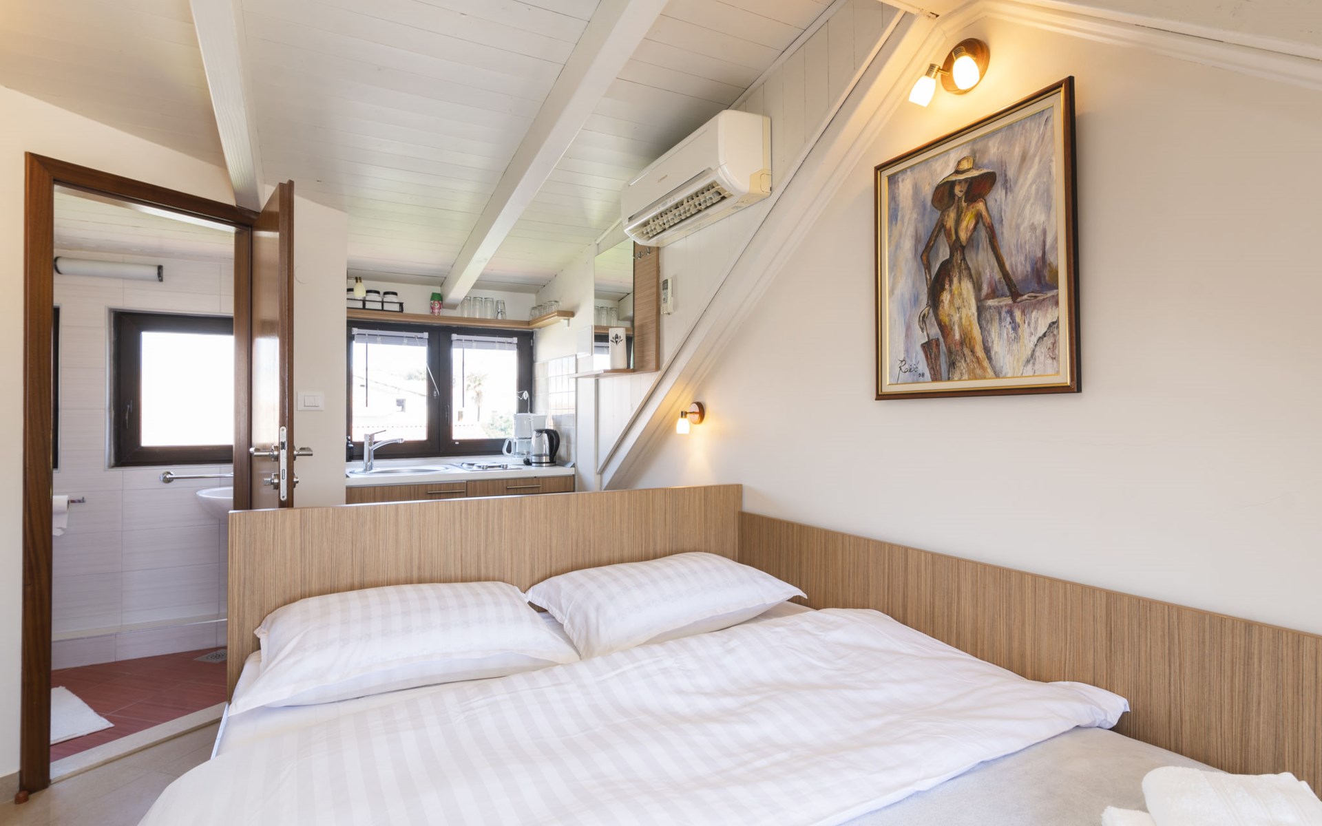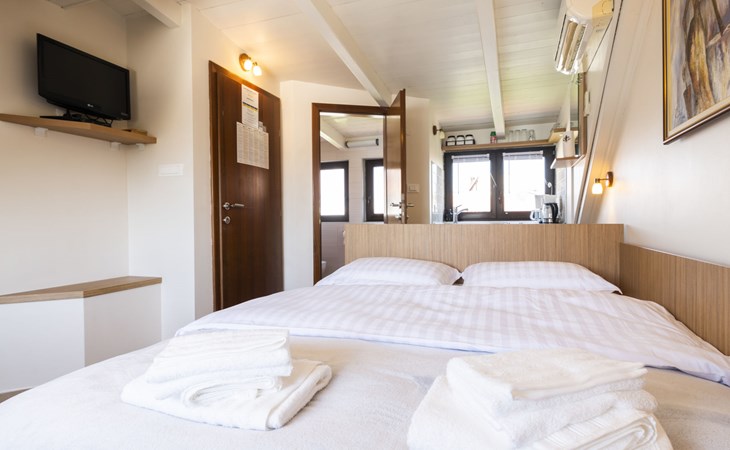 Dreifamilienhaus "Lučica". Im Ortszentrum von Trogir, sonnige Lage, 20 m vom Meer, 350 m vom Strand, an einer Strasse. Im Hause: Internetzugang. Parkplatz in 400 m öffentliche Parkplätze extra. Einkaufsgeschäft 100 m, Supermarkt 500 m, Restaurant 50 m, Bushaltestelle 400 m, Kieselstrand 350 m.
