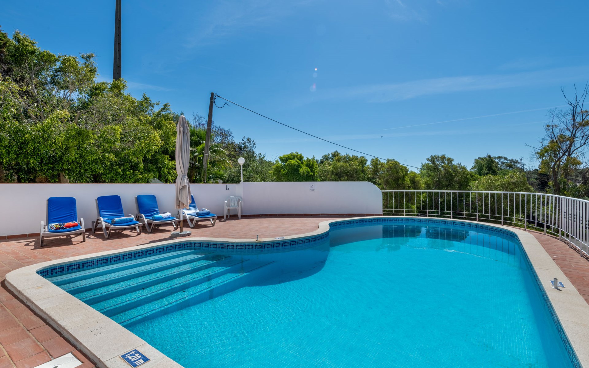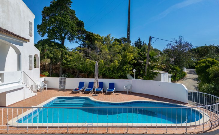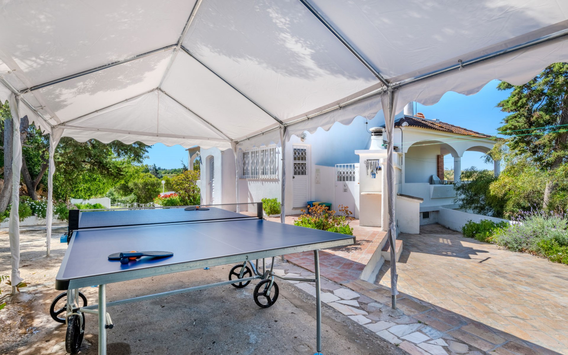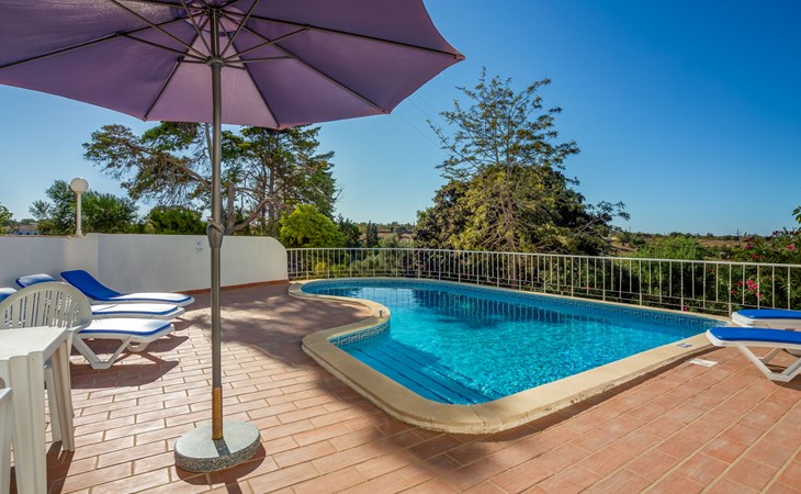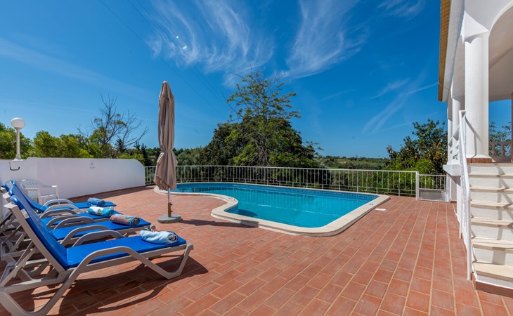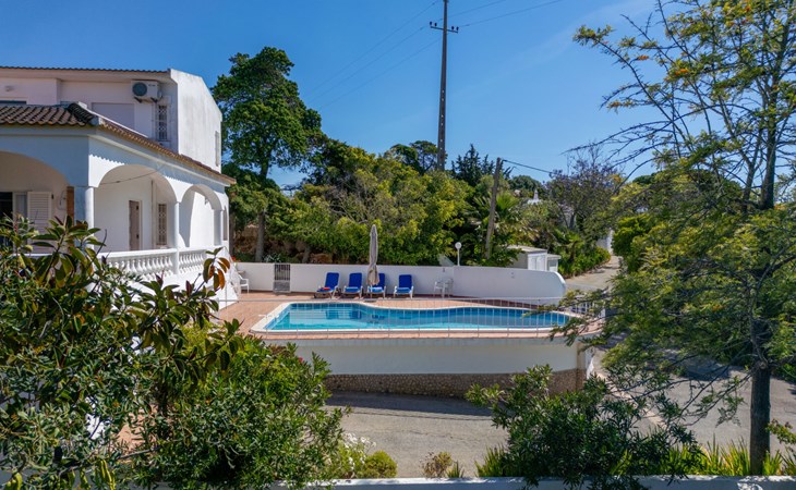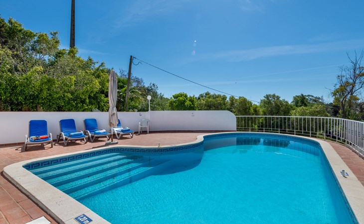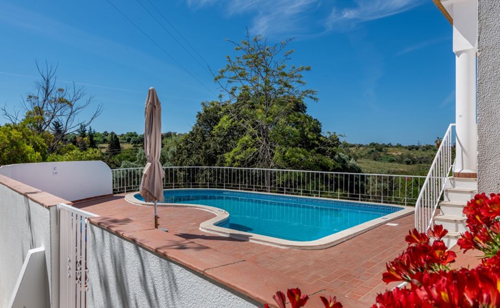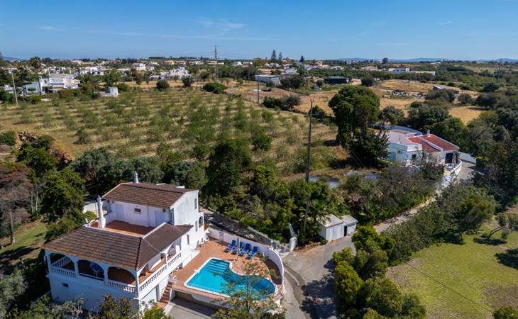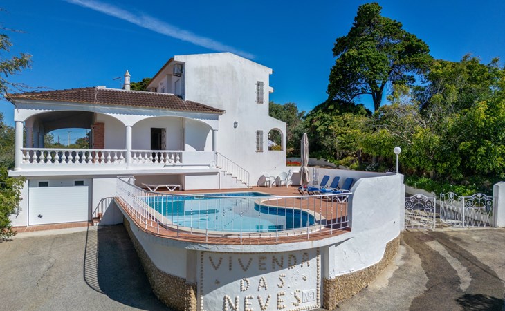 Schönes, rustikales Haus "Neves I", umgeben von Bäumen und Wiesen. 4 km vom Zentrum von Albufeira, 3 km vom Meer. Zur Mitbenutzung: Tennis. Zur Alleinbenutzung: Grundstück 500 m2 (eingezäunt) mit Bäumen, Wiese, Schwimmbad beheizt (37 m2, 70 - 200 cm tief, saisonale Verfügbarkeit: 01.Jan. - 31.Dez.) mit Innentreppe. Ungleichmässige Schwimmbadform, Tischtennis. Im Hause: Sonnenterrasse, Dachterrasse, Alarmanlage. Parkplatz auf dem Grundstück. Einkaufsgeschäft 2 km, Restaurant 1.5 km, Bushaltestelle 1.5 km, Sandstrand 4 km, Freibad 10 km. Jacht-Hafen 4.5 km.
