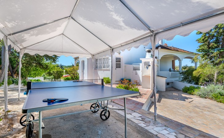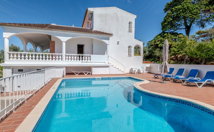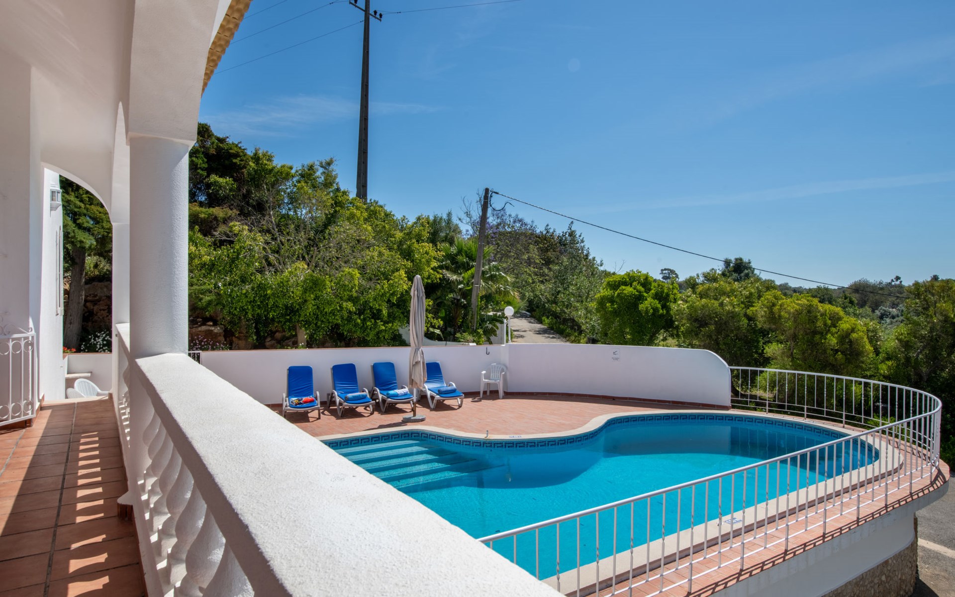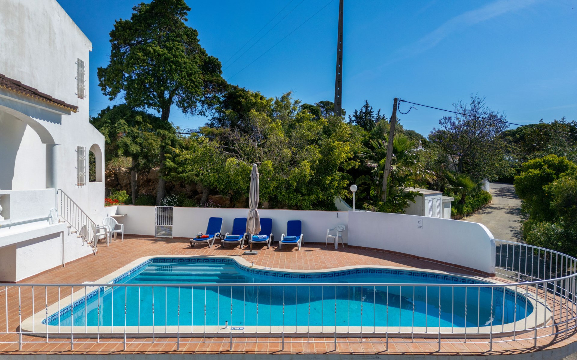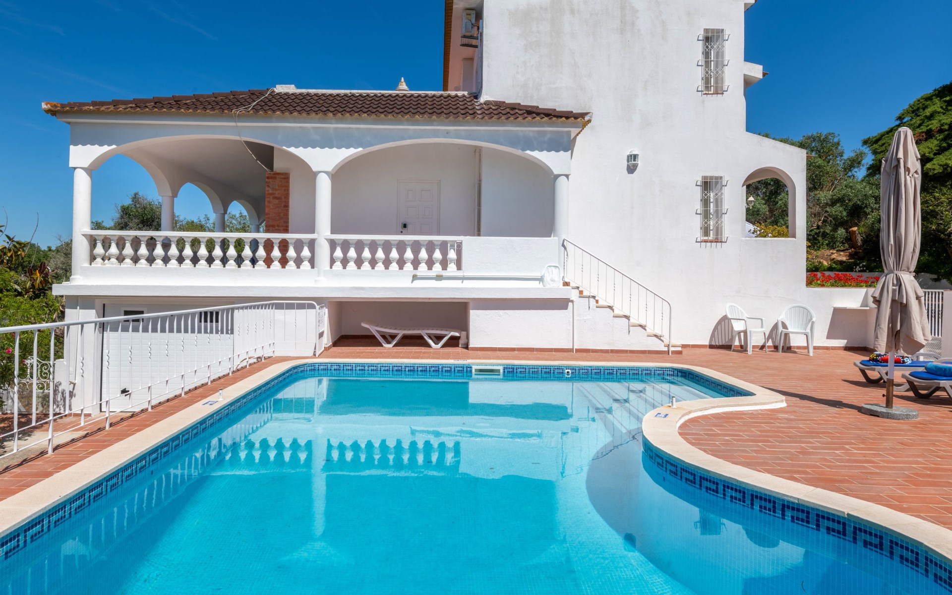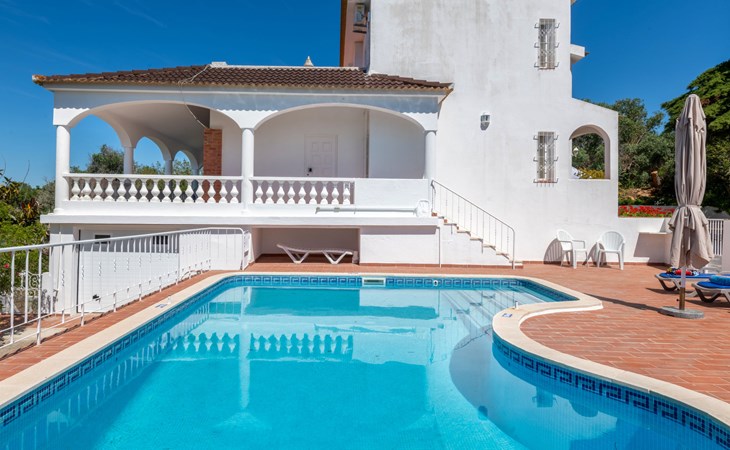 Schönes, rustikales Haus "Neves I", umgeben von Bäumen und Wiesen. 4 km vom Zentrum von Albufeira, 3 km vom Meer. Zur Mitbenutzung: Tennis. Zur Alleinbenutzung: Grundstück 500 m2 (eingezäunt) mit Bäumen, Wiese, Schwimmbad beheizt (37 m2, 70 - 200 cm tief, saisonale Verfügbarkeit: 01.Jan. - 31.Dez.) mit Innentreppe. Ungleichmässige Schwimmbadform, Tischtennis. Im Hause: Sonnenterrasse, Dachterrasse, Alarmanlage. Parkplatz auf dem Grundstück. Einkaufsgeschäft 2 km, Restaurant 1.5 km, Bushaltestelle 1.5 km, Sandstrand 4 km, Freibad 10 km. Jacht-Hafen 4.5 km.