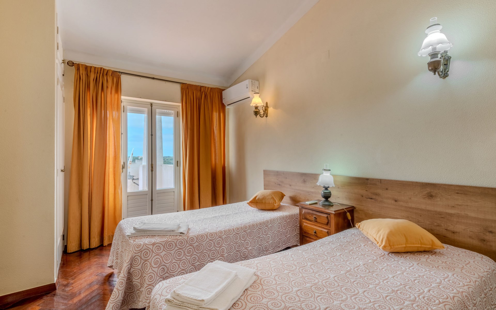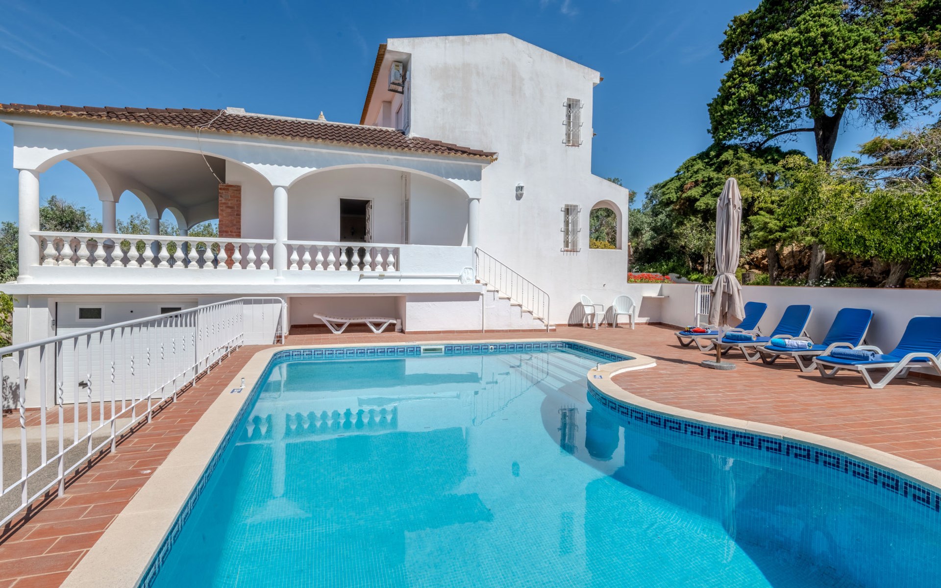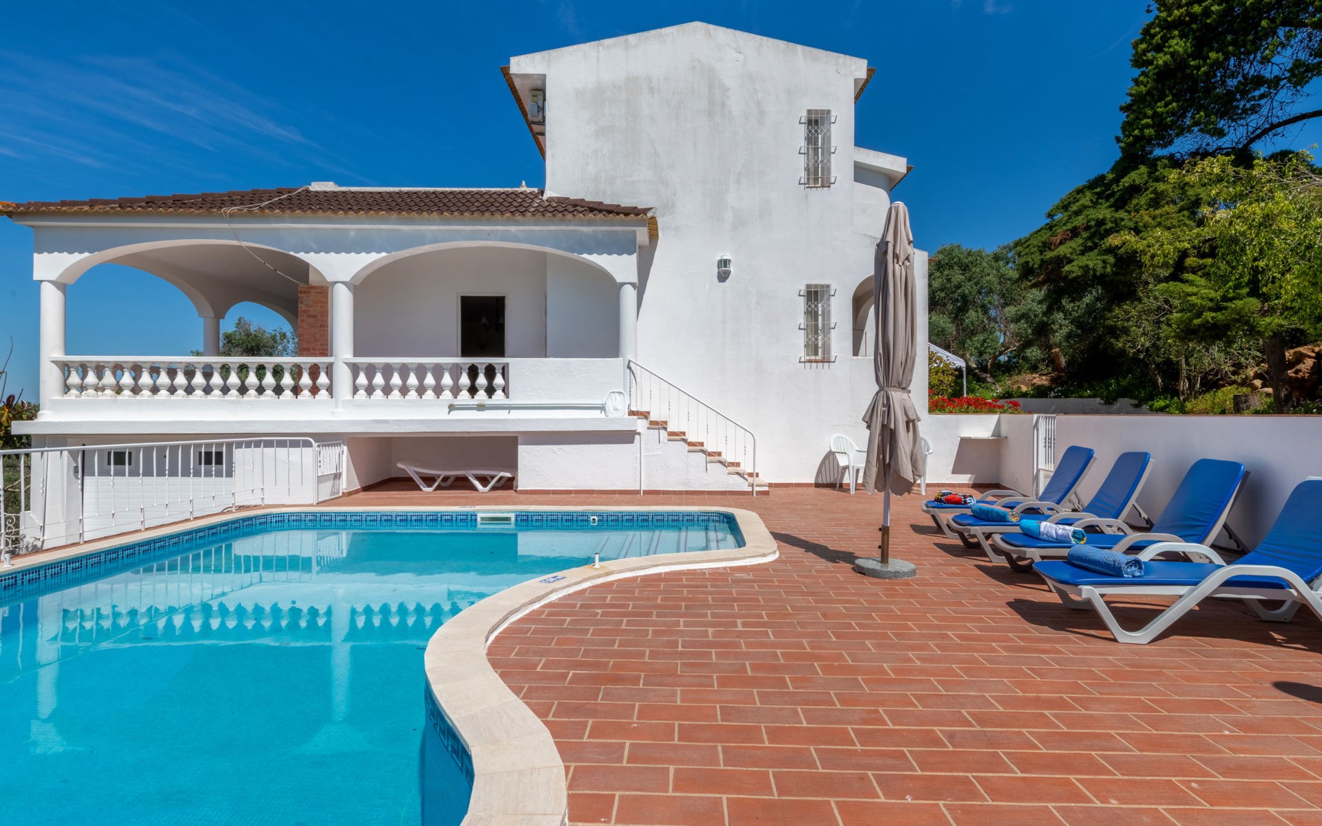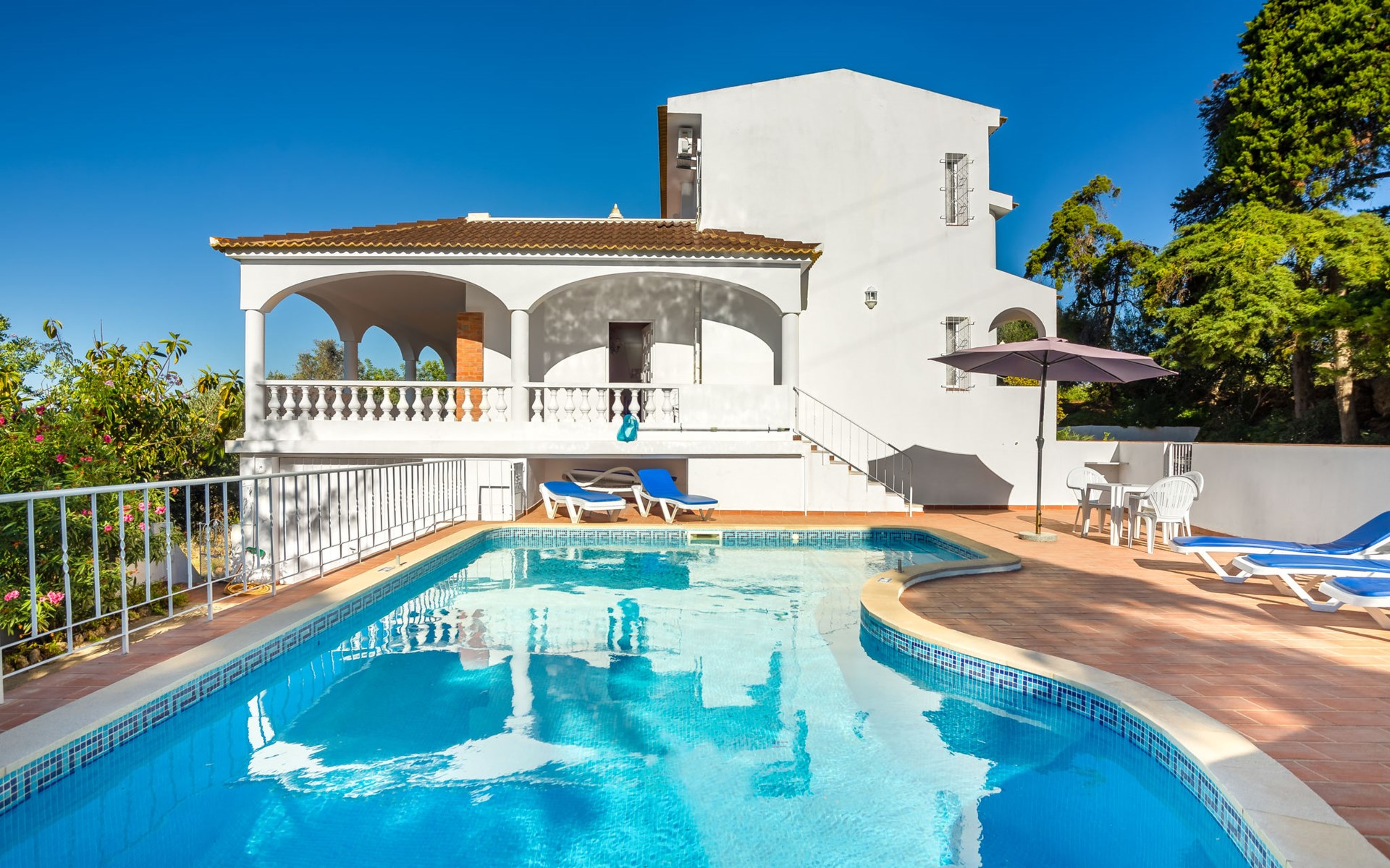 Schönes, rustikales Haus "Neves I", umgeben von Bäumen und Wiesen. 4 km vom Zentrum von Albufeira, 3 km vom Meer. Zur Mitbenutzung: Tennis. Zur Alleinbenutzung: Grundstück 500 m2 (eingezäunt) mit Bäumen, Wiese, Schwimmbad beheizt (37 m2, 70 - 200 cm tief, saisonale Verfügbarkeit: 01.Jan. - 31.Dez.) mit Innentreppe. Ungleichmässige Schwimmbadform, Tischtennis. Im Hause: Sonnenterrasse, Dachterrasse, Alarmanlage. Parkplatz auf dem Grundstück. Einkaufsgeschäft 2 km, Restaurant 1.5 km, Bushaltestelle 1.5 km, Sandstrand 4 km, Freibad 10 km. Jacht-Hafen 4.5 km.