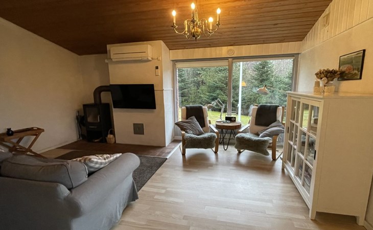 Einfamilienhaus, Baujahr 1972. Zur Alleinbenutzung: naturbelassenes Grundstück 2'025 m2. Terrasse (30 m2). Im Hause: Waschmaschine. Parkplatz beim Haus. Lebensmittelgeschäft 1.5 km.