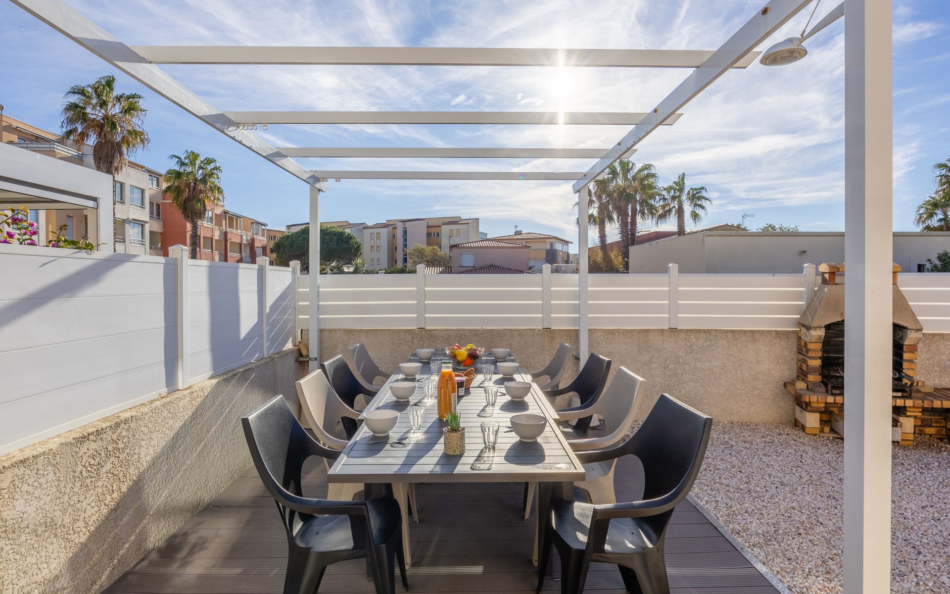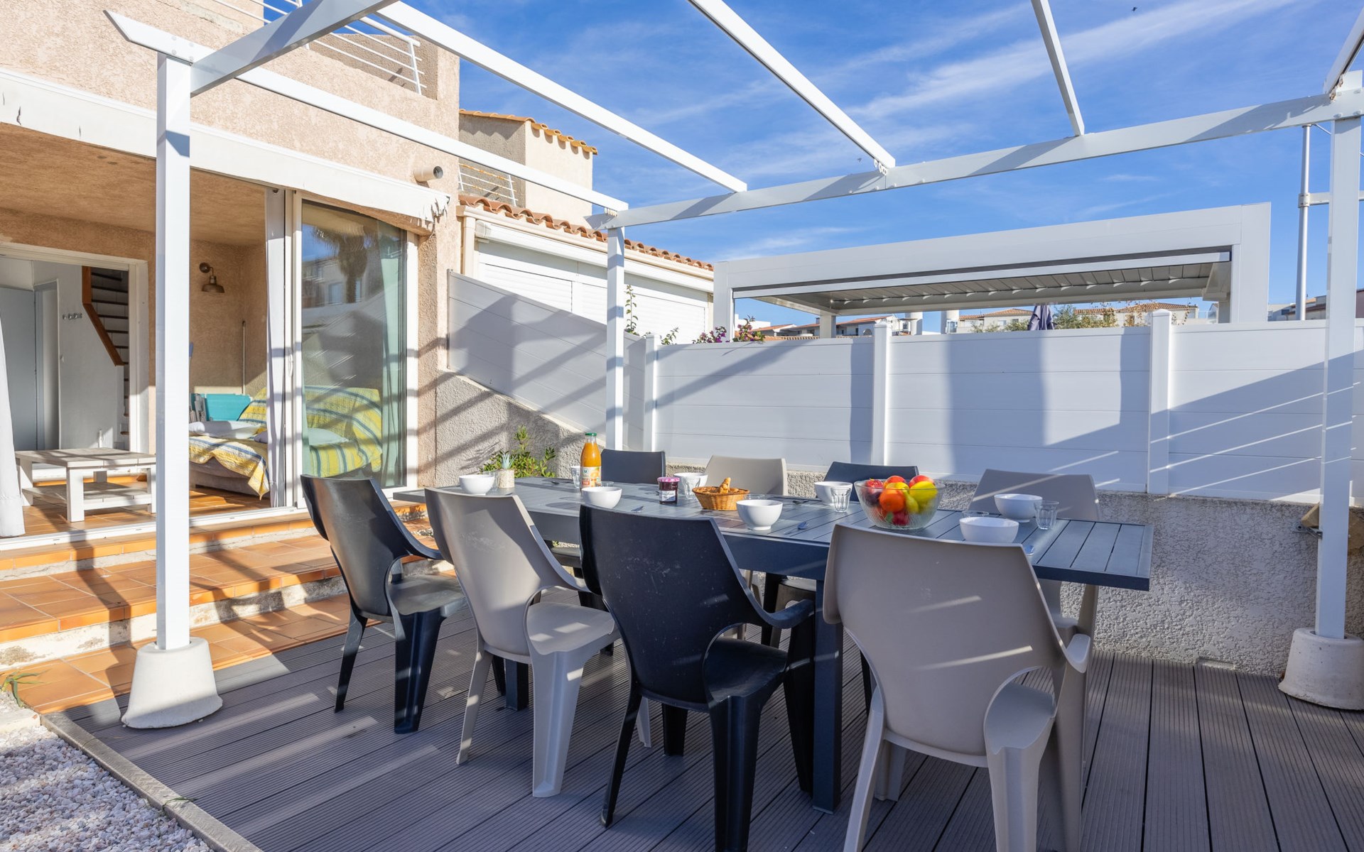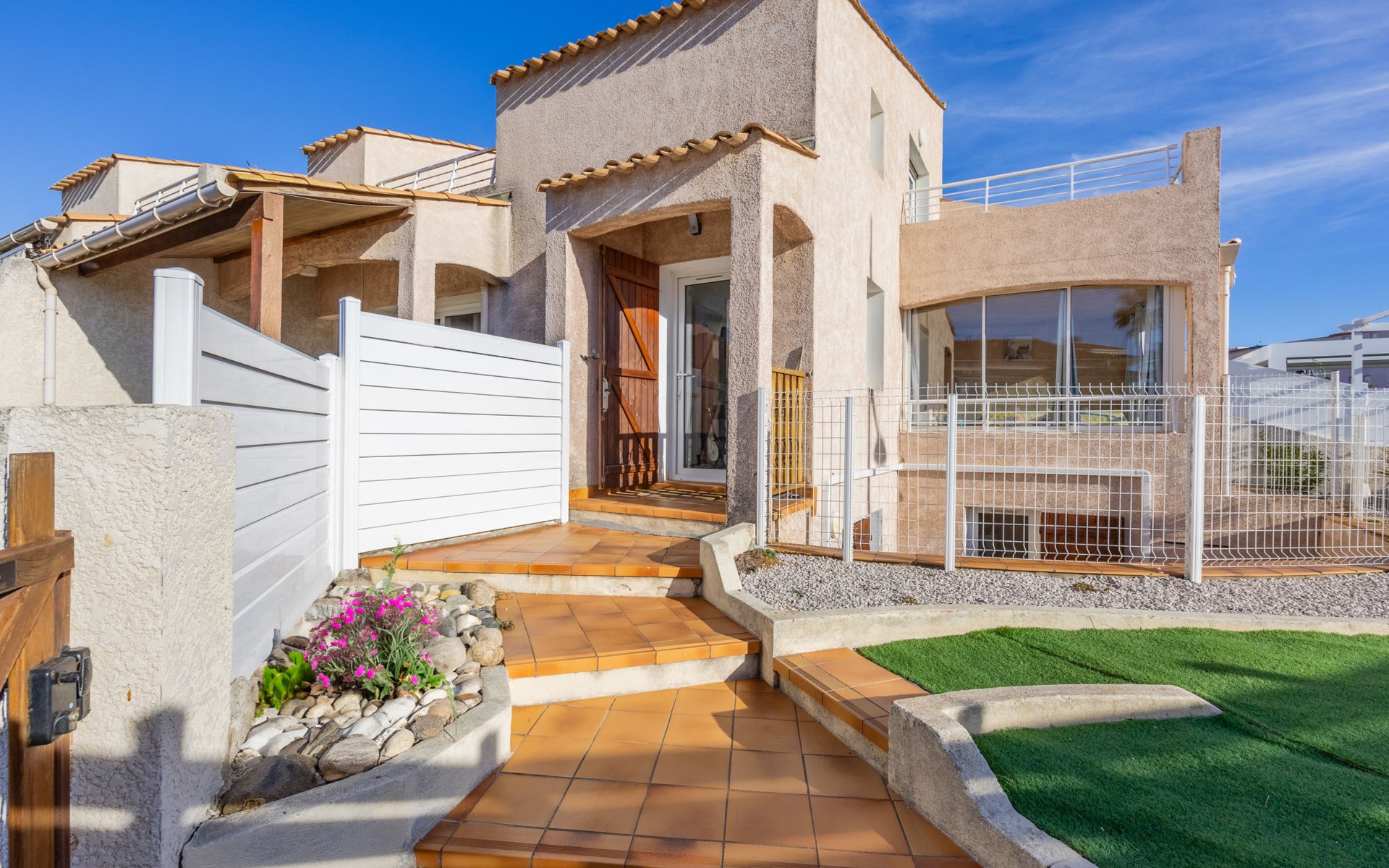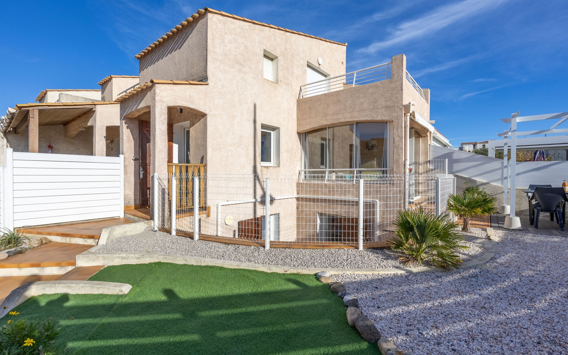 Reihenhaus "Rochelongue", auf 3 Stockwerken. Ruhige Lage in einem Wohnquartier, 300 m vom Meer, 300 m vom Strand. Zur Alleinbenutzung: Grundstück 94 m2 (eingezäunt), gepflegter Garten (eingezäunt), Parkplatz, Einzelgarage. Einkaufsgeschäft, Lebensmittelgeschäft, Supermarkt, Einkaufszentrum, Restaurant, Bar, Bäckerei 200 m, Bushaltestelle "Mail de Rochelongue" 550 m, Sandstrand "Rochelongue" 300 m. Sporthafen 3.3 km, Golfplatz (27 Loch) 6 km, Tennis 3.9 km, Reitstall 1 km. Nahe gelegene Sehenswürdigkeiten: Ile des loisirs 2.5 km, Casino 3.3 km, Aqualand 1.6 km.