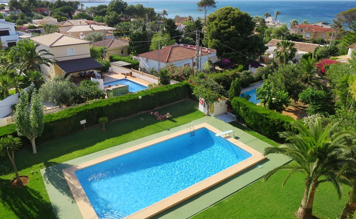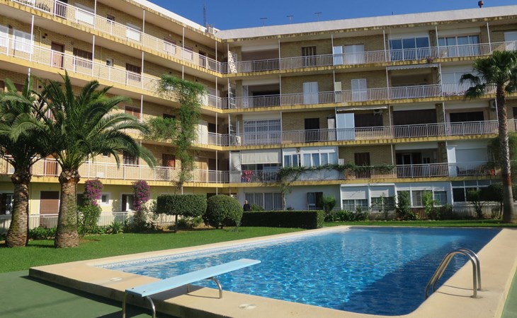 Ferienanlage "Alhambra", auf 5 Stockwerken. Im Ortsteil Las Rotas, 3 km vom Zentrum von Denia, 97 km vom Zentrum von Alicante, 100 m vom Meer. Zur Mitbenutzung: Grundstück, Liegewiese, Schwimmbad (12 x 6 m, saisonale Verfügbarkeit: 01.Jan. - 31.Dez.). Aussendusche. Im Hause: Fahrstuhl. Parkplatz (überdacht) auf dem Grundstück. Supermarkt 300 m, Restaurant 150 m, Bushaltestelle 800 m, Bahnstation 3.5 km, Fähre 4.3 km, Felsstrand 100 m.