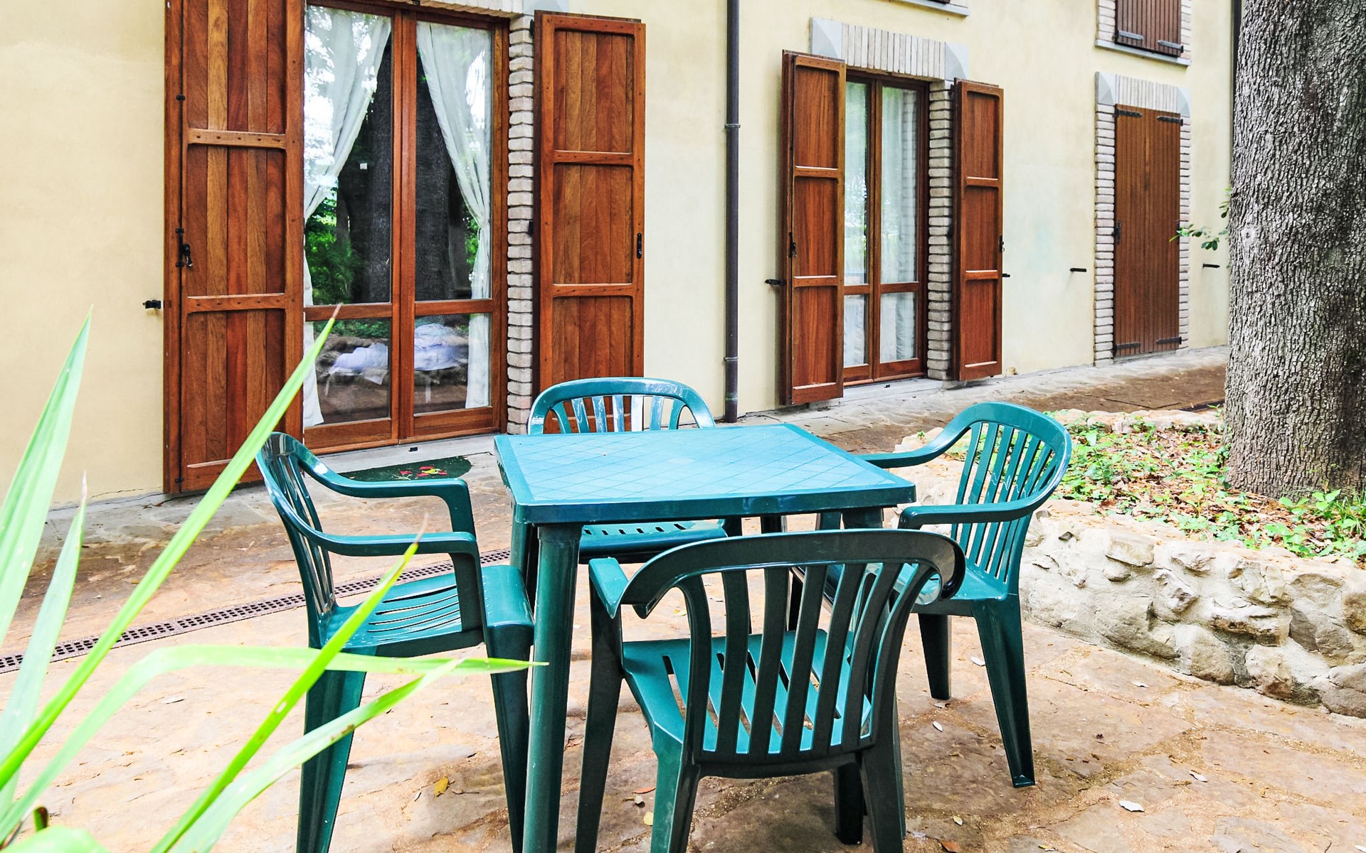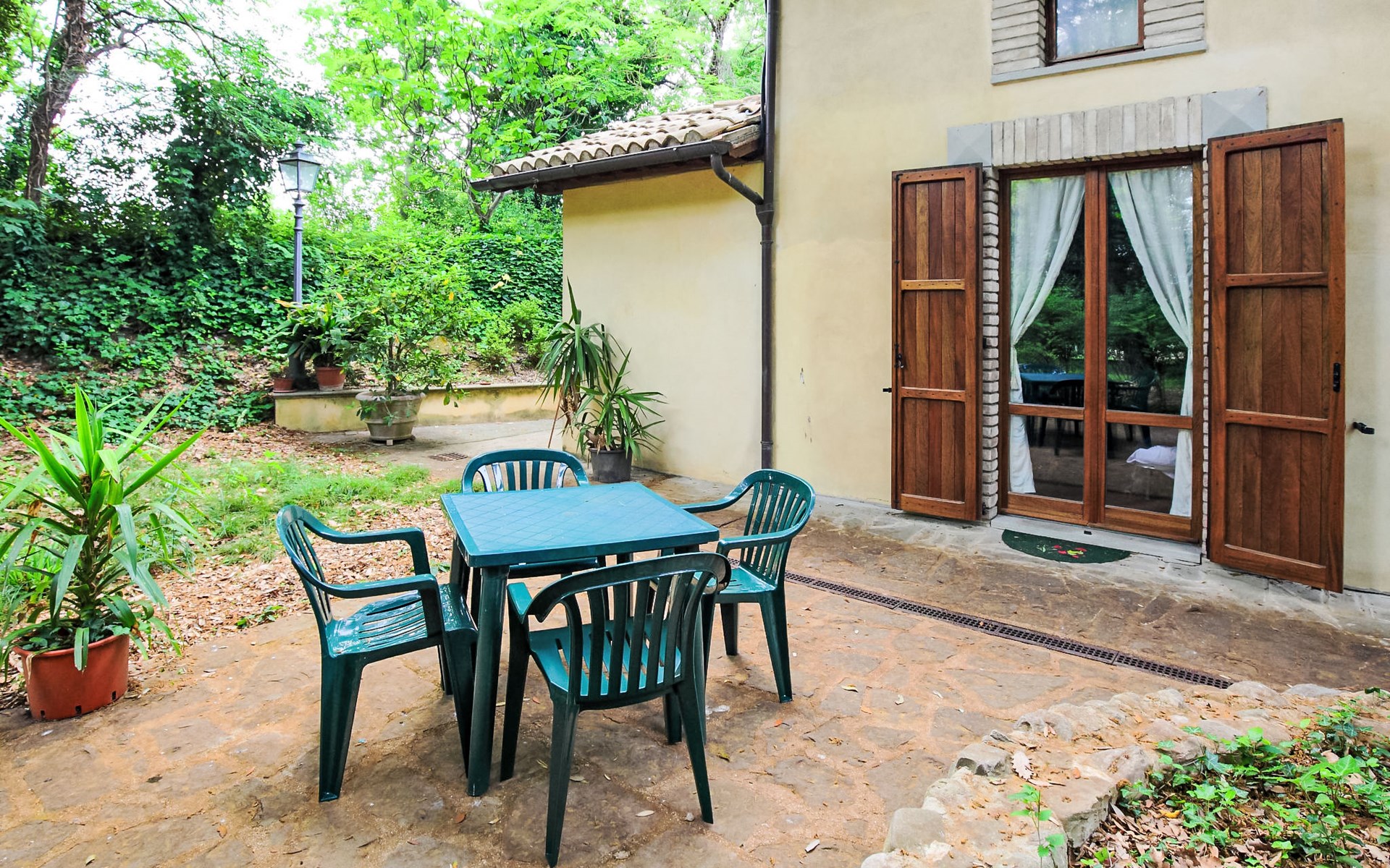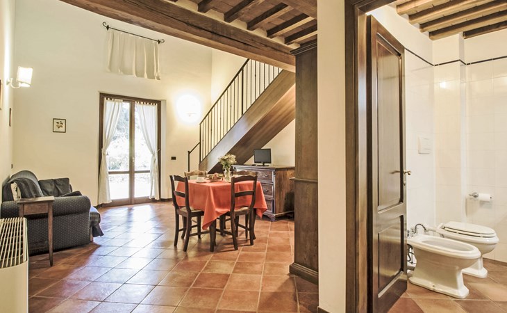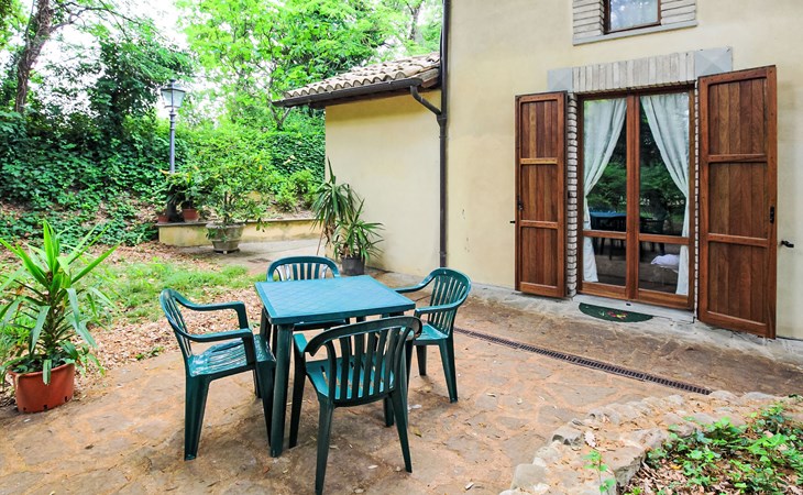 Landsitz "Montecorneo", umgeben von Bäumen. 14 Wohnungen im Ferienhaus. 5 km vom Zentrum von Perugia. Zur Mitbenutzung: Park 500 m2, Schwimmbad nicht einsehbar (15 x 7 m, saisonale Verfügbarkeit: 15.Mai. - 30.Sep.). Aussendusche, Kinderspielplatz. Im Hause: Empfang, Frühstücksraum, Wireless LAN, Sauna, Fitnessraum, Tischtennis, Tischfussball, Waschmaschine (zur Mitbenutzung, extra), Heizung nur verfügbar von 15.Okt. - 15.Apr. (extra). Parkplatz auf dem Grundstück. Lebensmittelgeschäft 1 km, Supermarkt 2 km, Restaurant 200 m, Bahnstation "Perugia Ponte San Giovanni" 3 km. Tennis 3 km, Reitstall 5 km. Nahe gelegene Sehenswürdigkeiten: Assisi 20 km, San Feliciano 30 km, Panicale 35 km, Todi 35 km, Città Della Pieve 42 km, Cortona 53 km. Bekannte Seen in der Umgebung sind gut erreichbar: Trasimeno 30 km.