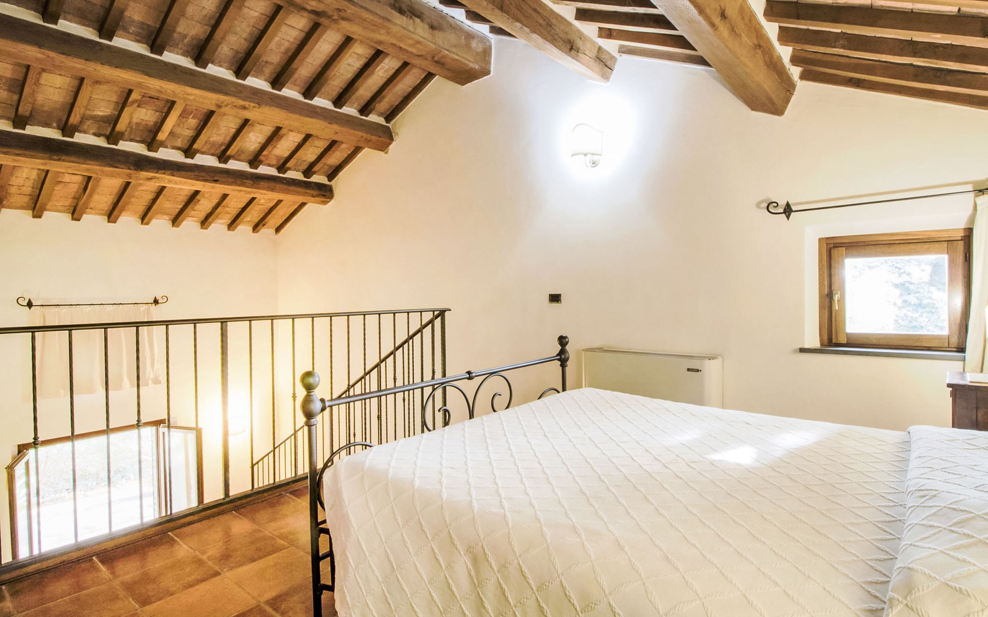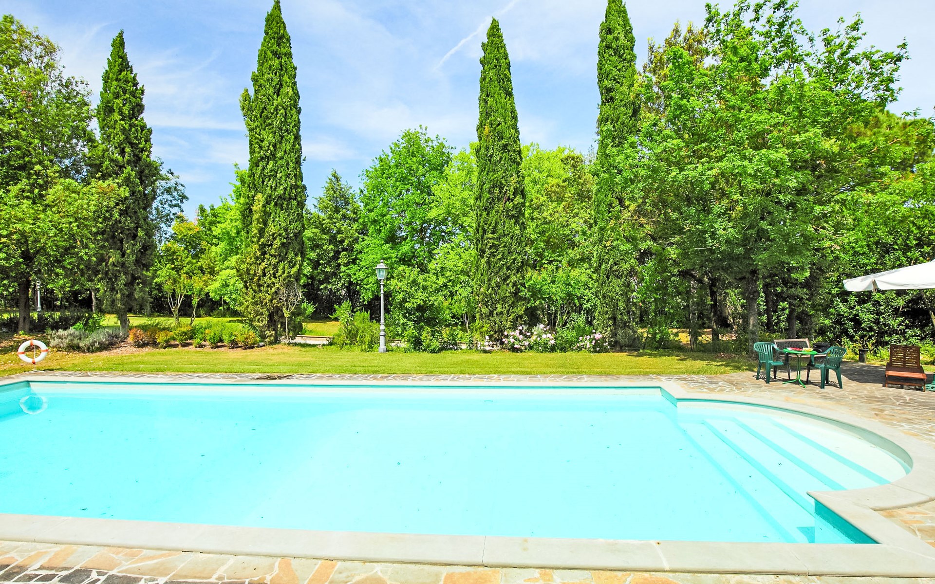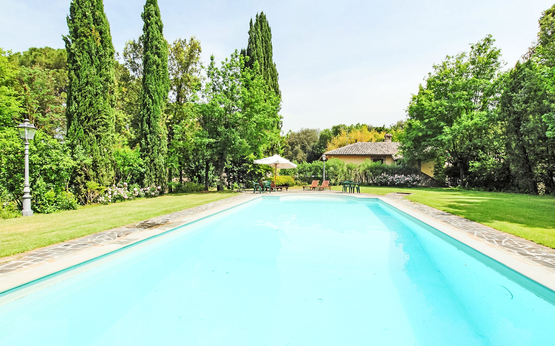Landsitz "Montecorneo", umgeben von Bäumen. 14 Wohnungen im Ferienhaus. 5 km vom Zentrum von Perugia. Zur Mitbenutzung: Park 500 m2, Schwimmbad nicht einsehbar (15 x 7 m, saisonale Verfügbarkeit: 15.Mai. - 30.Sep.). Aussendusche, Kinderspielplatz. Im Hause: Empfang, Frühstücksraum, Wireless LAN, Sauna, Fitnessraum, Tischtennis, Tischfussball, Waschmaschine (zur Mitbenutzung, extra), Heizung nur verfügbar von 15.Okt. - 15.Apr. (extra). Parkplatz auf dem Grundstück. Lebensmittelgeschäft 1 km, Supermarkt 2 km, Restaurant 200 m, Bahnstation "Perugia Ponte San Giovanni" 3 km. Tennis 3 km, Reitstall 5 km. Nahe gelegene Sehenswürdigkeiten: Assisi 20 km, San Feliciano 30 km, Panicale 35 km, Todi 35 km, Città Della Pieve 42 km, Cortona 53 km. Bekannte Seen in der Umgebung sind gut erreichbar: Trasimeno 30 km.