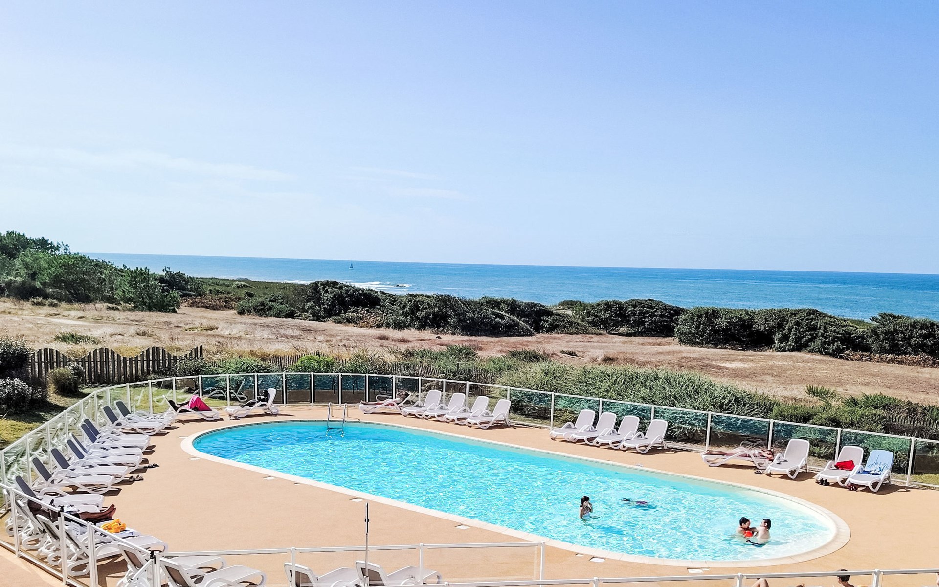 Schöne Residenz. Im Ortsteil La Corniche-Château d'Olonne, 4 km vom Zentrum von Sables d'Olonne, 200 m vom Meer, 1.4 km vom Strand. Zur Mitbenutzung: Grundstück mit Rasen und Pflanzen, wunderschöner Garten zum Entspannen, 2 Schwimmbäder beheizt (12 x 5 m, 150 cm tief, saisonale Verfügbarkeit: 01.Mai. - 30.Sep.). Tischtennis, Boccia, Kinderspielplatz. In der Anlage: Empfang, Waschmaschine (zur Mitbenutzung, extra). Parkplatz. Lebensmittelgeschäft 300 m, Einkaufszentrum 2 km, Bushaltestelle 300 m, Bahnstation "Les Sables Olonne" 4.5 km, Sandstrand "Plage du Tanchet" 1.4 km, Thermalbad "Thalassothérapie" 2 km. Sporthafen 5 km, Surfschule 1.4 km, Radweg 200 m. Nahe gelegene Sehenswürdigkeiten: St Gilles Croix de Vie 30 km, Noirmoutier 65 km, Le Puy du Fou 80 km, Nantes 95 km, La Rochelle 100 km. Wandergebiete: GR8 200 m. Die Residenz wird durch elektrische Tore geschlossen.