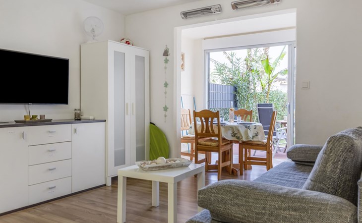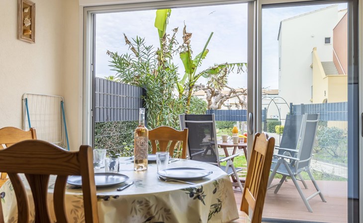 Grill und Picknicktischen. Squashhalle, Fitnessstudio. Alle Sporteinrichtungen sind gemeinsam. Die Waschmaschinen in der Wäscherei der Residenz sind mit Münzautomaten ausgestattet (Waschmittel inbegriffen). Residenz "Santa Monica 1". Im Ortsteil Plage Richelieu, 2 km vom Zentrum, ruhige Lage, 100 m vom Meer, 100 m vom Strand, in einer Sackgasse. Zur Mitbenutzung: gepflegter Garten, Schwimmbad eckig (11 x 18 m, 1 - 190 cm tief, saisonale Verfügbarkeit: 26.Apr. - 30.Sep. Öffnungszeiten Schwimmbad: 09:00-20:00). Kinderbecken, Aussendusche, Sprudelbad, Tischtennis, Grillhaus. Im Hause: Sauna, Fitnessraum, Sprudelbad, Waschmaschine (zur Mitbenutzung, extra). Einkaufsgeschäft, Lebensmittelgeschäft 50 m, Supermarkt 2 km, Einkaufszentrum 800 m, Restaurant, Bäckerei, Café 50 m, Bushaltestelle "Pacifique" 270 m, Sandstrand "Richelieu" 100 m. Golfplatz (27 Loch) 900 m. Nahe gelegene Sehenswürdigkeiten: Aqualand 800 m, Ile des loisirs 1.2 km. Bitte beachten: geeignet für Familien.
